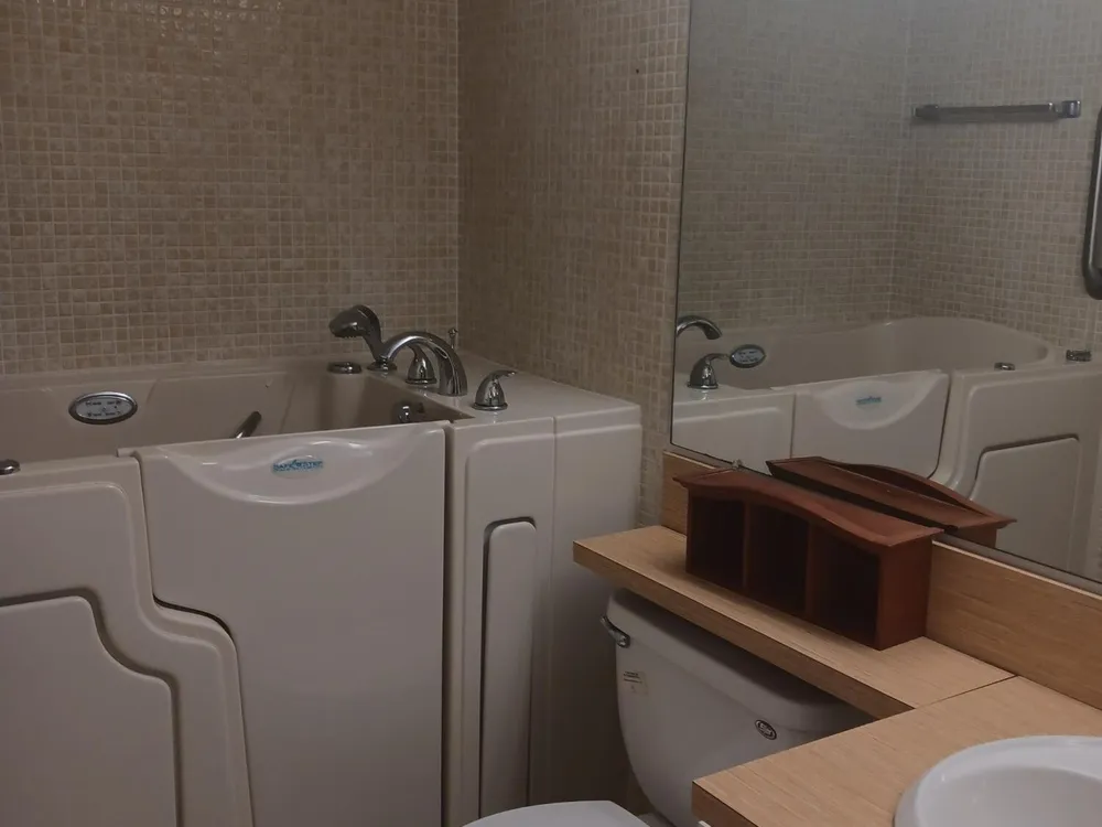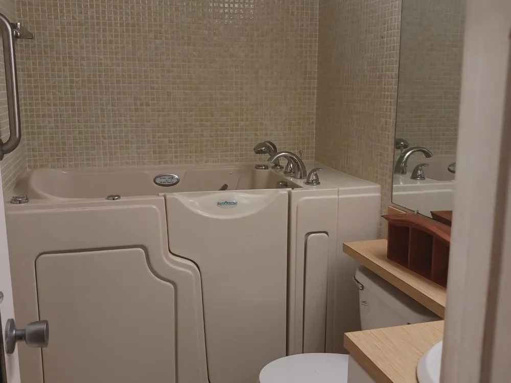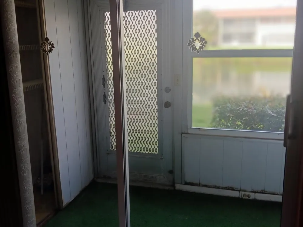 Retirement is a breeze in this charming, wheelchair-accessible 2-bedroom, 1.5-bathroom, 1st-floor condo in Century Village! This thoughtfully designed unit features cozy carpet throughout the living areas and bedrooms, with durable tile in the dining room, kitchen, and bathrooms. The master bedroom includes a spacious walk-in closet and a luxurious Safe Step walk-in tub, ensuring both comfort and safety - perfect for unwinding at the end of the day! Enjoy beautiful lake views from your back porch, creating a serene backdrop to your daily life. With well-kept appliances, this condo is move-in ready. Century Village offers an exceptional lifestyle with endless amenities, including a sparkling pool, clubhouse, fitness center, shuffleboard courts, and so much more.