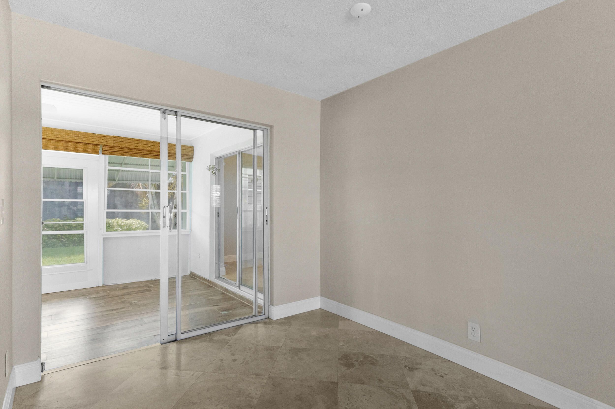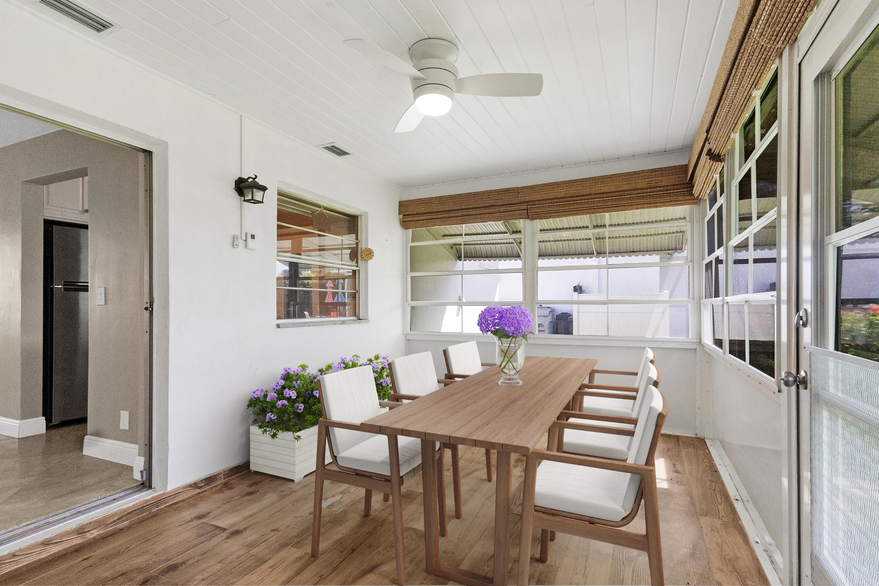 Absolutely charming home in Leisureville (55+). Only 1 owner since original build date 1968, this 2/1 home has been lovingly cared for and updated through the years. Ceramic tile floors, plantation shutters, an enclosed Florida Room, and plenty of storage space make it easy to add your personal touches to make this a cozy place you'll love to call your home. The kitchen features soft-close cabinetry with pull-out shelves, granite countertops and dual sink. Flat roof (2025), concrete tiled roof (2013), W/H (2019), A/C (2018), Eaton electrical panel (on approved list for 4-Point). Leisureville is an impeccably well maintained community w/2 clubhouses, free golf for residents, short walk to pool and NO LAND LEASE! MUST OWN 1 YEAR BEFORE LEASING. Some photos are virtually staged.