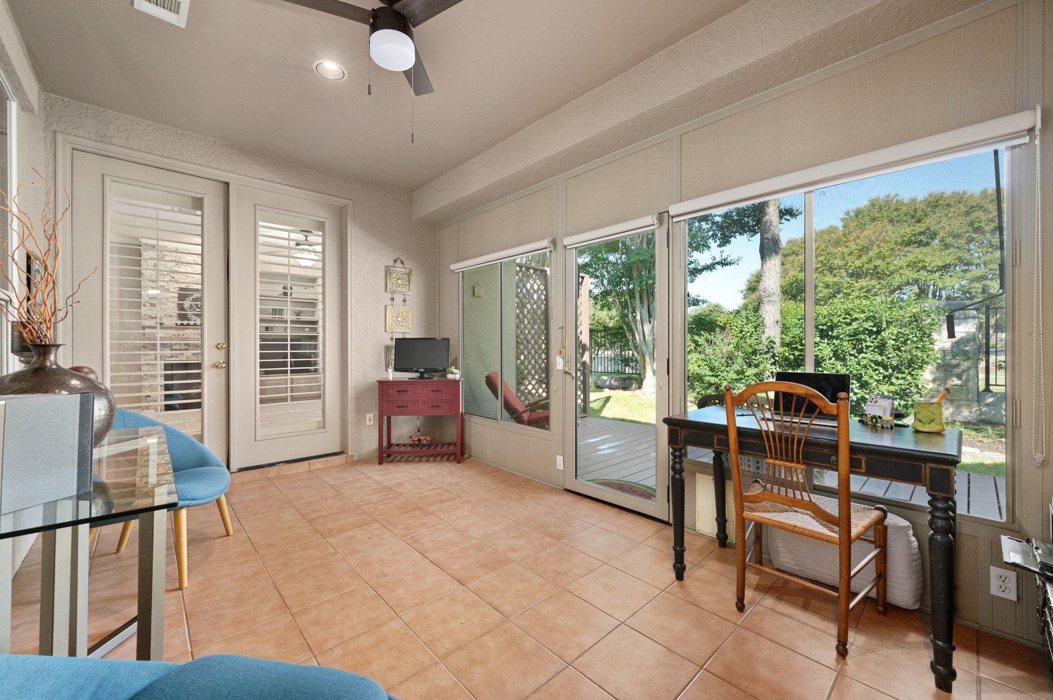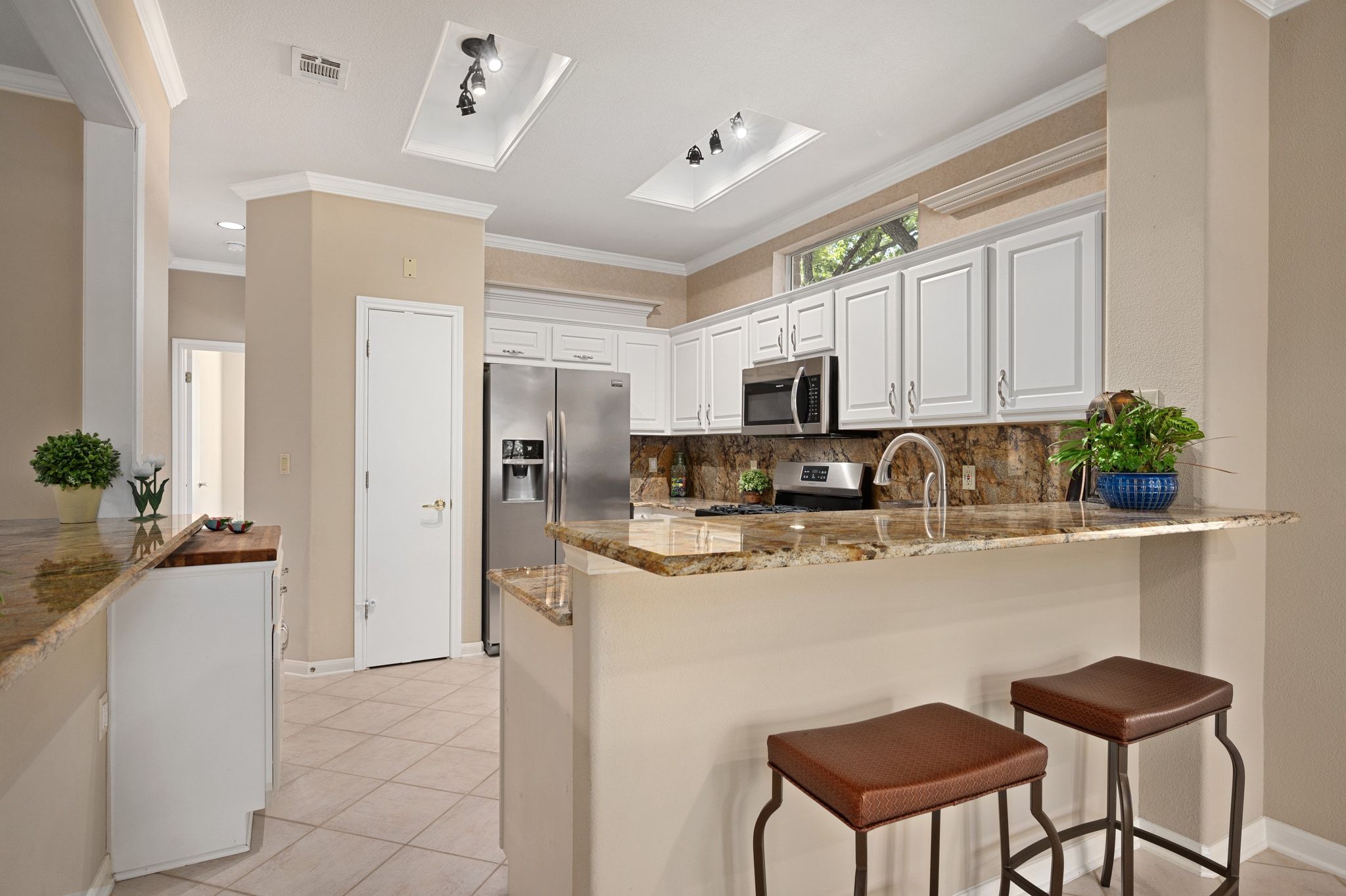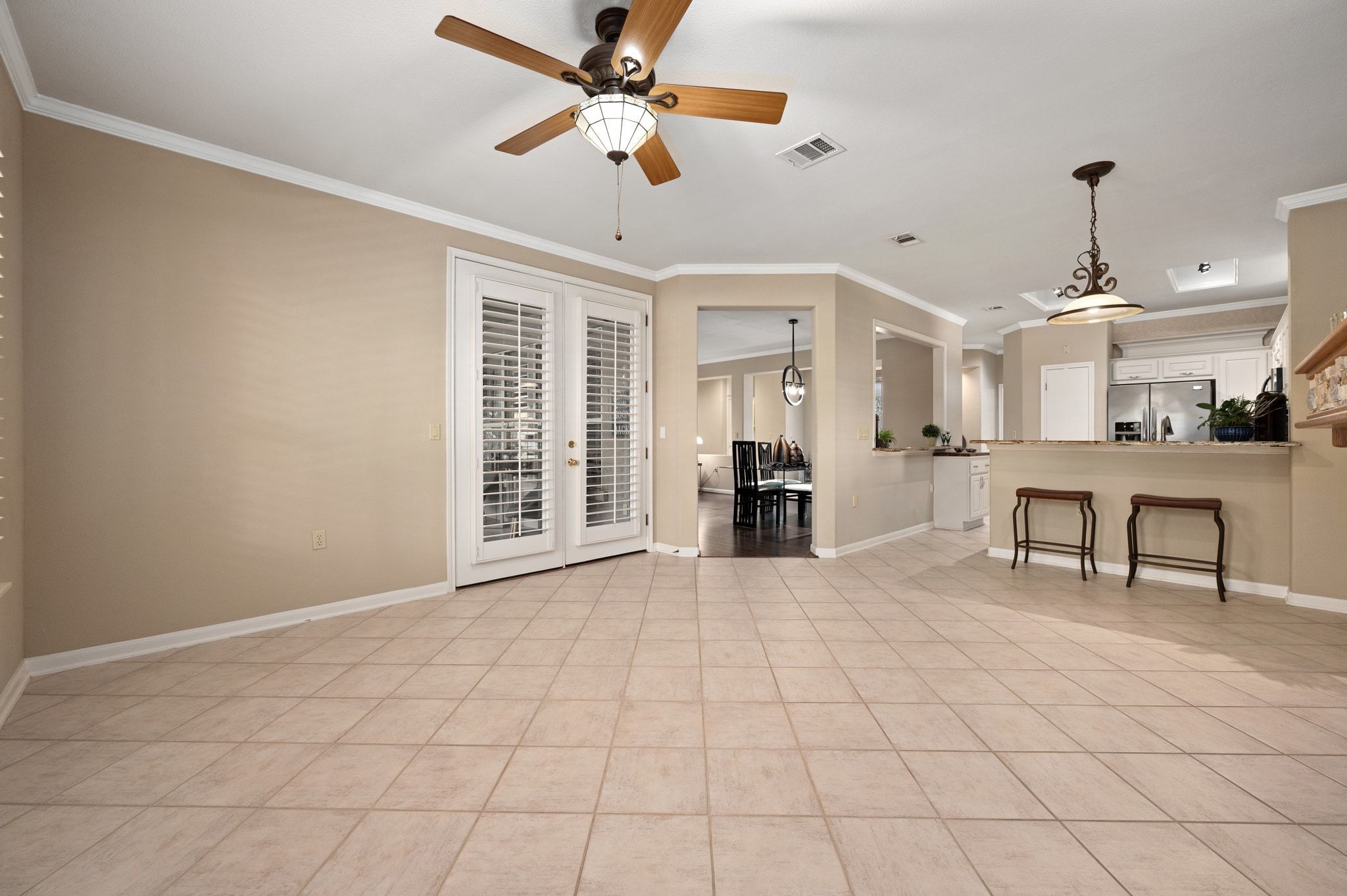 ****** OWNER FINANCING AVAILABLE! ****** This beautifully remodeled former model home in a highly desirable location backs to a park-like green area near the main amenity center! The home showcases an open floor plan with multiple living areas plus a versatile flex room or an office with a view. This immaculate home features a private backyard with no homes located behind you. a corner lot, and a mother-in-law floor plan. The kitchen features premium granite, lower cabinet pull-outs, and stainless appliances. Primary bath has been remodeled with large shower and includes quartz counters. Guest bath has been updated with quartz countertops. Additional highlights include high ceilings, plantation shutters, crown molding, a classy floor-to-ceiling stone fireplace, architectural niches with accent lighting, a multi-room sound system and no carpet! Storage abounds with a large decked attic above the garage and extra storage space above indoor closets. Abundant windows allows one to enjoy the beautiful landscape while relaxing in the comfort of your home. Transom windows allow for extra light in the kitchen and baths. HVAC & Water heater approx. -1 year and shingles are approx 3 yrs