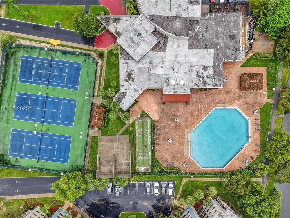 - Includes: Billiard Room, Clubhouse, Fitness Center, Library, Pool, Shuffleboard Court, Sauna, Spa/Hot Tub, Tennis Court(s), Elevator(s)