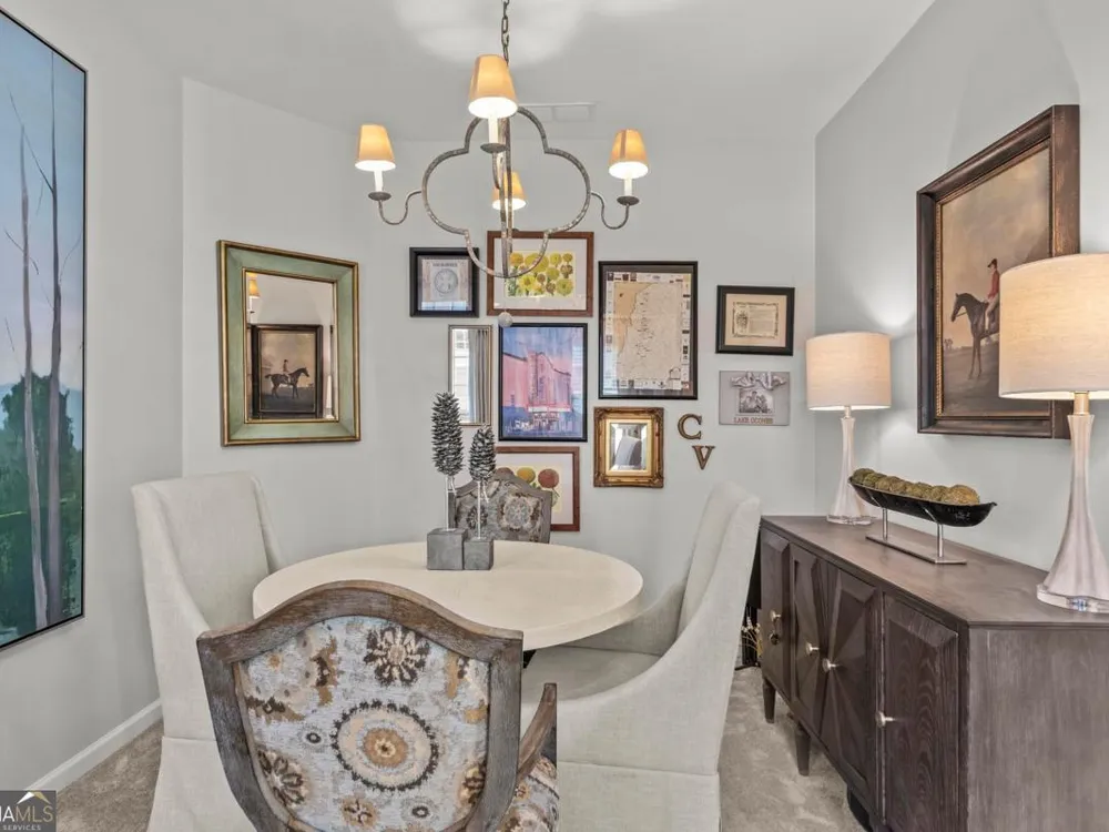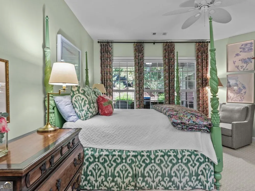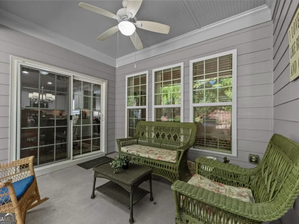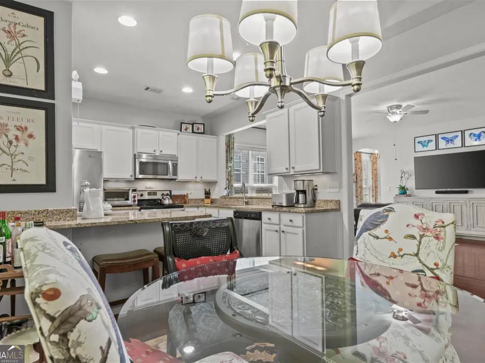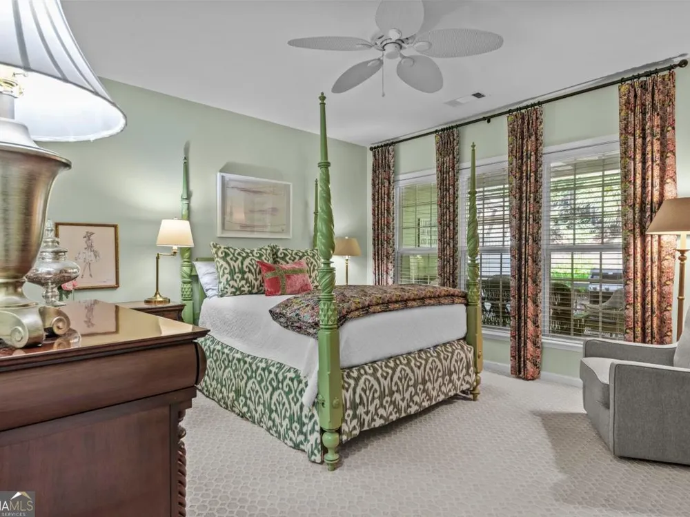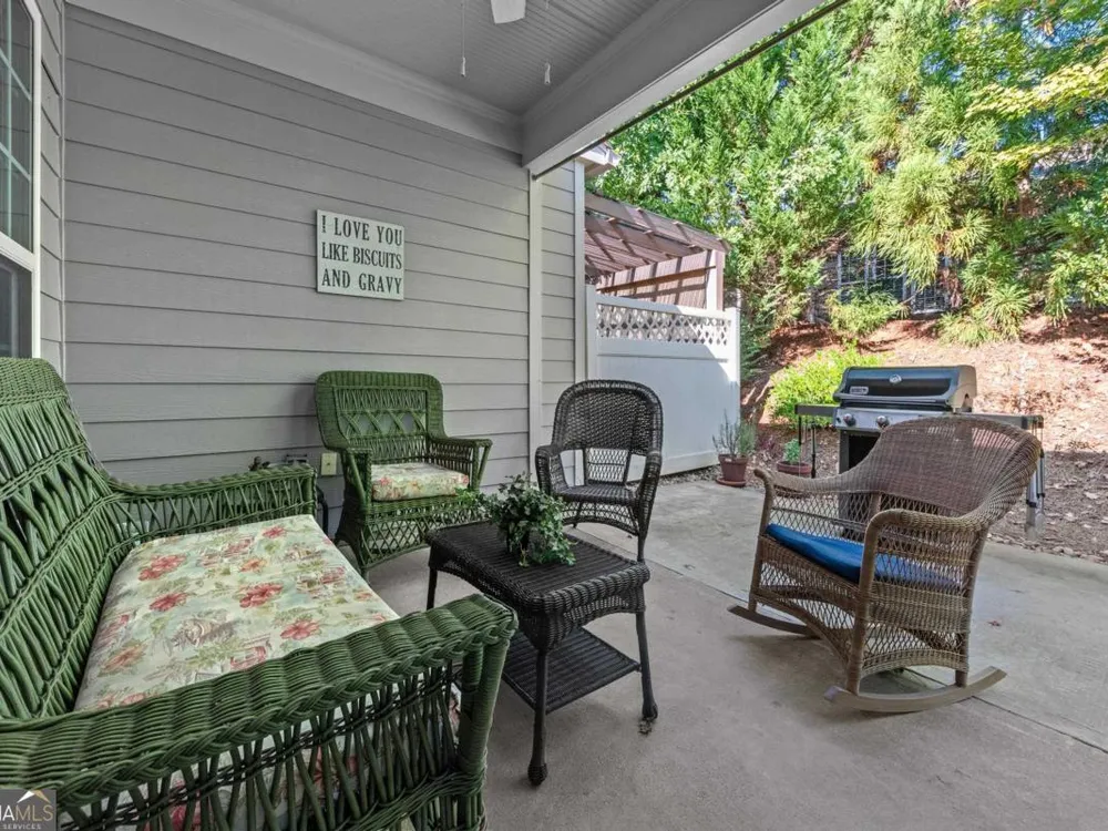 BEAUTIFULLY APPOINTED MUIRFIELD MODEL VILLA BACKING TO WOODED PRIVACY IN DEL WEBB LAKE OCONEE. Exterior freshly repainted, this beautifully appointed villa combines low maintenance living with refined style. The popular Muirfield plan features two bedrooms, two full baths, and a versatile space just beyond the foyer, ideal for an additional sitting area, formal dining space, or office. The spacious eat-in kitchen offers abundant cabinetry and storage, while designer lighting and tasteful accents curated by Black Sheep Interiors give the home a warm, welcoming feel that sets it apart. The open concept living area flows easily to a covered porch and private patio surrounded by mature trees, perfect for morning coffee or quiet evenings outdoors. The owner's suite offers a double vanity bath, walk in shower, and generous closet space, while the guest suite and full bath provide comfortable accommodations for family or friends. A two car garage with attic storage and a dedicated laundry room add to the home's functionality. Designed for ease and peace of mind, the Villa HOA covers roof, gutters, exterior painting, irrigation, and termite protection, while the Del Webb HOA maintains lawn care and grants access to the community's resort style amenities. Enjoy the ultimate lock and leave lifestyle within this active, gated Lake Oconee community.