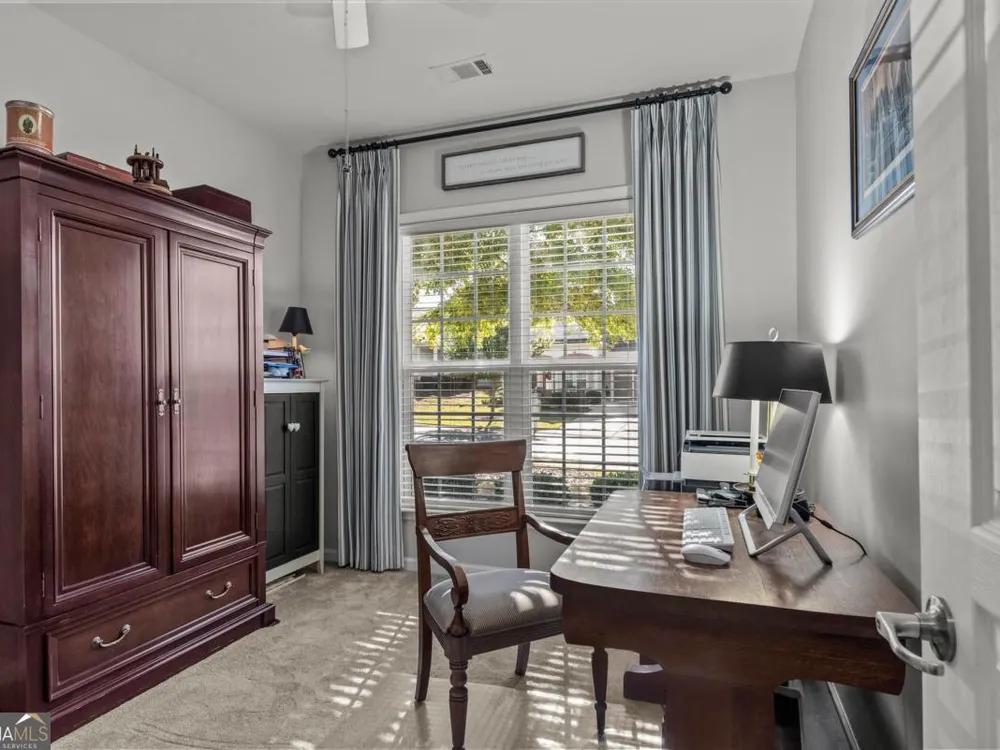 - Main Level Primary, Tile Bath, Walk-In Closet(s), Window Treatments, Library