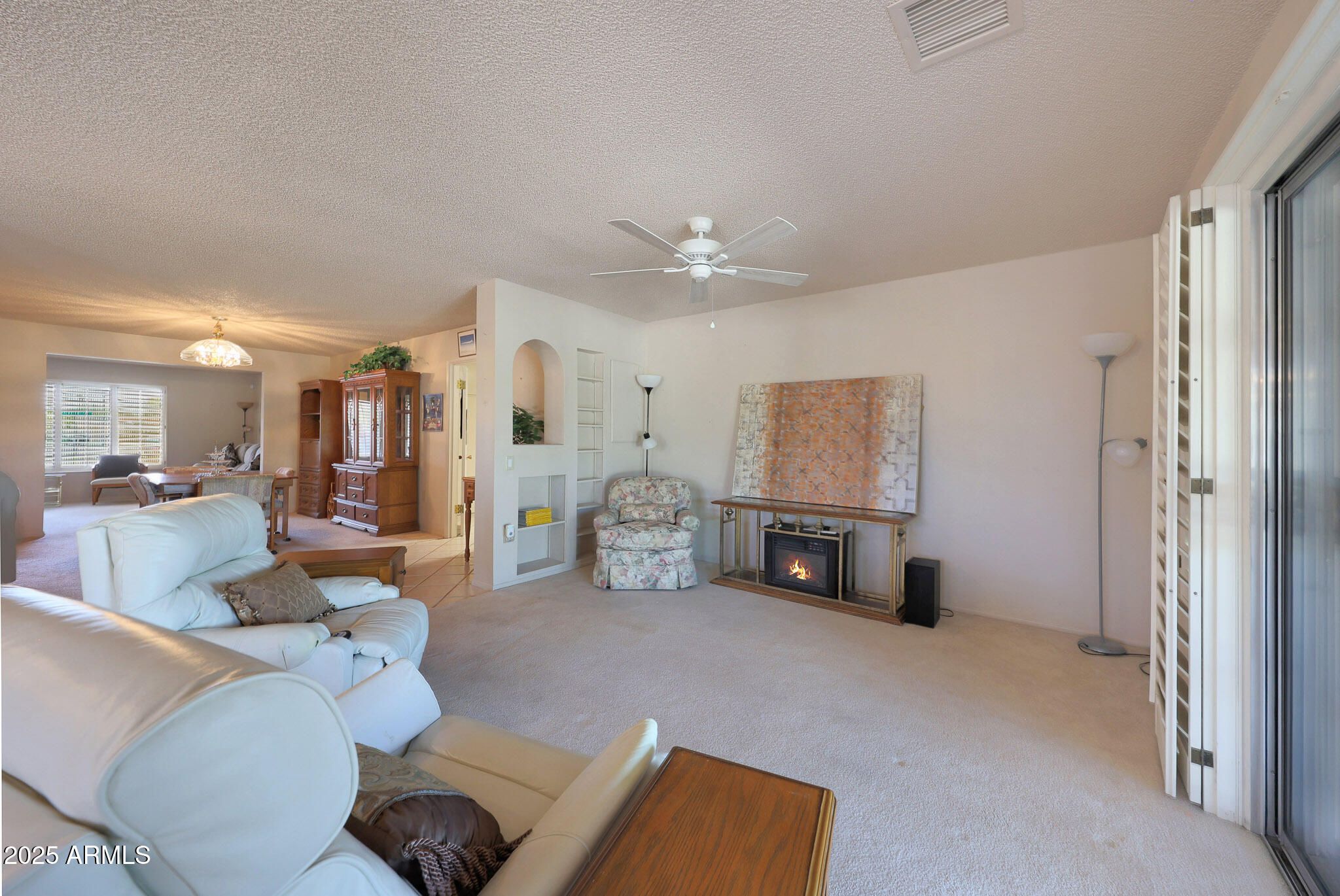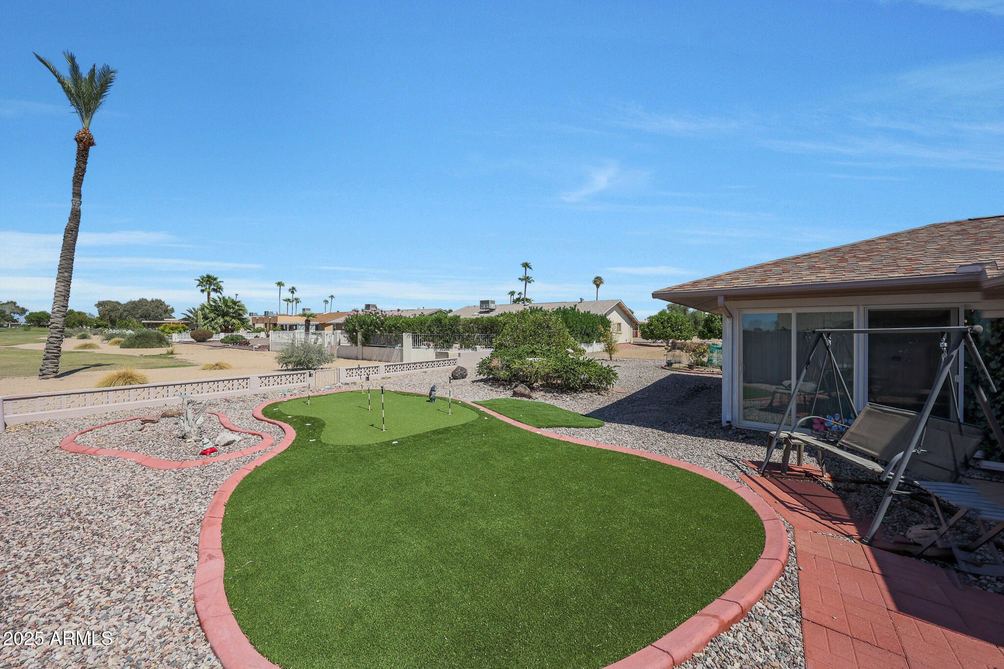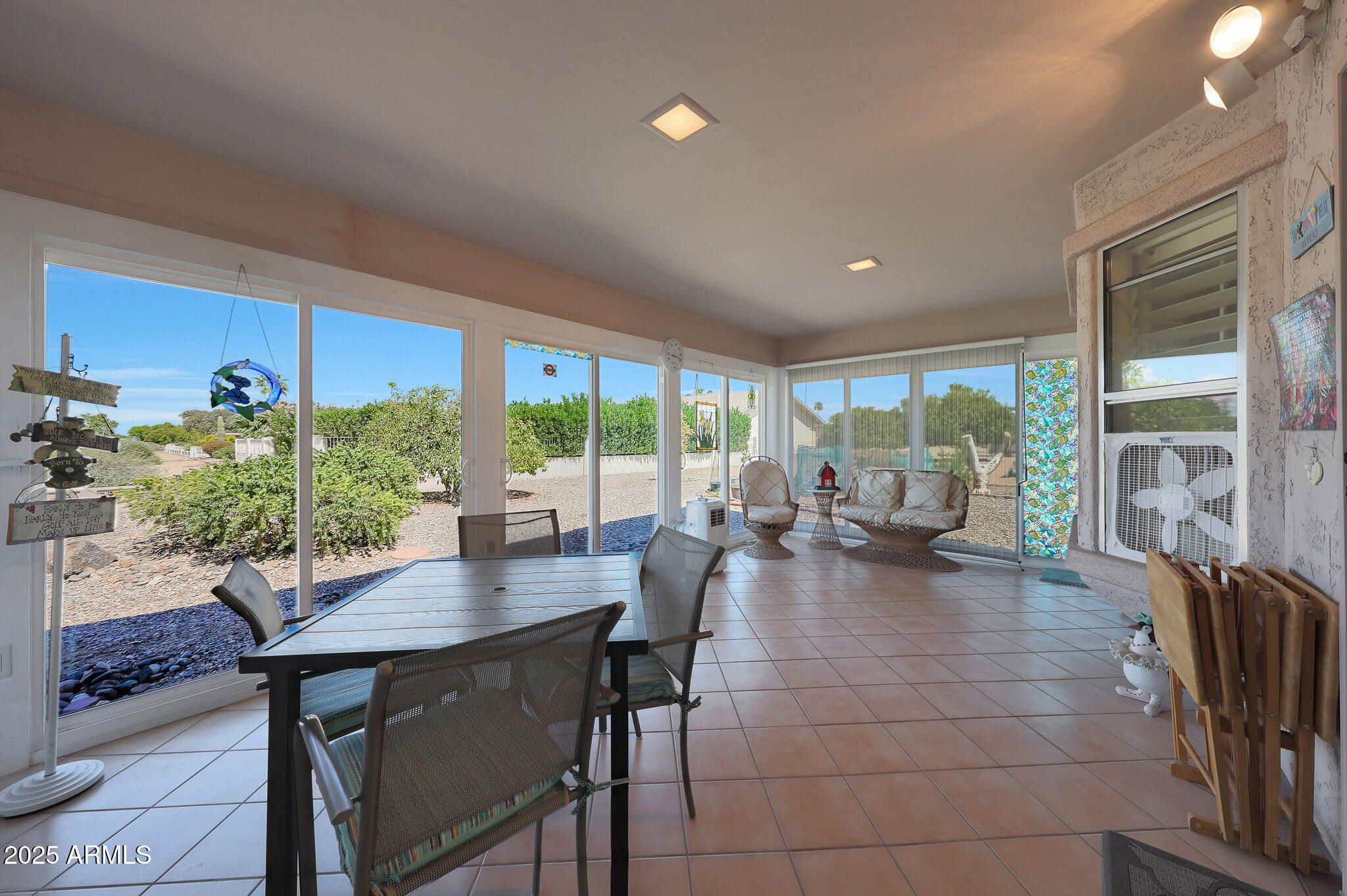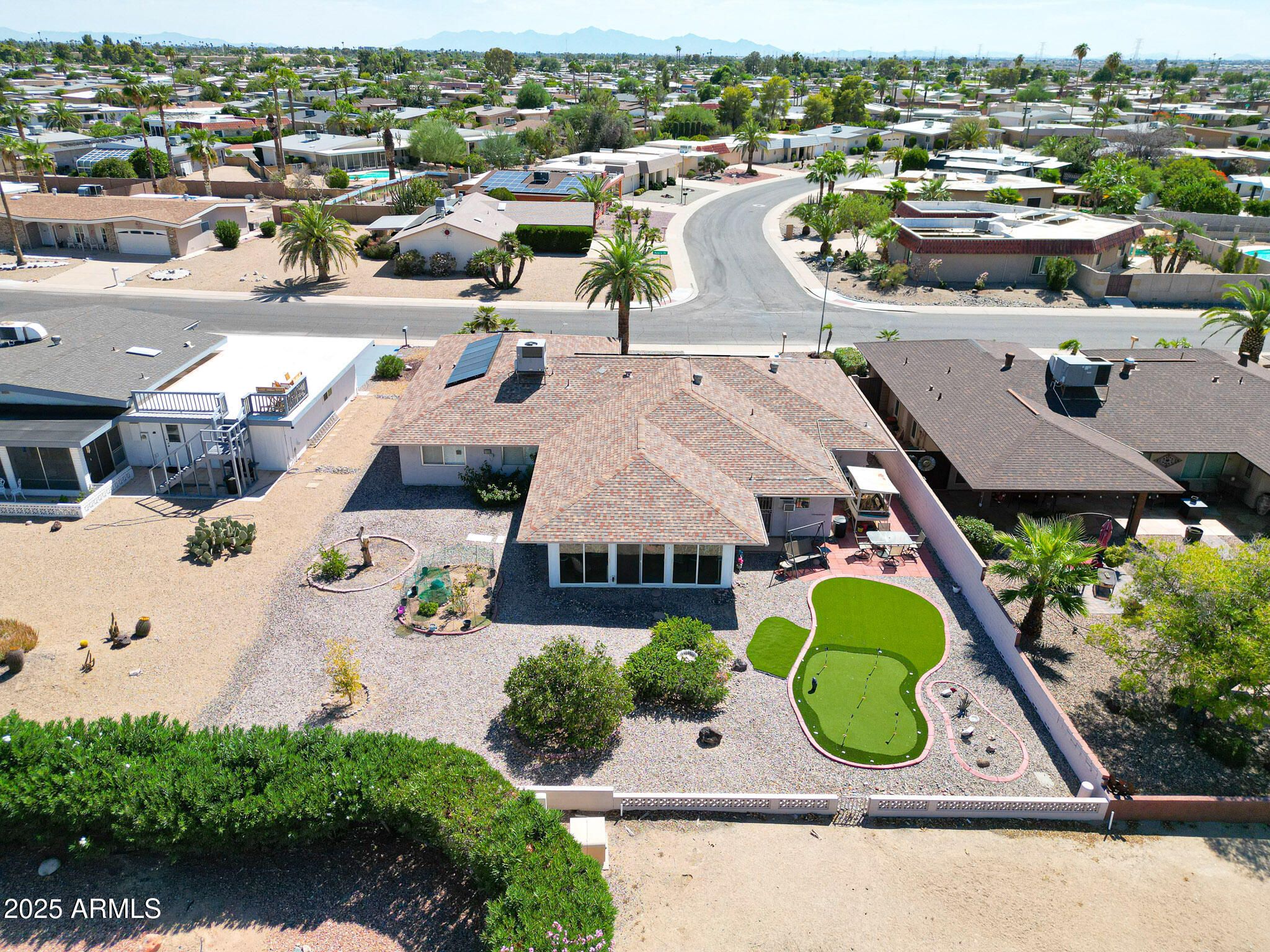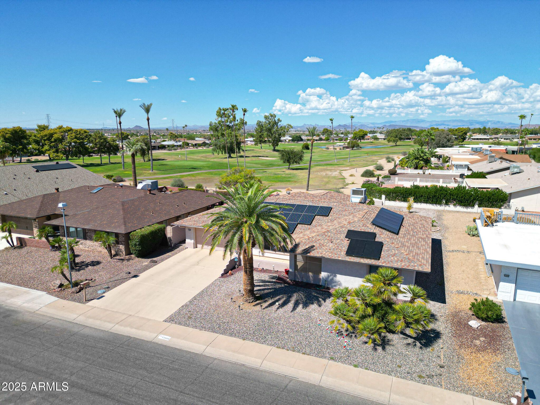 Welcome To This Newport Model Home In Phase 3 Of Sun City! ASSUME A VA LOAN AT 2.25%. (Must Be A Veteran And Must Qualify) (Ask Your Realtor About it.) Perfectly Situated On A Golf Course Lot! From The Backyard, Enjoy Unforgettable Expanded Golf Course Views That Stretch All The Way To The Mountains—The Perfect Setting For Relaxing Or Entertaining. This Home Offers Two Solar Programs: Both Systems Have A Lease. The Lease Agreement And Power Bills Are Available For Review. Additionally, Furniture And Contents Are Available Outside Of Escrow, Making This A Truly Turnkey Opportunity If Desired. Inside, You'll Find A Bright, Open Concept Design With A Living Room, Dining Area, And Family Room Flowing Seamlessly Together. The Galley Kitchen Offers Plenty Of Cabinets, Prep Space And Even An Eat-In Bar For Casual Meals. Other Highlights Include: Carpet And Tile Flooring Throughout, Spacious Bedrooms And Plantation Shutters On All Windows. Don't Miss This Incredible Opportunity To Own A Golf Course Home With Mountain Views In Sun City!