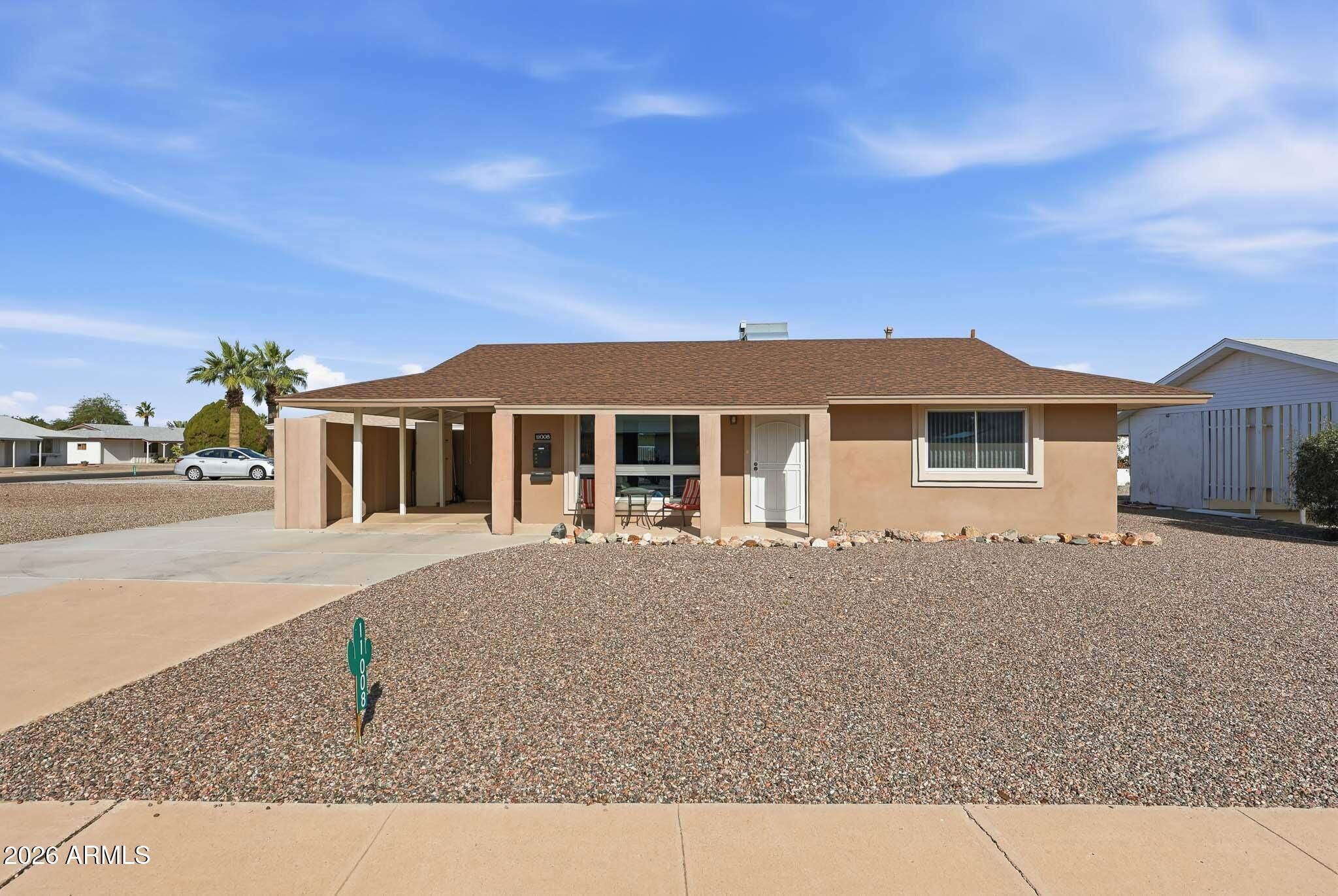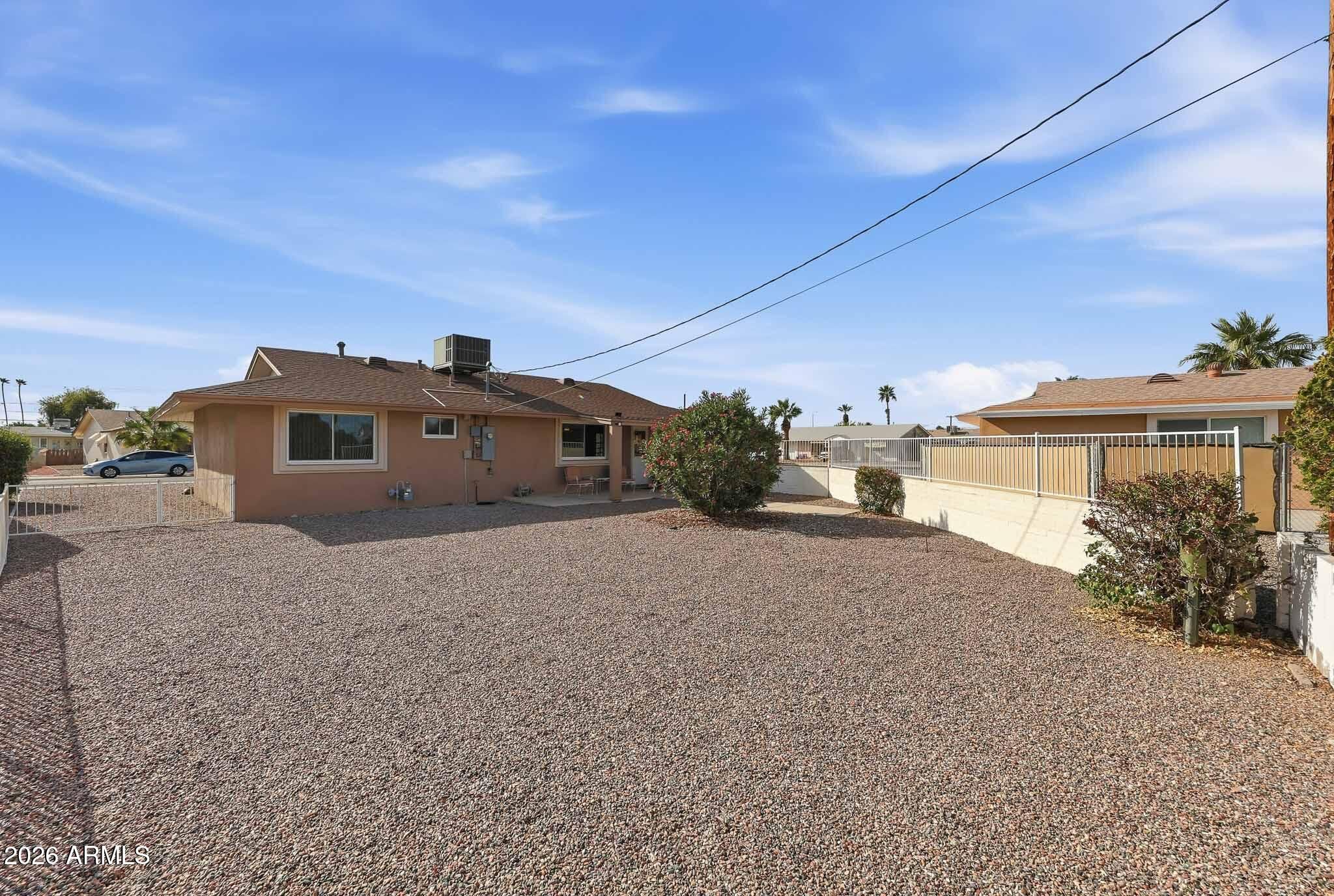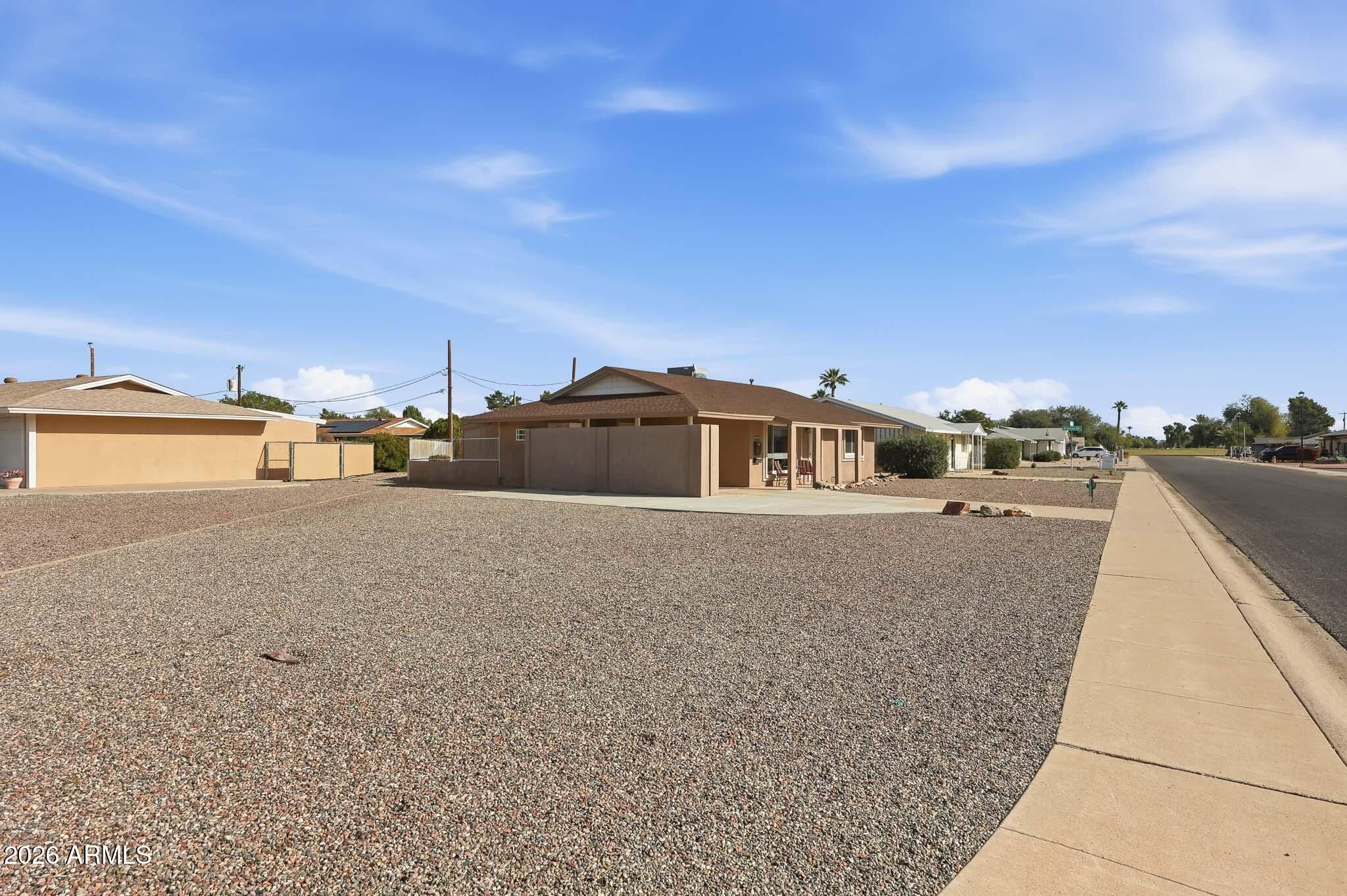 Well-maintained 2-bedroom, 1-bath home located in Sun City's desirable age-restricted community on a large corner lot. This clean, move-in ready property features dual-pane windows, ceiling fans in every room, no popcorn ceilings, gas heat, and a front security door. The fully fenced backyard offers privacy and low-maintenance enjoyment. Major updates include a new roof and A/C in 2017 and sewer line replacement in 2020—big ticket items already done. Comfortable, efficient, and priced to sell, this home is an excellent opportunity to enjoy the Sun City lifestyle.