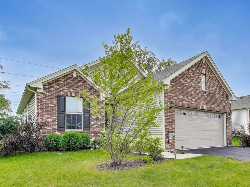 Step into comfort and style with this beautifully updated two-bedroom ranch, located in a highly desirable active adult community. Designed for maintenance-free living, this home features a bright, open layout with soaring vaulted ceilings and modern touches throughout, including crisp cabinetry and doors that enhance its contemporary charm. Freshly painted and featuring wood laminate flooring, the home boasts a sleek kitchen equipped with upgraded stainless steel appliances, including a premium Cafe refrigerator. A front-loading washer and dryer add convenience to your daily routine. If you need space for work or hobbies, a dedicated home office offers a quiet retreat tailored to your lifestyle. Step outside to a private patio-perfect for relaxing with a book or entertaining guests in a serene setting. The spacious primary suite is your personal haven, complete with a walk-in closet and a full bath featuring an easy-access shower and generous vanity storage. Guests will feel comfortable in the second bedroom, which is conveniently located near a full bath. This dynamic community is designed for enjoyment, offering a well-appointed clubhouse with a fitness center, meeting room, and a cozy patio with a fire pit-ideal for social gatherings. Explore scenic walking paths, peaceful ponds, and charming parks that weave throughout the neighborhood. Conveniently located near Routes 176 and 31, you'll have easy access to shopping, dining, medical facilities, and the Metra station-making everyday life simple and connected.