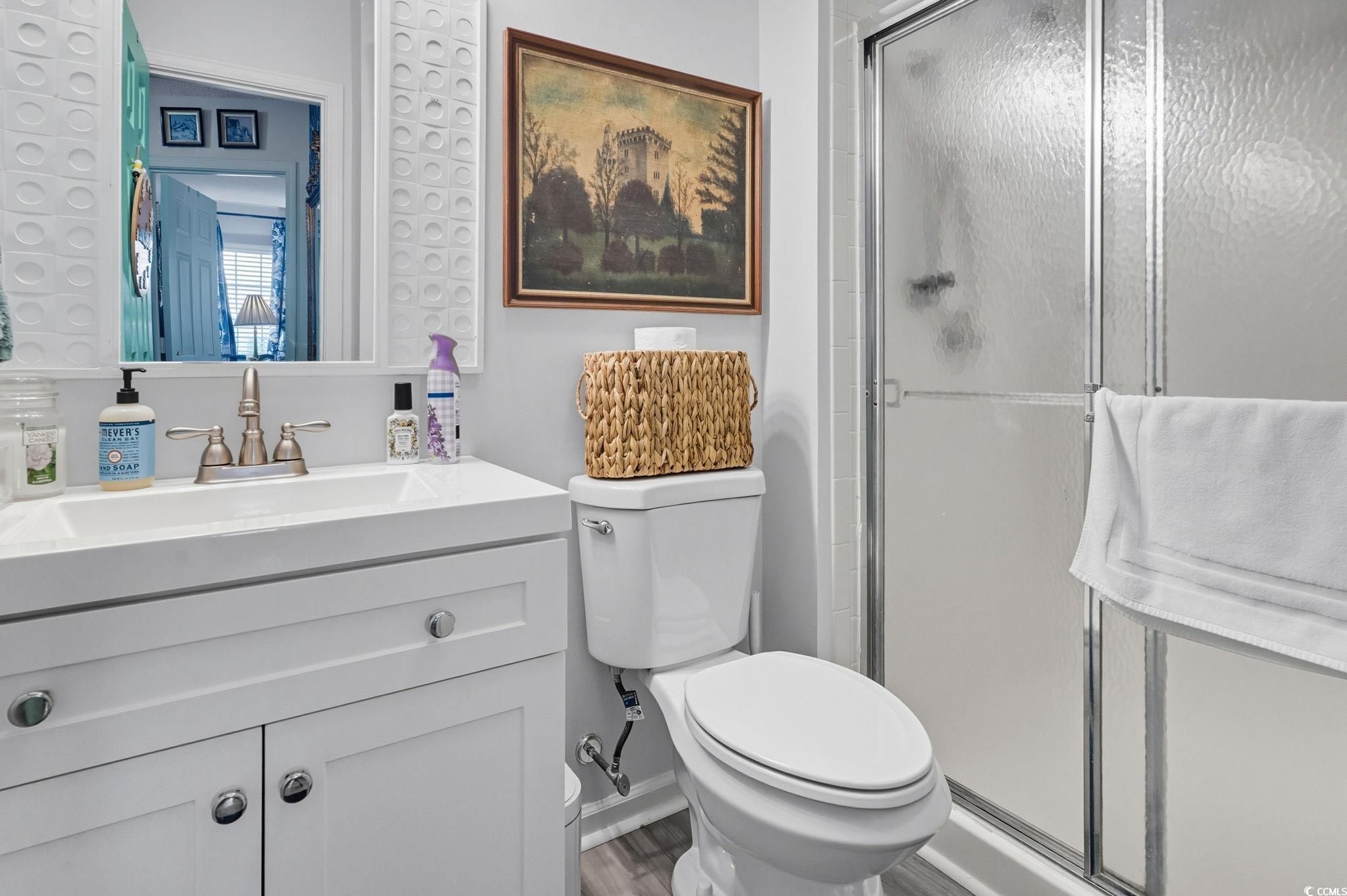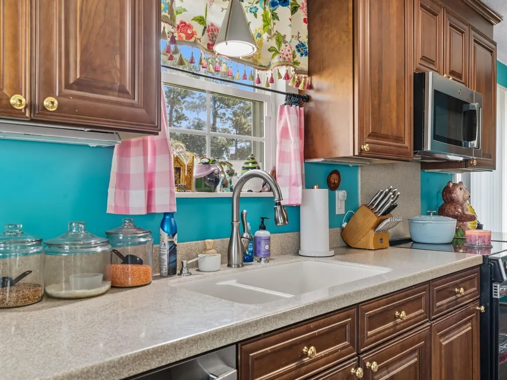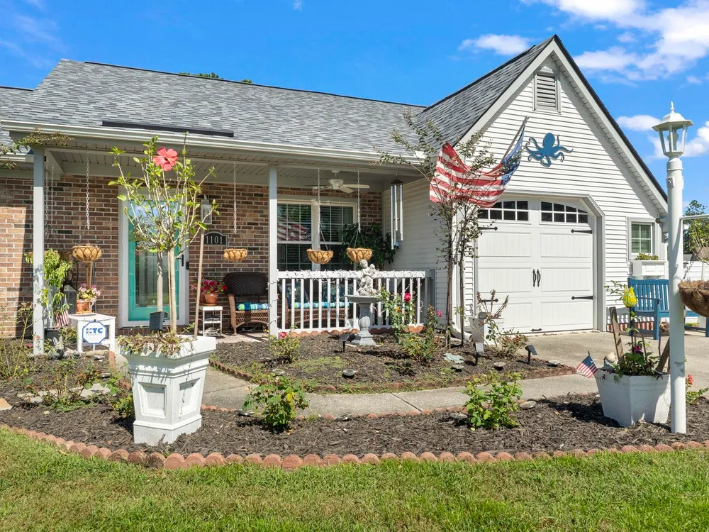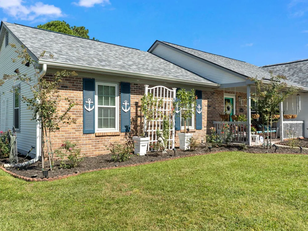 This Updated 3 Bedroom 2 Bath located in Murrells Inlet East of 17 Bypass is a golf cart ride to Garden City Beach. The home is located in Very Popular Woodlake Village. Woodlake Village is a Vibrant 55+ community that offers a variety of amenities including an outdoor pool, clubhouse, shuffle-board and pickle ball courts. The home boasts a spacious living area featuring high vaulted ceilings and sky lights offering natural light. The bright and airy kitchen boasts stainless steel appliances, 42" wood cabinets, corian counters and plenty of storage space for cooking and entertaining. One of the highlights of this home is the Carolina room providing great views offered from this corner lot location. Many of the upgrades include: NEW HVAC, 2024 NEW ROOF, Hot Water Heater, Irrigation pump,Storm door, Garage door, Garage Door Motor, Mini-Split in Garage, New Window Shutters, dishwasher, stove,All plugs and light switches, window blinds, light fixtures and ceiling fans. So Many upgrades and improvements!! Located in Murrells Inlet close to all Restaurants, Shopping, and BEACH!