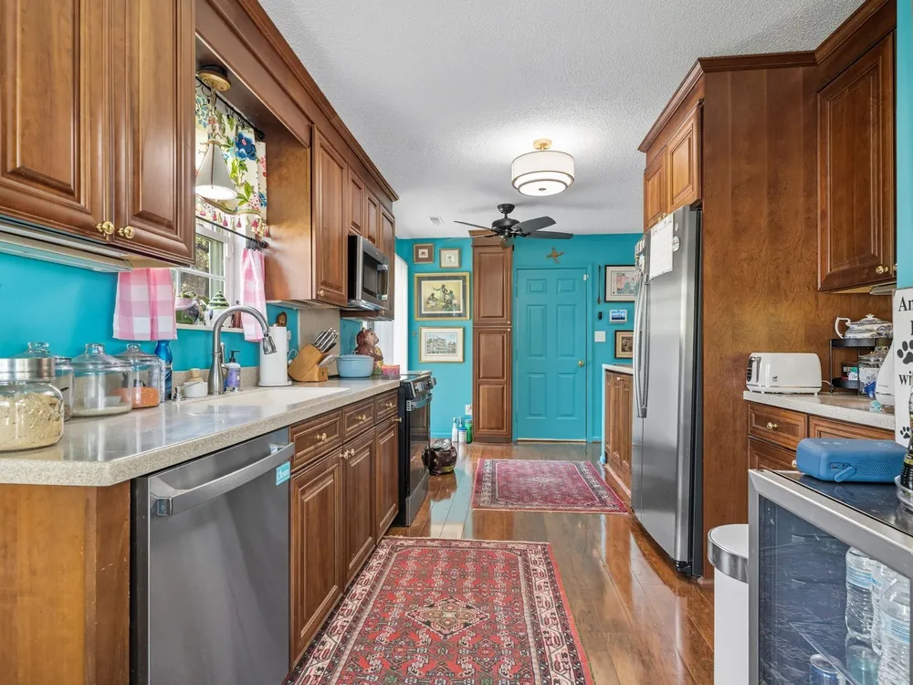 - Skylights, Bedroom on Main Level, Breakfast Area, Stainless Steel Appliances, Solid Surface Counters