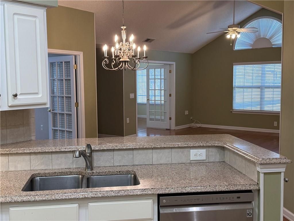 Coming Soon! BE SURE TO CHECK OUT the new paint and carpet and professional photos on March 18! This amazing home is being lovingly refreshed with New Interior Paint and New Carpet JUST FOR YOU! FANTASTIC location with easy access to shopping and fabulous restaurants in Crabapple and Roswell this is a home not to be missed. In the wonderful Active Adult Community of The Orchards of Sweet Apple this floor plan is perfection. As you step onto the welcoming front porch you open the door to a bright and open floor plan with generous living space. Vaulted Ceilings abound and the windows are abundant. Welcome Home! The Great Room features a beautiful fireplace that starts with a simple click of a switch. To the left is the generous Sun Room offering built in book shelves and French Doors. This bright and sunny room is sure to bring great joy as you sit and relax or entertain. The FLEX ROOM-which COULD easily be a third bedroom if you wanted to add an armoire OR a separate Dining Room OR an office OR a separate DEN...well, anything you wanted and features French Doors to give privacy or simply leave open. This unit is the larger floor plan and many of these units list the FLEX ROOM as a third bedroom (some units have closets in this room) but the owner wisely choose more space for this room instead of a closet--this creates space to be ANYTHING you want! It is lovely! Not to be outdone check out the kitchen! The Seller had extra cabinets installed to provide loads of room for all the things a kitchen needs! Graced with lovely granite counters and tile backsplash the kitchen boasts a breakfast counter or should you decide a great place to serve food! Open to the Great Room, Sun Room, FLEX ROOM and Dining Area the person cooking or entertaining is never far from the action. Overlooking the side yard is the spacious Master Suite. Room for a King Size Bed and the Master Bathroom has double vanities and a large walk in closet. The Second Bedroom is located on the other side of the home creating a split bedroom plan providing privacy and space for the occupants. Overlooking the front yard with a large closet the second bedroom is conveniently located across the hall from the second full bathroom. A very large two car garage provides enough space for shelving to store holiday decorations and all the things you wish to store PLUS there are pull down stairs to a floored attic AND ROOM FOR YOUR CARS! Come see for yourselves and start packing to move into your fabulous new home where the only thing you will need to do is unpack and go enjoy the activities! Comes with a 2 year home warranty with Choice Home Warranty! Professional Photos with the new paint and new carpet coming by March 18!