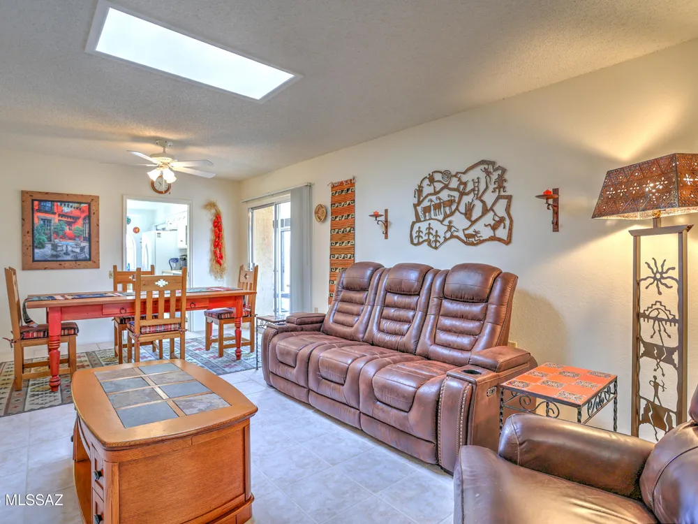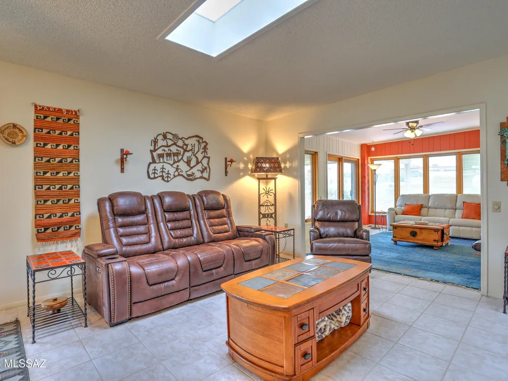 Range Price $369,000. to $395,000. Seller will accept or counter all offers made within the range price. Amazing location in highly desirable Esperanza Estates. 3BD/2BA end-unit with 2,076 sq ft and no neighbors to the east or behind! Enjoy panoramic mountain views from the walled front courtyard with fountain, private backyard, and even mountain views from inside the home. Wraparound enclosed patio is separately heated/cooled for year-round use. One more way to enjoy the views. Bright interior with skylights, tile flooring (carpet in bedrooms), great room + separate family room--perfect for entertaining. Kitchen offers rollouts, lots of cabinets, & all appliances. Private backyard features a remote-control dropdown shade. Newer HVAC 2024. GVR included. 2-car garage with built-in storage