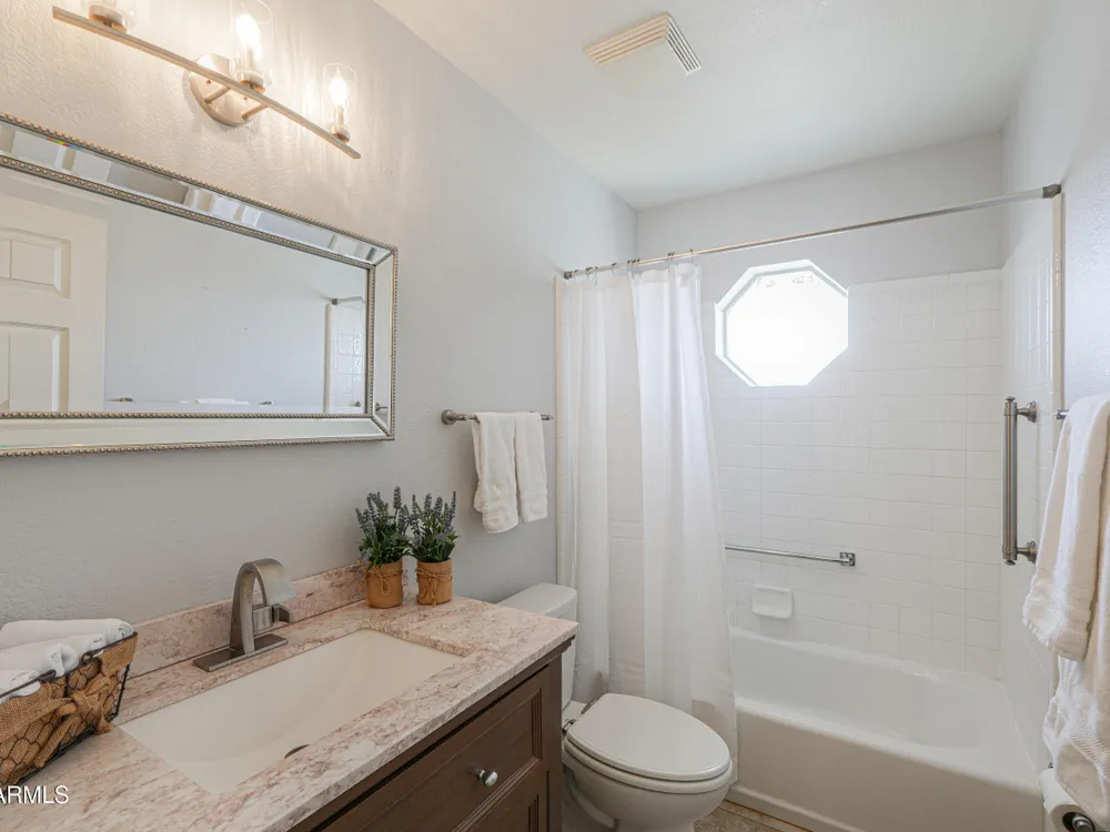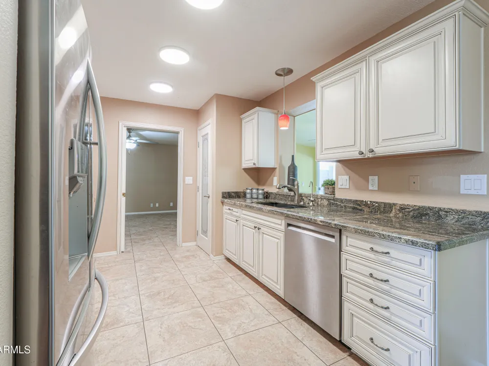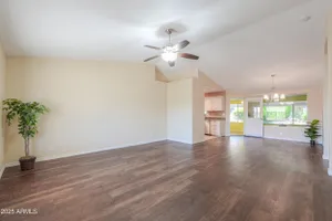 Located in Sunland Springs Village, this 3 bed, 2 bath home offers an enclosed Arizona room, den, and a 2-car garage with built-in storage. Enjoy peace of mind with a new roof installed last fall, newer appliances, and a beautifully renovated primary bathroom. The kitchen, upgraded in 2018, offers modern functionality and style. This home provides flexible living spaces ready to make your own. The community features a 27-hole golf course, pools, fitness centers, pickleball and tennis courts, woodshop, and a wide range of clubs and activities. Surrounded by mountain views, walkable streets, and easy access to shopping, dining, and the US-60, this home offers convenience and an active lifestyle.