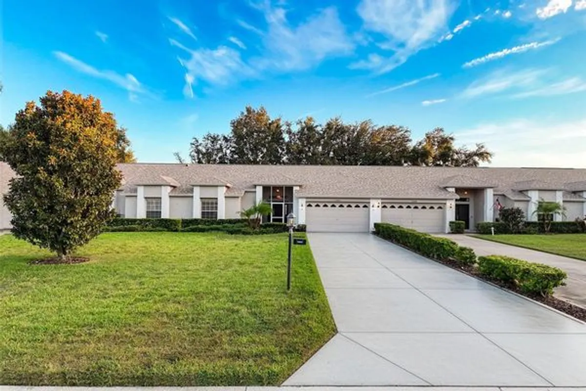 Welcome to this immaculate 2-bedroom, 2-bath villa in the highly sought-after 55+ golf community of Heritage Pines. This 1,664 sqft home features a bright open floor plan with vaulted ceilings, a spacious kitchen with a breakfast bar, and a split-bedroom layout for added privacy. NEW ROOF in 2025! Large sliders open to a screened lanai overlooking a peaceful, low-maintenance yard—perfect for relaxing or entertaining. Built in 2005 and well-maintained, this property also offers one of the largest driveways in the community, a two-car garage, and access to resort-style amenities in a beautifully gated community, combining comfort, convenience, and the best of Florida living.