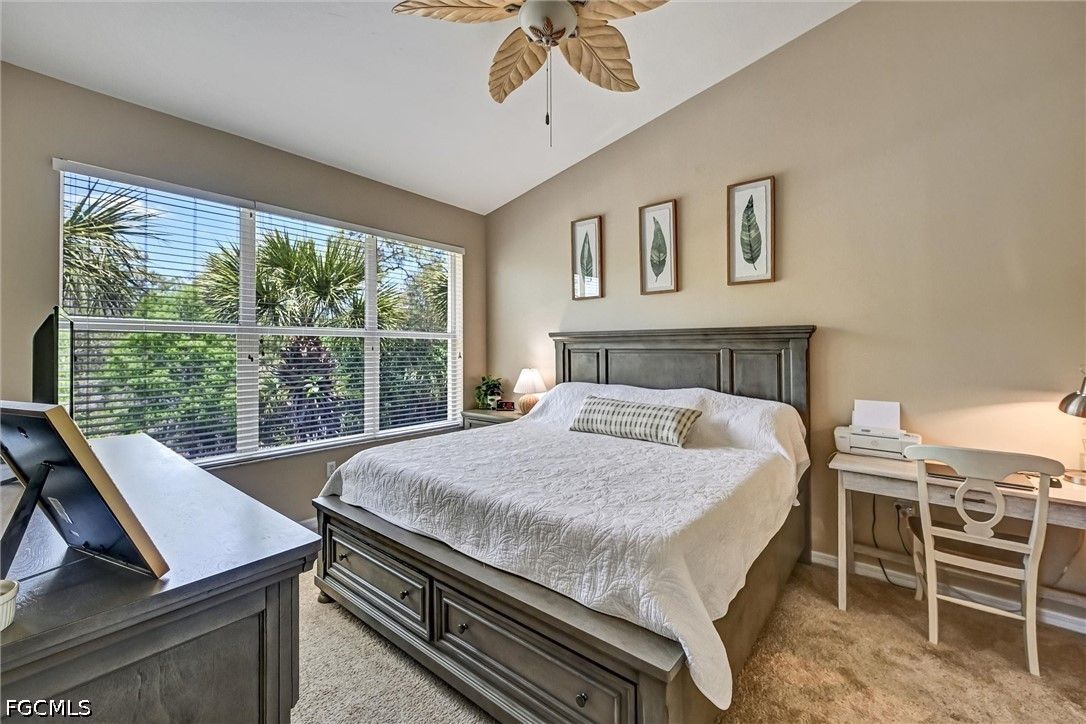Location truly is everything—and this SPOONBILL END UNIT delivers it all. Perfectly positioned with sweeping preserve views, this upper corner residence offers a rare combination of privacy, natural beauty, and light-filled living. Start your day or unwind in the evening on the spacious, tiled lanai—large enough for both dining and lounging—while taking in peaceful preserve views. Inside, vaulted ceilings and an open-concept great room create an airy, inviting atmosphere. The updated kitchen features solid surface countertops, stainless steel appliances, and a stylish tile backsplash—ideal for both everyday living and entertaining. The thoughtfully designed split-bedroom floor plan offers comfort and privacy, with a generous primary suite showcasing dual sinks, an upgraded walk-in shower, and a large walk-in closet. The den, enhanced with French doors, is currently utilized as a bedroom—perfect for guests or a flexible home office space. This sunlit home boasts plantation shutters throughout, is finished in neutral tones and is offered partially TURNKEY, complete with tasteful transitional furnishings—ready for you to enjoy as-is or personalize to your style. Highly sought-after upper corner units like this include a private 1-car garage with opener and 2-car driveway, adding convenience and value. 5 minute walk to 2 community pools. With easy access to the 3-mile paved preserve walk, the condo is located within Colonial Country Club where residents enjoy an exceptional lifestyle featuring pay-as-you-play golf, an attended fitness center with classes, two community pools, eight pickleball courts, eight clay tennis courts, bocce, plus an on-site spa, restaurant, and vibrant bar scene. A full social calendar offers endless opportunities for connection, entertainment, and relaxation. Whether you’re seeking a peaceful retreat, an active lifestyle, or the perfect blend of both—this home delivers. Move right in and start living the Southwest Florida lifestyle you’ve been dreaming of.