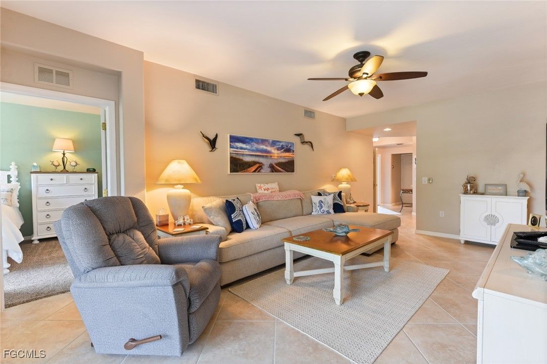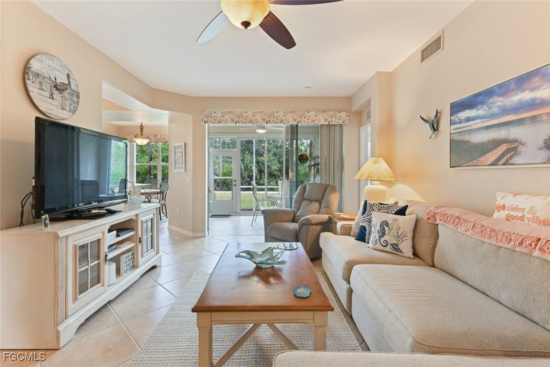 Breezy Florida decor in this Immaculate, Inviting & Move-In Ready condo. Step into perfection with this stunning 3-bedroom, 2-bath condo in the highly sought-after Colonial Country Club. Meticulously maintained and beautifully decorated, this TURNKEY property offers effortless living from day one. Enjoy four-season comfort in the spacious lanai, enclosed with sliders—perfect for year-round dining and relaxation. Unwind with breathtaking sunset views and marvel at the deer grazing nearby—your own slice of Florida nature! The bright, modern kitchen features newer stainless-steel appliances, and the home boasts numerous thoughtful upgrades—see the attached list for details! Nestled in a vibrant, amenity-rich community, Colonial Country Club offers something for everyone: 8 Pickleball Courts; 8 Clay Tennis Courts; Bocce Ball; Fitness Center with Instructor-Led Classes; Full-Service Spa; On-Site Restaurant & Bar; A Calendar Full of Social Events & Activities; and a Gordon Lewis Golf Course, undergoing a full renovation and reopening in Dec 2025. Non-equity members can book tee times and play! Enjoy unbeatable convenience with quick access to RSW Airport and I-75. Whether you're looking for a full-time residence or seasonal getaway, this home delivers the Florida lifestyle you've been dreaming of. Come live the good life at Colonial—schedule your tour today and don't wait to get ink on paper... your Florida Dream Awaits!