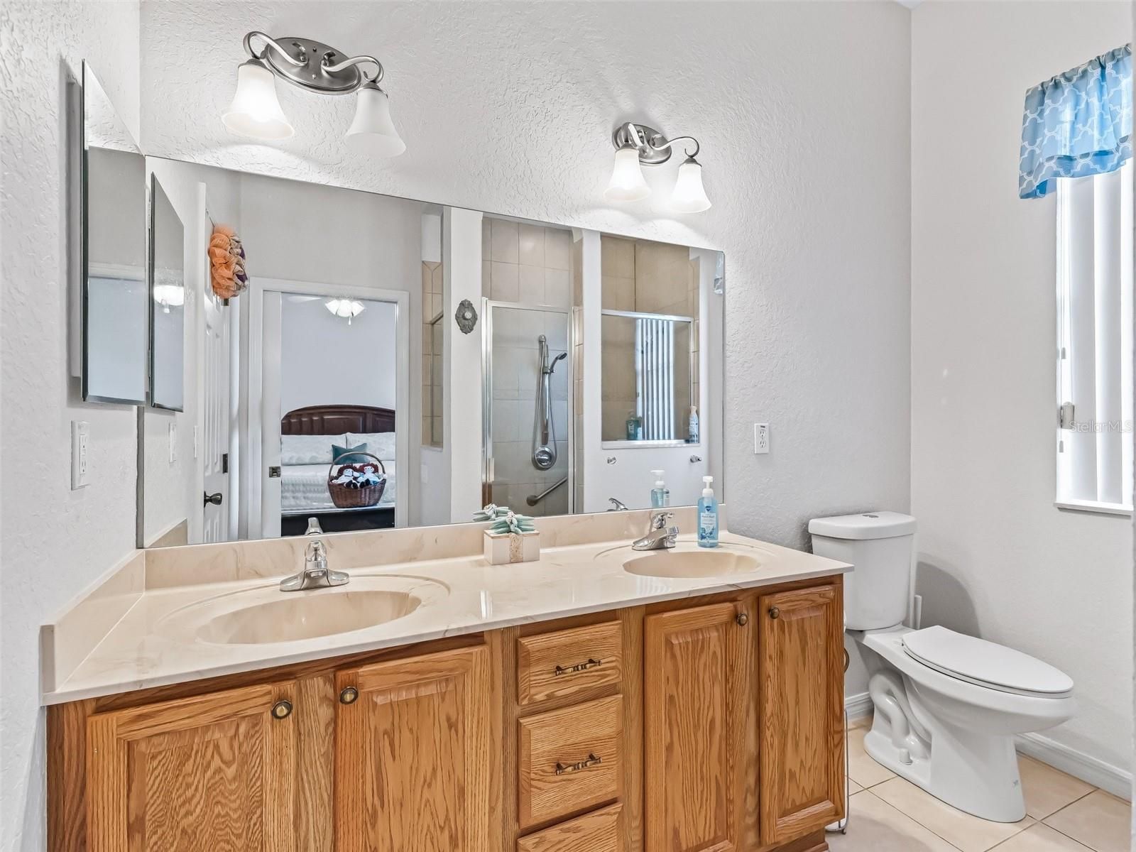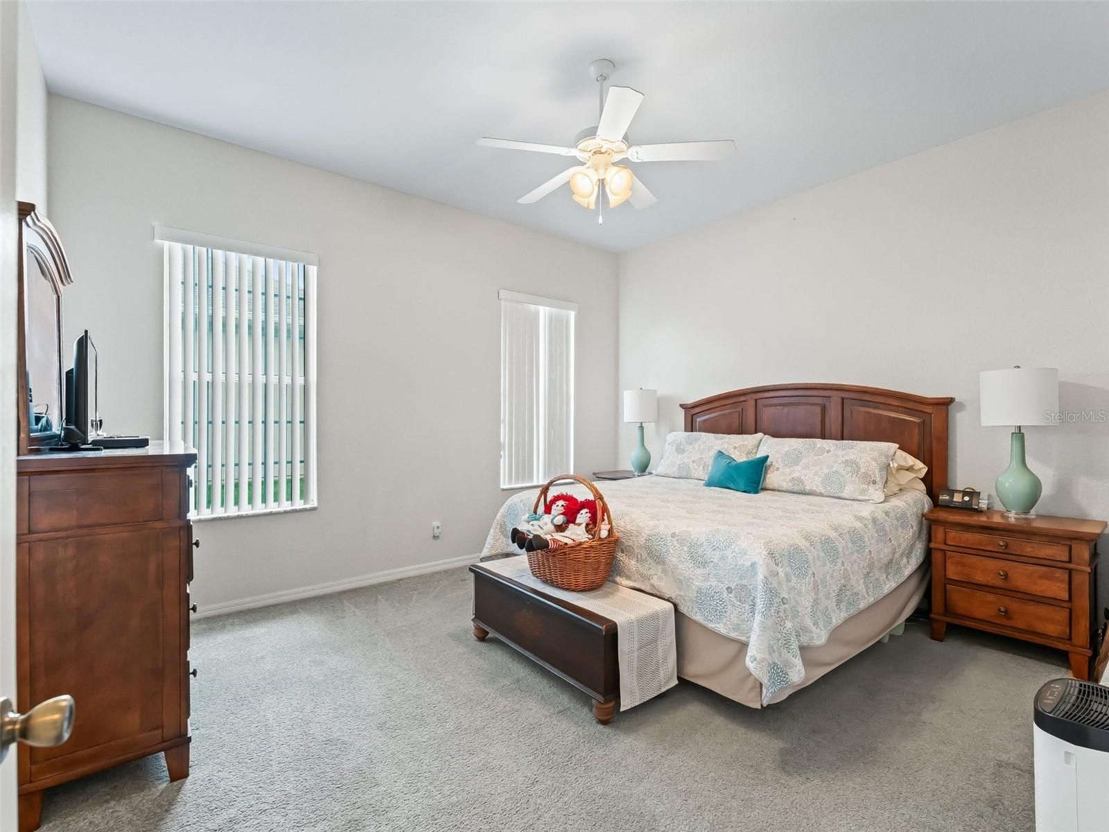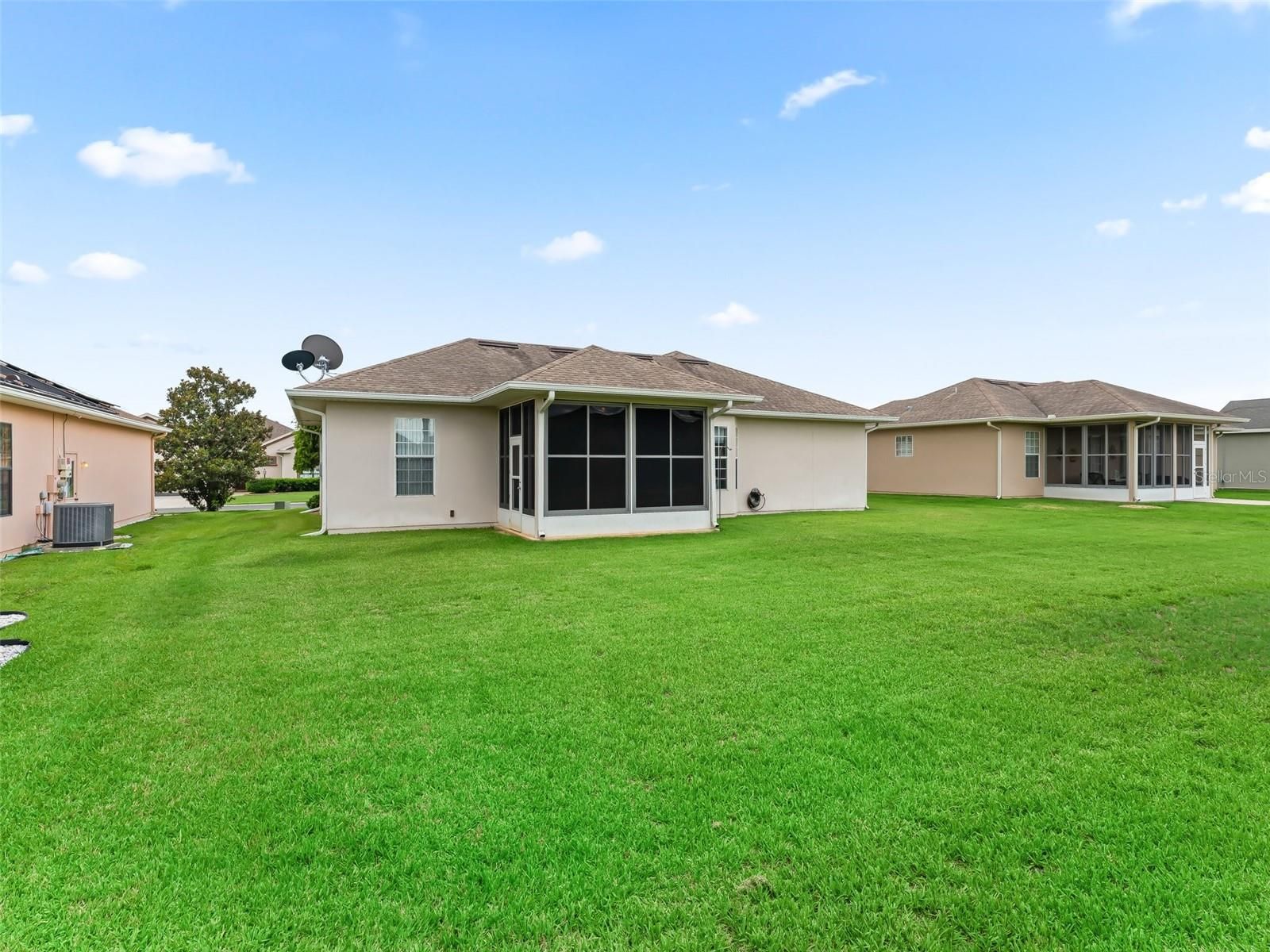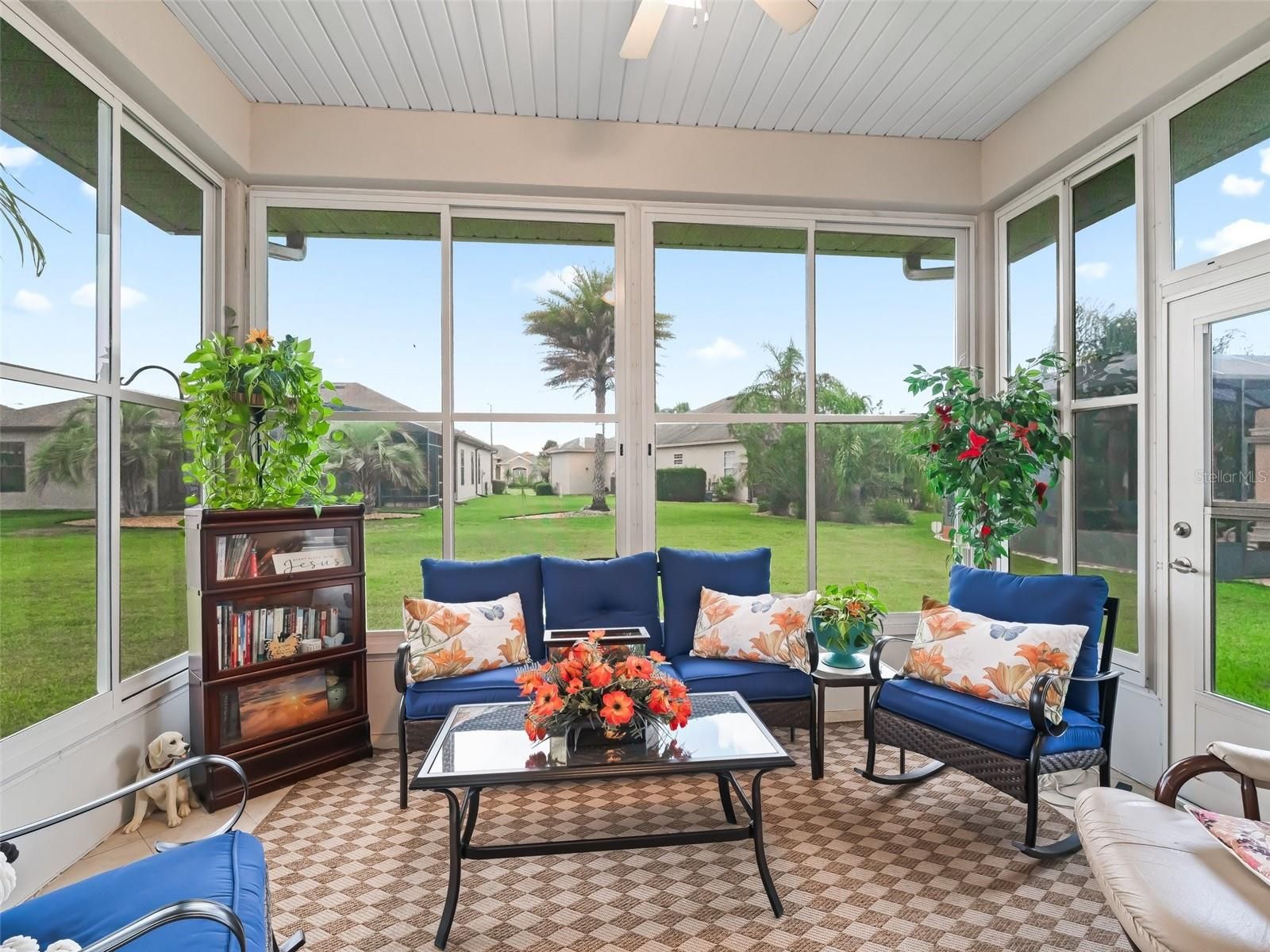 Stonecrest is a 55+ gated golf course community with all the amenities and 4 pools (one indoor), and just a Bridge Away By Golf Cart To The Villages! Stunning 3/2 Lilly model by Armstrong with a 2 Car Garage + Golf Cart Garage, and a New Lift Master Garage Door Opener! HVAC 2022! Room for a Pool! You will Love This Open Concept Floor Plan with Spacious, Light and Bright, with soaring 10 ft ceilings, just perfect for Entertaining Friends and Family! The Kitchen features All New Stainless Appliances (2024), Wood cabinetry, a Pantry Closet, Butler's Window to Dining area, Plenty of counter space, and an Eat -in Area. The Split Floor Plan offers maximum Privacy for both the Owners and their Guest, with the Primary suite commanding one side of the home while the guest bedrooms and guest bathroom are located on the opposite side of the home. The Luxurious Primary suite offers a Walk in Closet, and an En Suite bathroom. The En Suite bathroom showcases two sink vanity, and a Tiled Walk in Shower. The dining area offers sliding door access to the Enclosed Lanai with Tile flooring, making it effortless to enjoy relaxing evenings soaking in the Beautiful Sun Sets, and Fantastic Florida weather! Stonecrest is a 55+ gated golf course community with all the amenities, pools, pickleball courts, softball, 18 hole championship golf course, Broad Stripes Golf & Social Club and over 80 different clubs to join! Stonecrest is just a bridge away by golf cart to the Villages. It is a community with Private Roads and 24 Hour Security! As a private gated golf course community, you can expect a high level of privacy and security. Overall, this home offers a combination of Tremendous Outdoor Space, luxurious features, a desirable location, and a secure community setting. A WONDERFUL LIFESTYLE AWAITS YOU IN STONECREST!