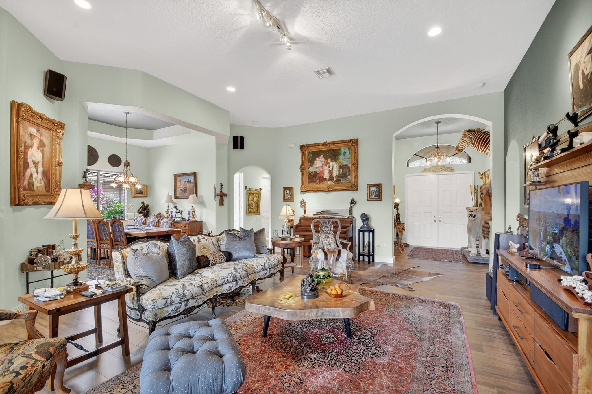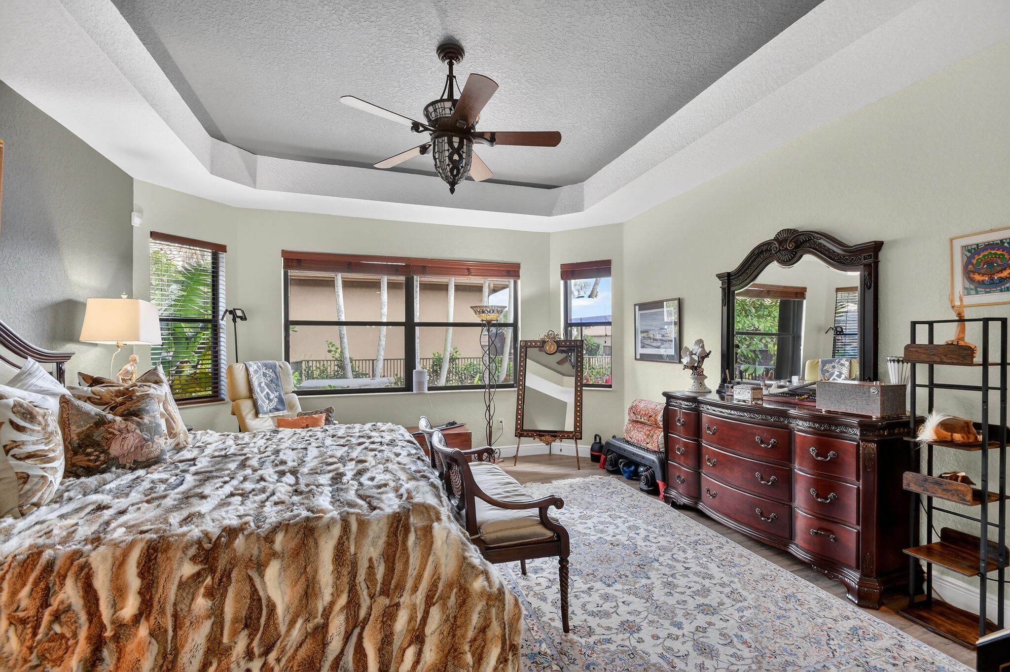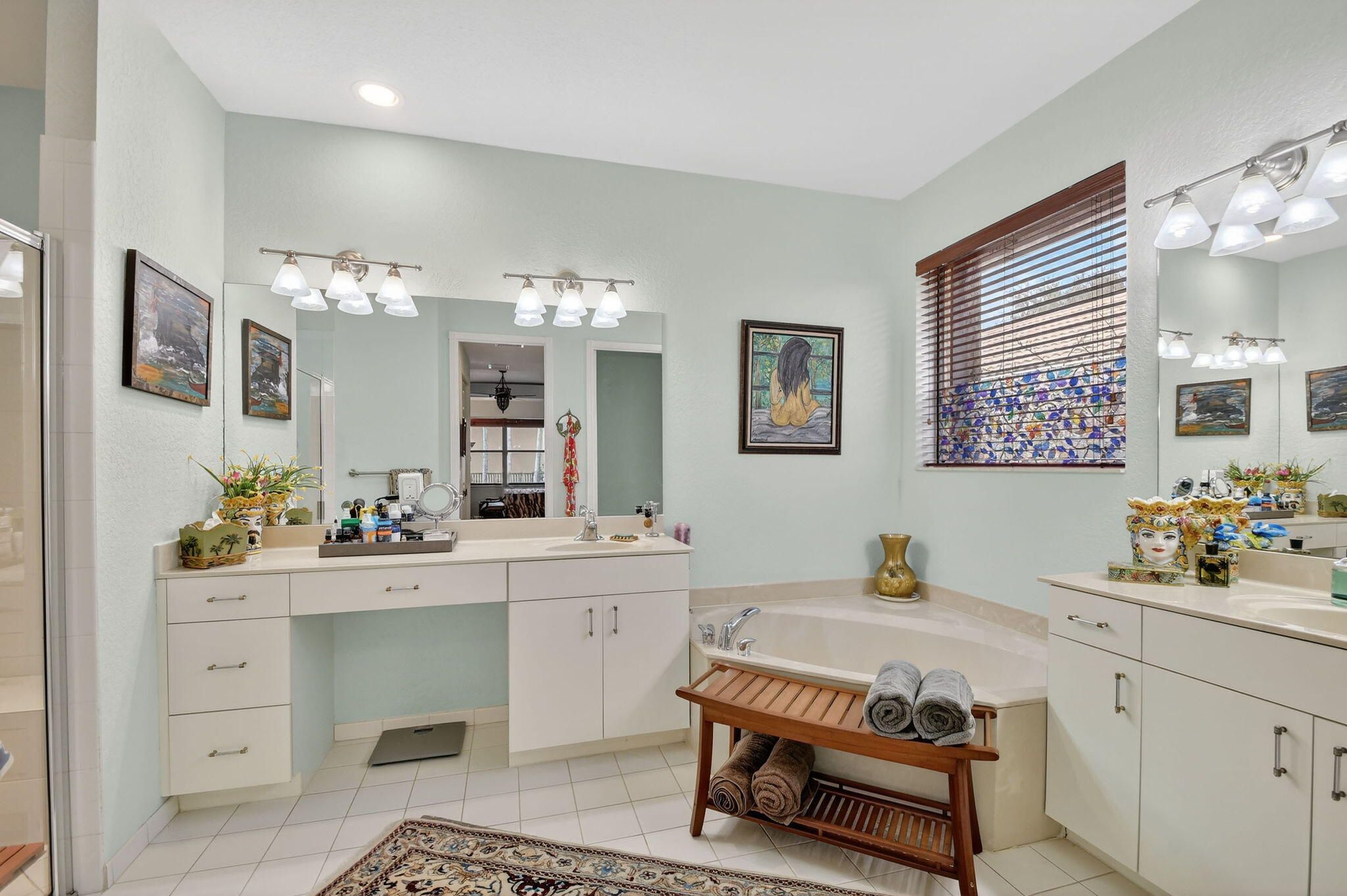 Welcome to this exceptional residence nestled within the prestigious, guard-gated community of Tivoli Reserve. This impeccably maintained 3-bedroom, 2.5-bath home offers an elegant blend of refined luxury, thoughtful upgrades, and effortless Florida living in one of the area's most sought-after 55+ communities. From the moment you enter, you're greeted by soaring ceilings, porcelain wood-look tile flooring throughout, and an abundance of natural light that enhances the home's spacious, open feel. The thoughtfully designed floor plan provides the perfect balance of formal entertaining and relaxed everyday living, featuring a gracious great room, a formal dining area, and seamless indoor-outdoor flow to the screened and open patios. At the heart of the home is a beautifully appointed kitchen designed to impress. Classic white cabinetry, tiled countertops and backsplash, a convenient snack bar, and a charming breakfast nook create both functionality and style. Whether hosting guests or enjoying a quiet morning coffee, this inviting space is as practical as it is beautiful. The expansive primary suite is a true retreat, highlighted by a tray ceiling and dual custom walk-in closets outfitted with California Closet systems for optimal organization. The luxurious ensuite bath offers dual vanities, a relaxing soaking tub, and a separate walk-in shower - providing a spa-like experience in the comfort of your own home. Two additional bedrooms and a well-appointed half bath offer flexibility for guests, hobbies, or a home office. Step outside to your private screened patio - perfect for enjoying peaceful mornings, evening breezes, or entertaining friends. The open patio space provides additional room for outdoor gatherings and soaking up the Florida sunshine. This home is loaded with valuable upgrades for comfort and peace of mind, including a brand-new AC system with UV light and a new hot water heater (2024), accordion hurricane shutters, and a whole-house generator powered by a substantial 500-gallon propane tank - ensuring reliability year-round. Residents of Tivoli Reserve enjoy resort-style amenities and an active social lifestyle, with a stunning clubhouse, state-of-the-art fitness center, billiards, social hall, resort-style pool, tennis and pickleball courts. Ideally located near upscale shopping, dining, entertainment, major highways, and airports, this home offers both tranquility and convenience. This is more than a home - it's a lifestyle defined by elegance, comfort, and community.