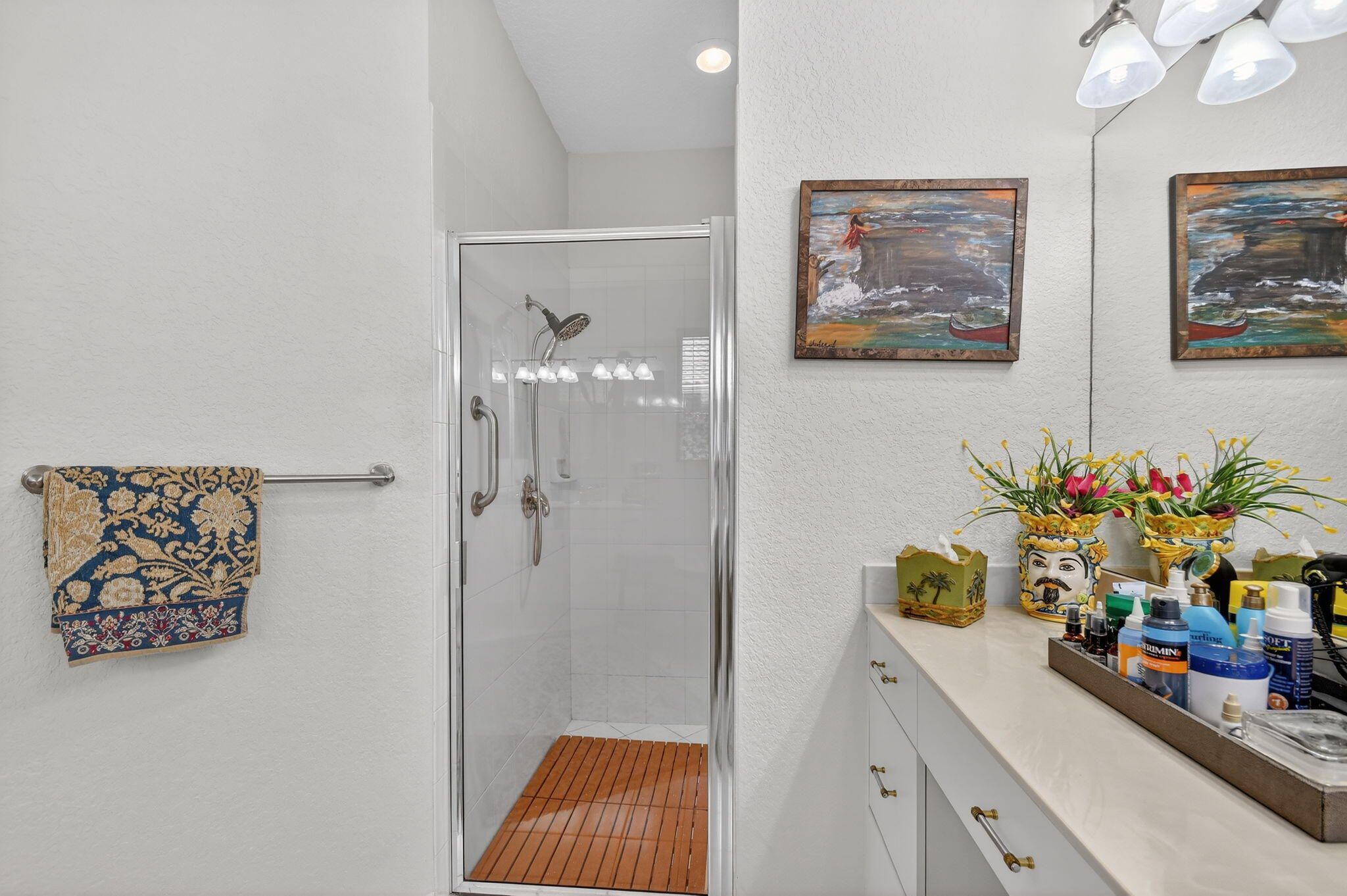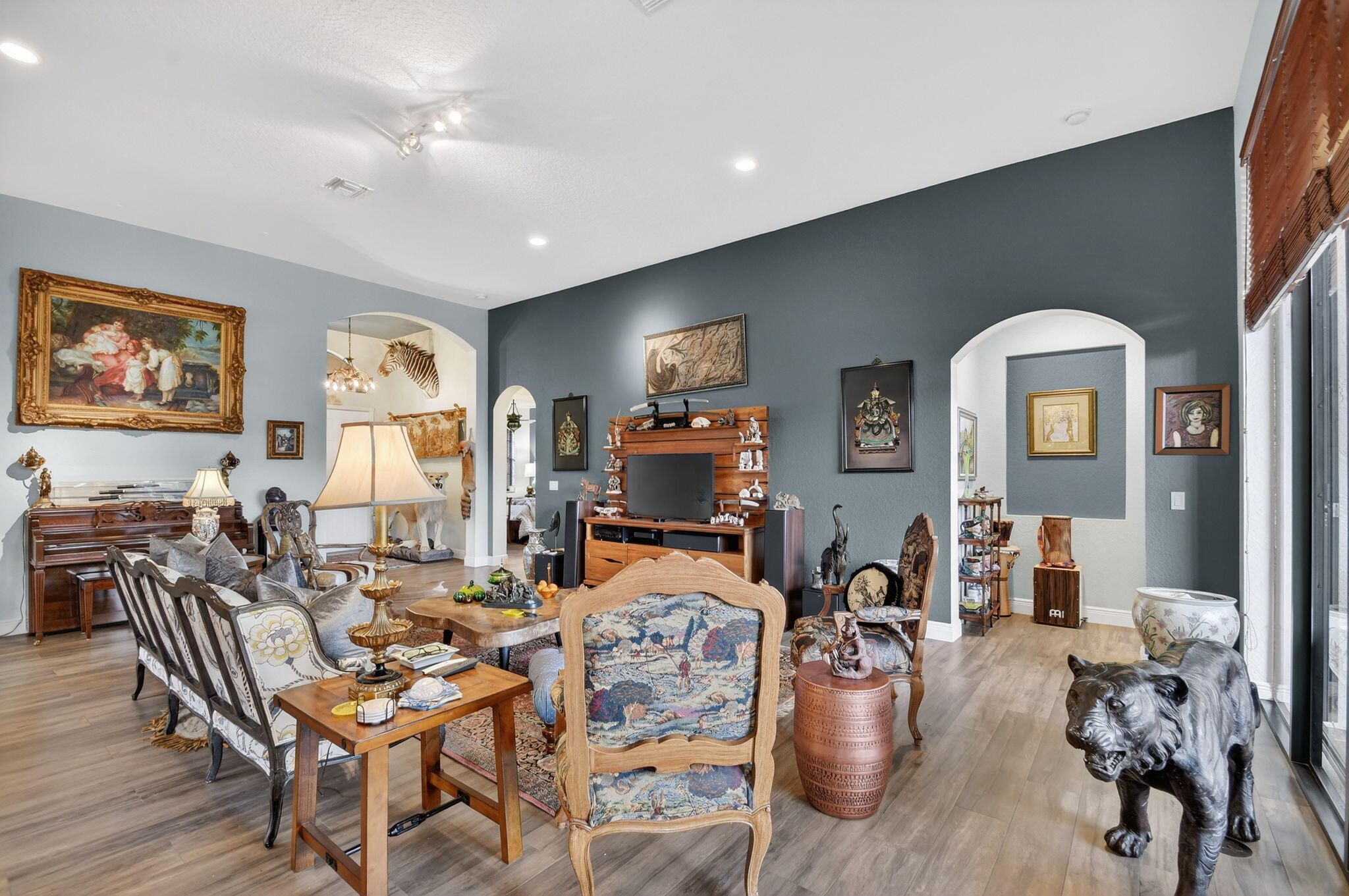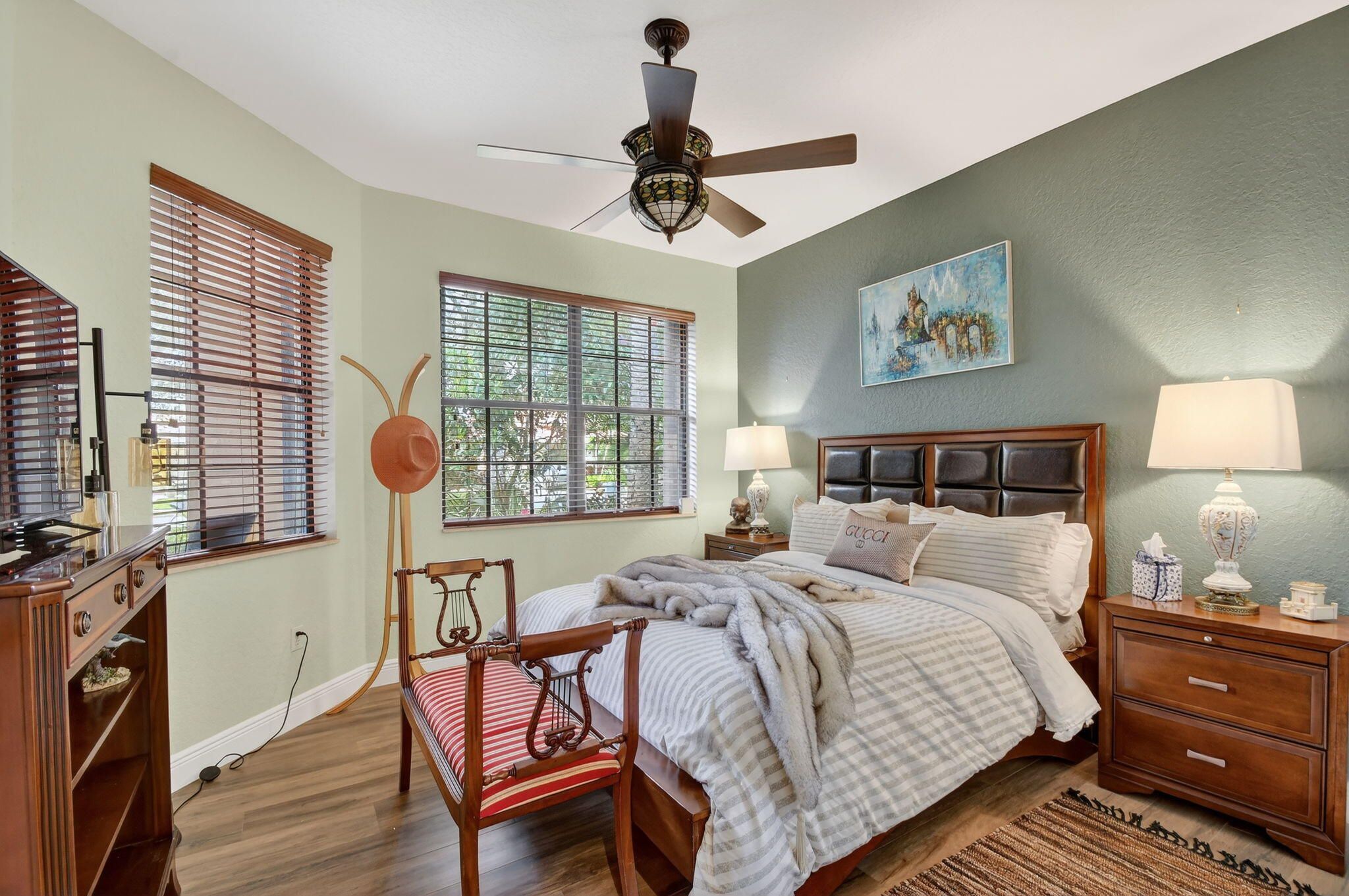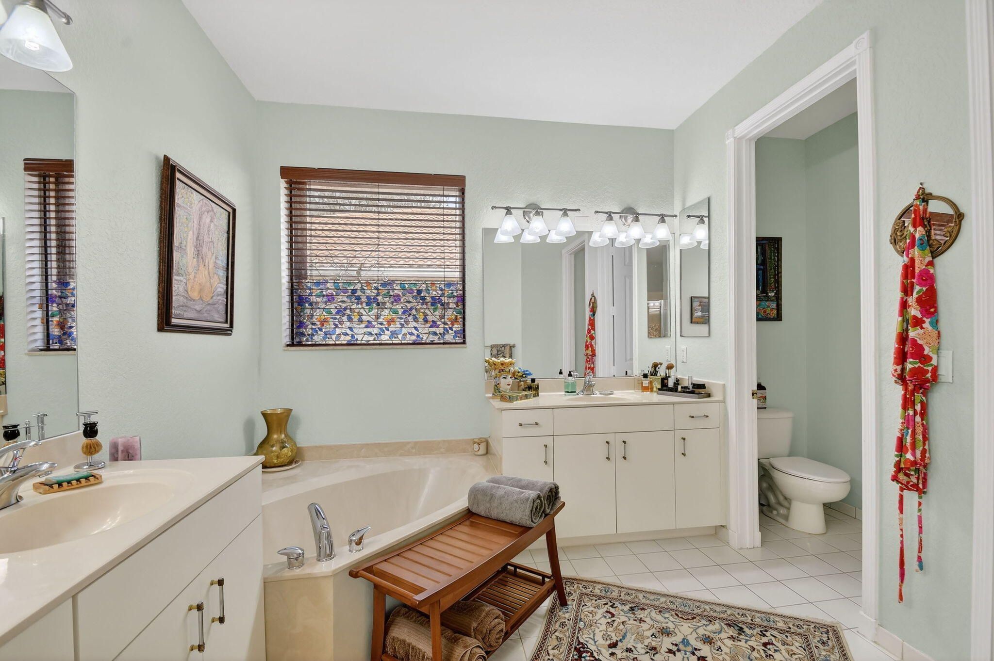 Welcome to this exceptional residence nestled within the prestigious, guard-gated community of Tivoli Reserve. This impeccably maintained 3-bedroom, 2.5-bath home offers an elegant blend of refined luxury, thoughtful upgrades, and effortless Florida living in one of the area's most sought-after 55+ communities. From the moment you enter, you're greeted by soaring ceilings, porcelain wood-look tile flooring throughout, and an abundance of natural light that enhances the home's spacious, open feel. The thoughtfully designed floor plan provides the perfect balance of formal entertaining and relaxed everyday living, featuring a gracious great room, a formal dining area, and seamless indoor-outdoor flow to the screened and open patios. At the heart of the home is a beautifully appointed kitchen designed to impress. Classic white cabinetry, tiled countertops and backsplash, a convenient snack bar, and a charming breakfast nook create both functionality and style. Whether hosting guests or enjoying a quiet morning coffee, this inviting space is as practical as it is beautiful. The expansive primary suite is a true retreat, highlighted by a tray ceiling and dual custom walk-in closets outfitted with California Closet systems for optimal organization. The luxurious ensuite bath offers dual vanities, a relaxing soaking tub, and a separate walk-in shower - providing a spa-like experience in the comfort of your own home. Two additional bedrooms and a well-appointed half bath offer flexibility for guests, hobbies, or a home office. Step outside to your private screened patio - perfect for enjoying peaceful mornings, evening breezes, or entertaining friends. The open patio space provides additional room for outdoor gatherings and soaking up the Florida sunshine. This home is loaded with valuable upgrades for comfort and peace of mind, including a brand-new AC system with UV light and a new hot water heater (2024), accordion hurricane shutters, and a whole-house generator powered by a substantial 500-gallon propane tank - ensuring reliability year-round. Residents of Tivoli Reserve enjoy resort-style amenities and an active social lifestyle, with a stunning clubhouse, state-of-the-art fitness center, billiards, social hall, resort-style pool, tennis and pickleball courts. Ideally located near upscale shopping, dining, entertainment, major highways, and airports, this home offers both tranquility and convenience. This is more than a home - it's a lifestyle defined by elegance, comfort, and community.