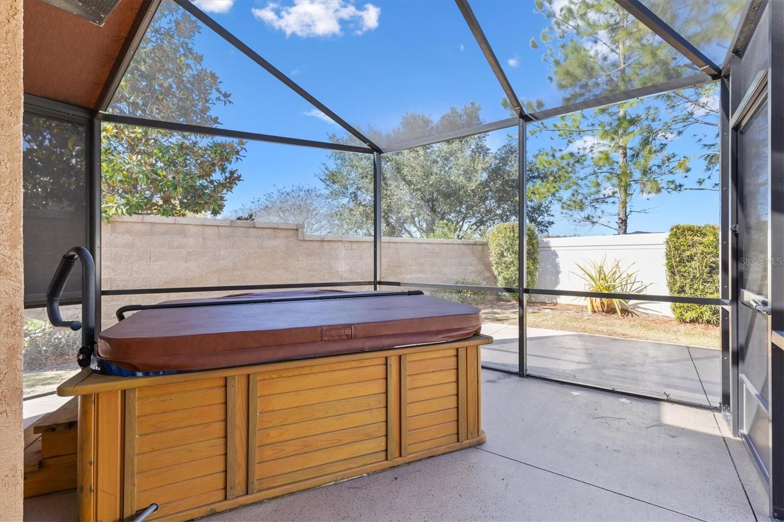 Start your new life with Solar Energy fully paid for. Now you can take advantage of all the highlights of the Florida Sun. One Tesla Charging station is already to connect your vehicle. BEAUTIFUL SPACIOUS 3/2 AVONDALE BUNGALOW COURTYARD VILLA WITH 2 CAR GARAGE! This home sits on a large private corner lot with no homes behind plus there is room for a pool. Large screened in birdcage lanai which is covered overhead making this a perfect spot to relax while enjoying the peaceful outdoors. Or if you choose, slip into your soothing warm hot tub that massages tight muscles and calms the soul. The inviting front porch allows you to feel the gentle breeze while sipping your coffee. It’s the perfect spot to wave or have casual conversations with the friendly neighbors. Inside you will find an upgraded kitchen with stainless steel appliances, wainscoting on the center island, tall cabinets with pull outs and soft close drawers that are highly desirable. Crown molding on the cap of the cabinets plus crown molding throughout the entire home. Stylish Luxury Vinyl Plank flooring is also throughout the home. Closet organizers in the 3 bedroom’s. Primary bedroom with double sink vanity, walk-in closet, private toilet room and a linen closet. Two guest bedrooms with guest bathroom located down the hallway. Two slider doorways ( one from the kitchen nook area and a large sliding door wall off the living room ) which opens up the outdoors to the indoors for lots of living space. The big perk is the full size 2 car garage with plenty of storage and pull down stairs to the attic. Great area and so close to everything. Moyer Recreation Center. Colony Recreation Center, shopping plaza with stores and restaurants, plenty of golf courses are moments away. Central to Sumter Landing and Brownwood Town Square where there’s entertainment everyday of the week! Bond Balance $12,216.64, Annual Bond Payment 1043.98, Villages CDD Maintenance 411.27, Fruitland Park Fire Rescue 344.85 Come see this amazing Courtyard Villa that’s priced to sell! PLUS comes with a 2015 Yamaha golf cart which is included! WOW!