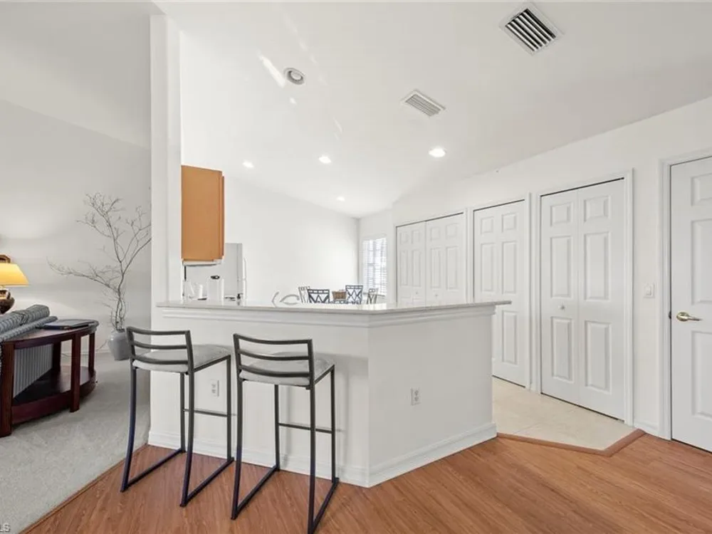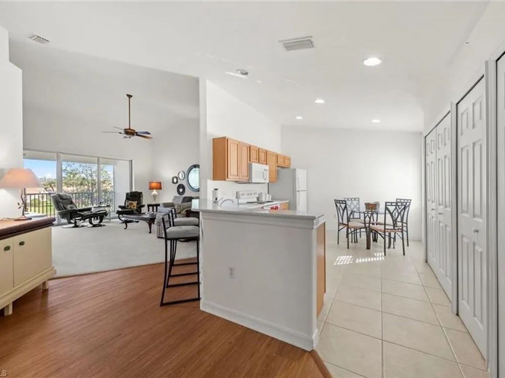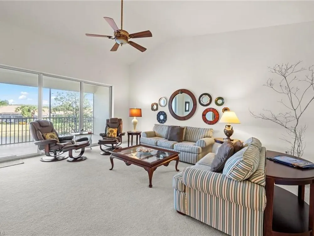 Luxury Living at Colonial Country Club! Experience the epitome of elegance, fun and relaxation at Colonial Country Club, of Fort Myers, Florida. This exclusive, well appointed, meticulously maintained, 3 bedroom, 2 bath, upper-level Cormorant floorplan condo, offers a lifestyle of luxury, surrounded by lush tropical landscapes and world-class amenities. The Cormorant is one of the most desirable with the split bedroom floorplan that provides privacy for family and guests and volume ceilings which offers spaciousness, comfort and abundant natural light. Step into your own oasis and private sanctuary with an extra large lanai with new screens, overlooking a tranquil tropical lake and preserve, providing the perfect backdrop for serene relaxation or outdoor entertainment and majestic sunsets. Indulge your inner chef in the light, bright and fresh, upgraded kitchen complete with ample counter space, pantry and eat-in dining, laundry area and tile flooring. Stylish features from elegant custom furnishings, gorgeous tile flooring, cozy carpet in the bedrooms, for every detail of this home offers comfort and sophisticated style and is being offered TURNKEY! Step into your own oasis and private sanctuary with an extra large lanai with new screens, overlooking a tranquil tropical lake, providing the perfect backdrop for serene relaxation or outdoor entertainment and majestic sunsets. Built in Hurricane shutter system provides security and peace of mind. One car garage. Steps away from your association pool it is just like having your own pool and spa! Take advantage of the Gordon Lewis-designed golf course, offering challenges and excitement for golfers of all skill levels 5 tee sets, along with bocce, pickleball for all skill levels of players, tennis, and a state-of-the-art fitness center. Enjoy resort-style amenities and dive into luxury with 8 sparkling pools, walking trails in the scenic preserve, and dining in the Sunset Grille, boasting indoor/outdoor dining and a lively sports bar atmosphere. Colonial is a very active, friendly community offering entertainment from live music, trivia nights, Name that Tune Night, BINGO, BUNCO, card and game clubs. Colonial Country Club accolades include been recognized as one of America's Healthiest Clubs, receiving distinguished awards for excellence in hospitality, culinary delights, and racquet operations from Club and Resorts Business Magazine. 2024 International Wine Society Merit Award. Colonial Country Club is conveniently located near all the SWFL world-class beaches, medical facilities, shopping centers, entertainment venues, downtown Fort Myers district, RSW airport, spring training baseball stadiums and so much more! This is a contender when shopping condos and could be the perfect ONE for YOU! Indulge in making your tropical dreams a reality living the Southwest Florida lifestyle and elevate the dream living in Colonial Country Club – where every day feels like a vacation!