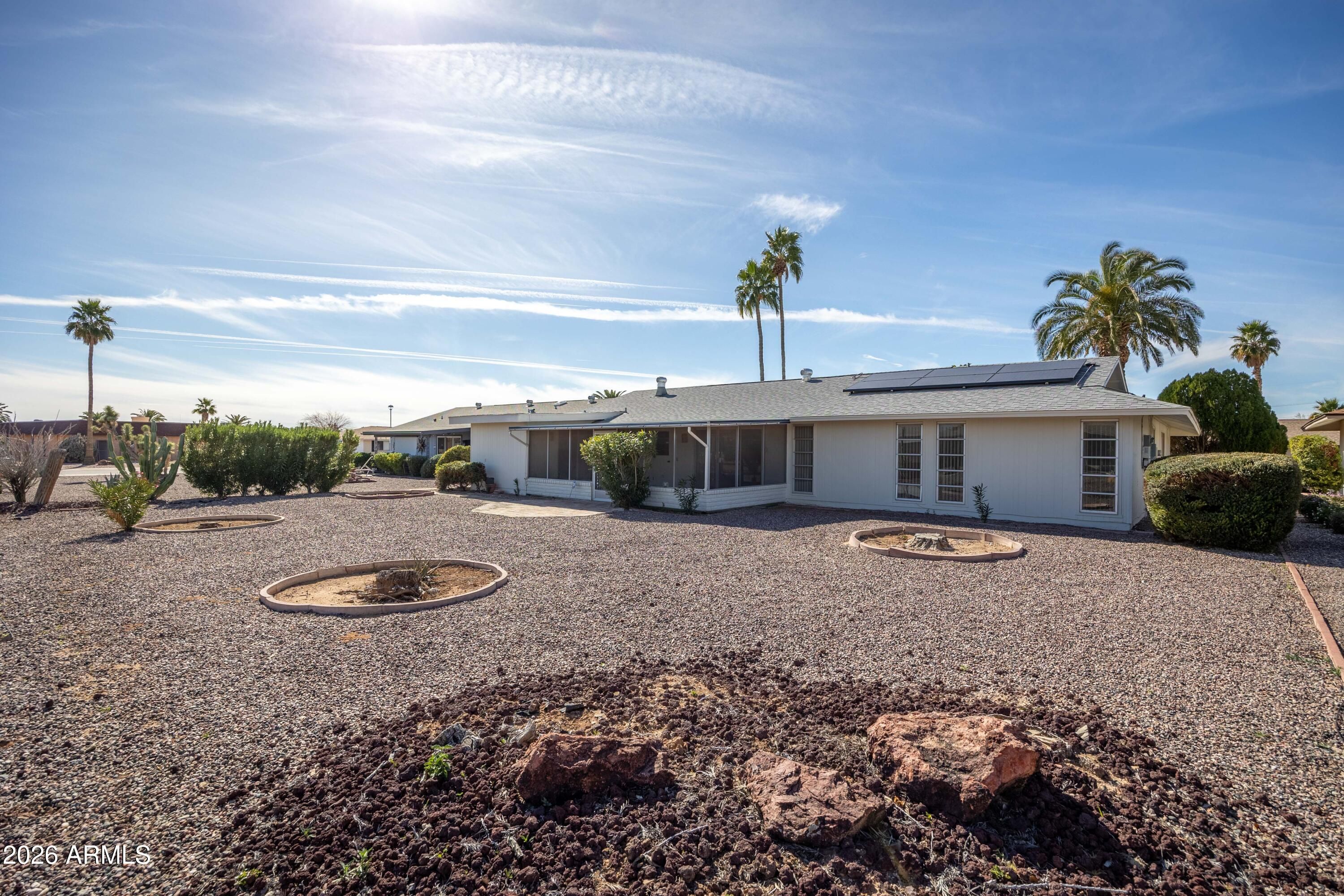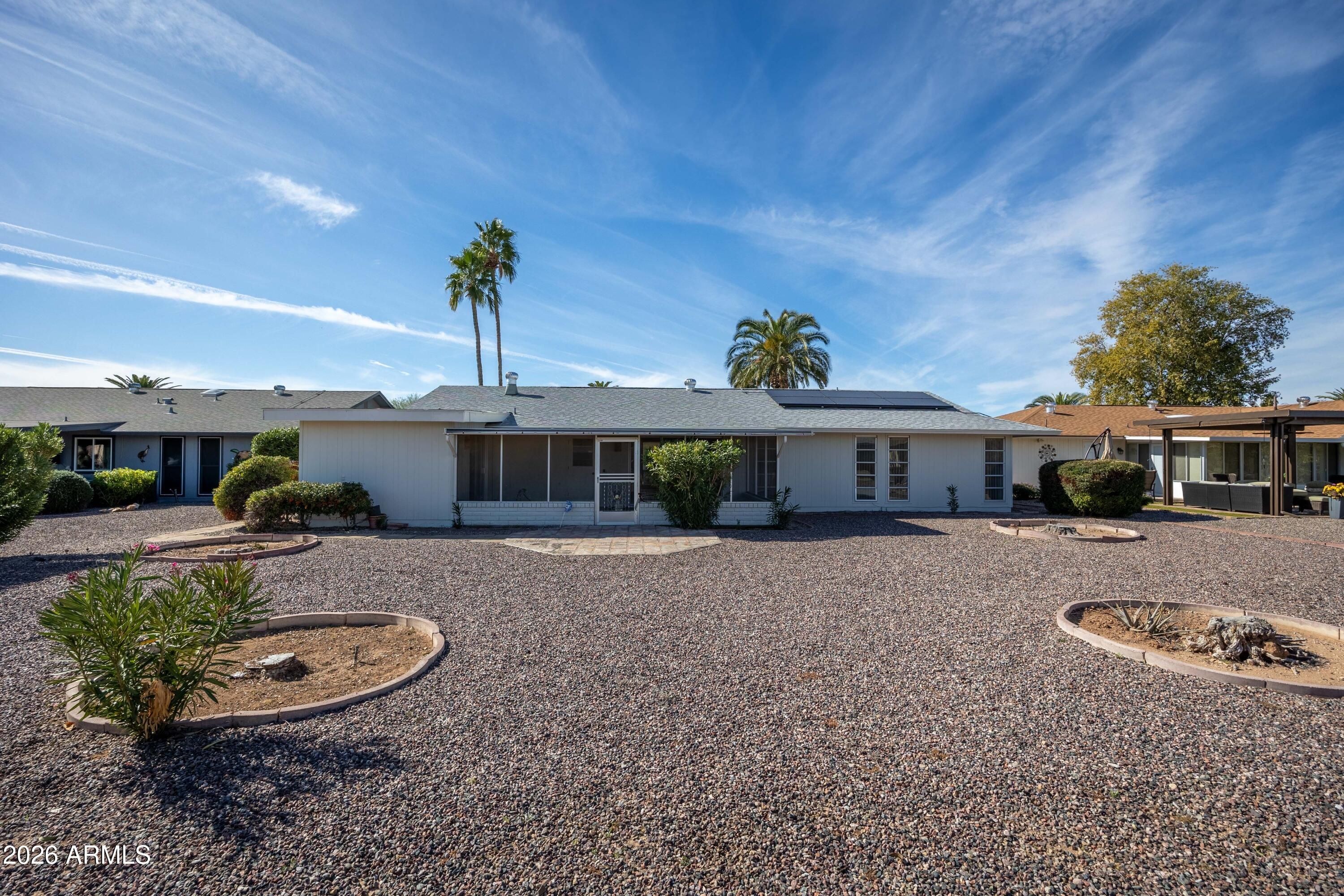 Welcome to this beautiful 2-bedroom, 2-bath home with a dedicated office/den room, offering a spacious and functional layout ideal for both comfort and entertaining. The open living areas create an inviting atmosphere, while fresh interior and exterior paint and brand-new carpeting give the home a modern, move-in-ready feel. Major updates provide peace of mind, including a newer roof (2021), HVAC system (2018) with furnace coil replaced in December 2025, solar panels installed in 2021, and a water heater from 2017. The low-maintenance yard allows you to spend more time enjoying the Sun City community lifestyle!