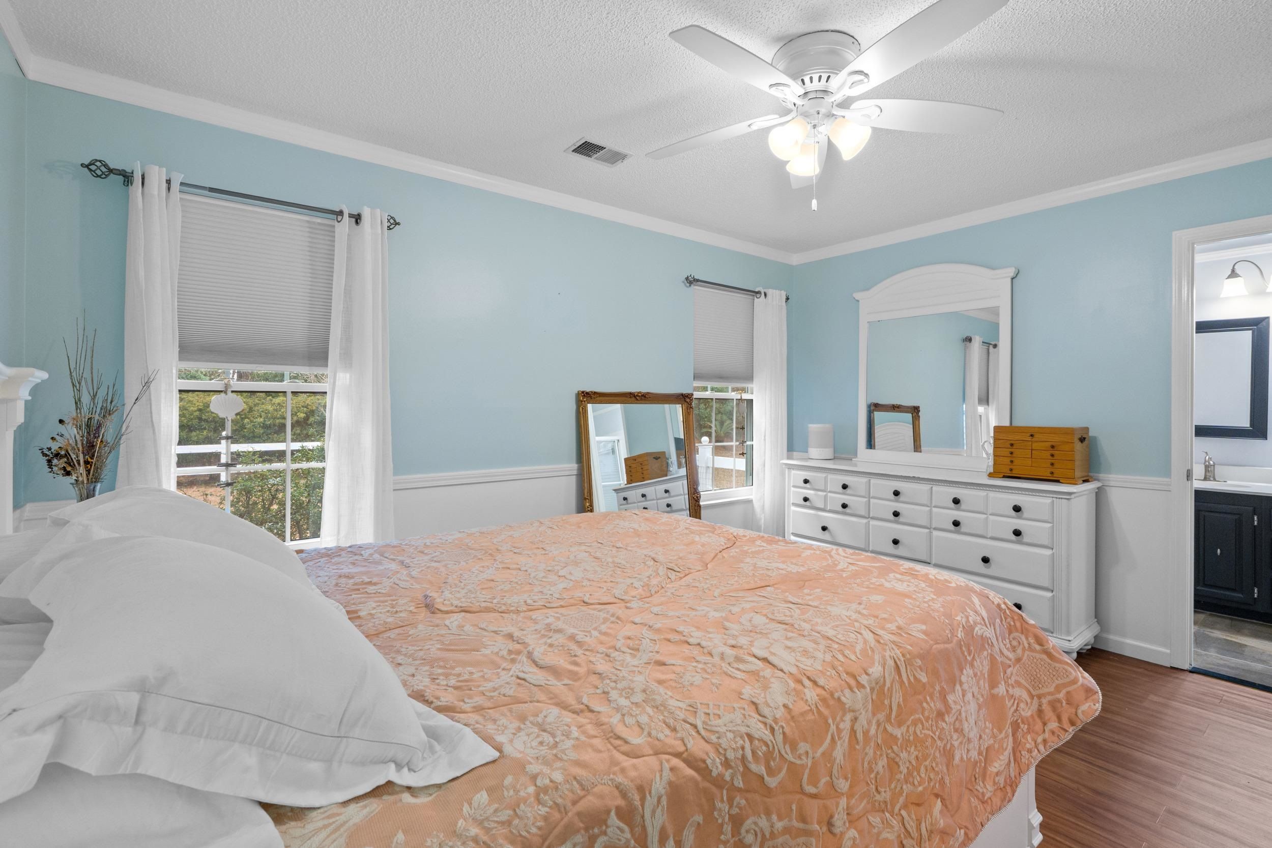 - Attic Access, Ceiling Fan(s), Dual Sinks, Pull Down Attic Stairs, Permanent Attic Stairs, Skylights, Separate Shower, Tub Shower, Vanity, Walk-In Closet(s), Window Treatments, Breakfast Bar, Bedroom on Main Level, Solid Surface Counters