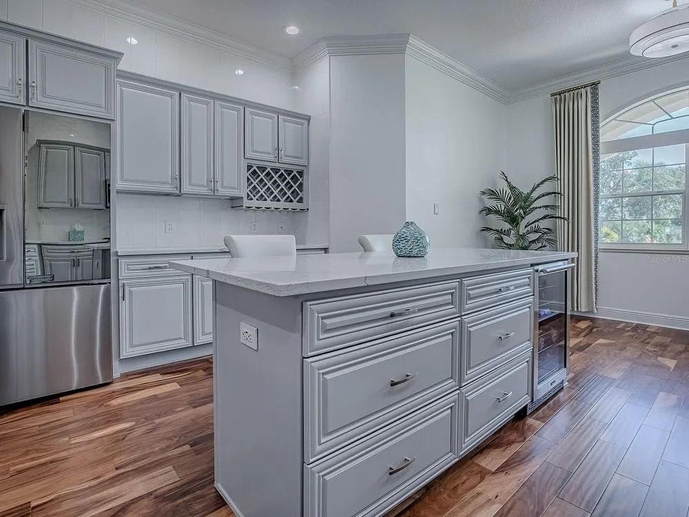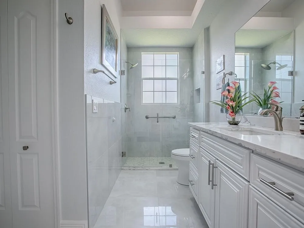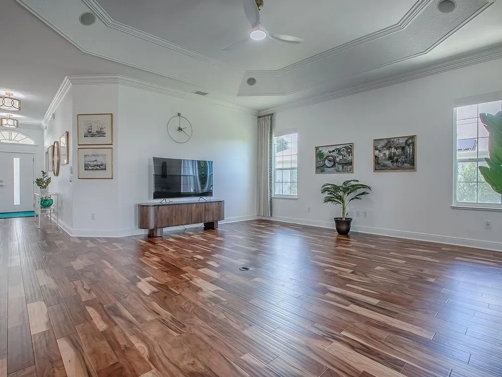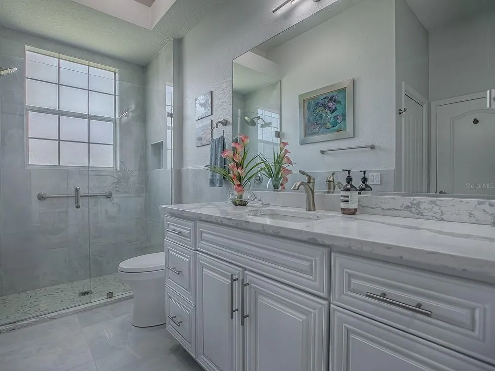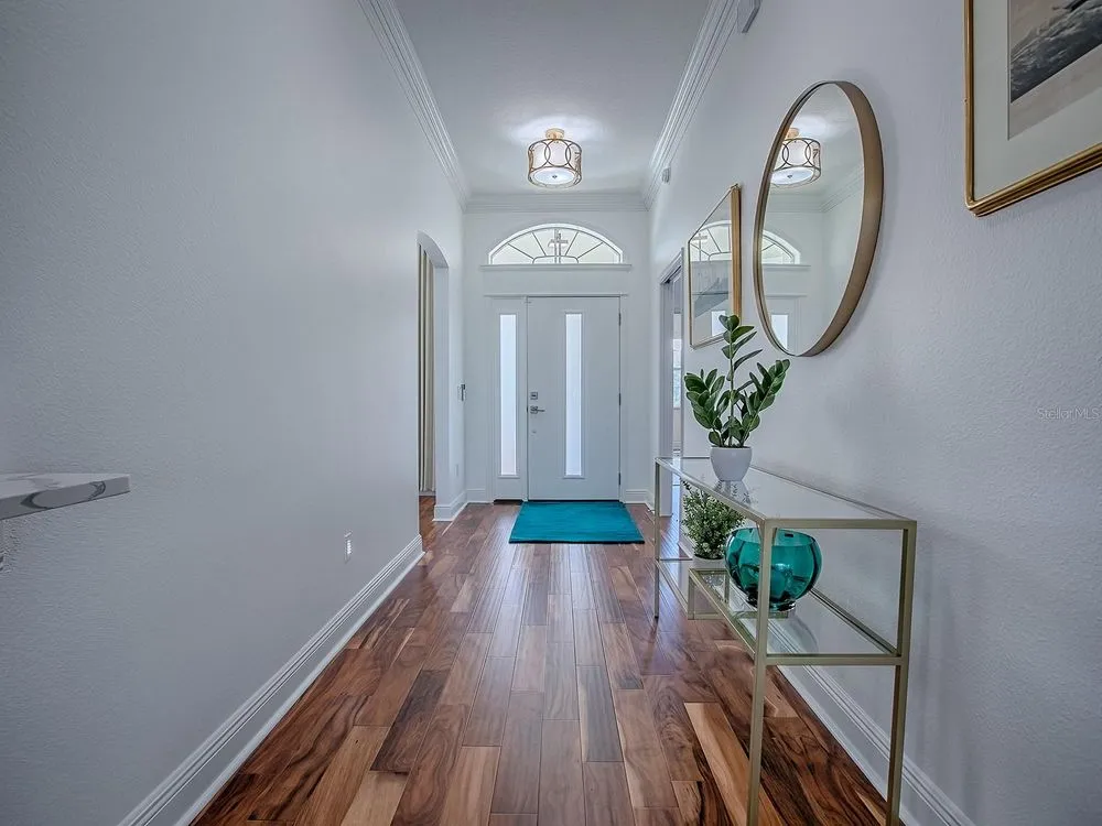 This home has been fully and very tastefully renovated . Expanded Williamsburg Premier, NO BOND, NEW HVAC high efficiency Carrier system, ALARM SYSTEM including cameras, water detectors, fire detectors, motion detectors, carbon monoxide detectors and glass breaking detectors! New roof with lightening rods General 26 kw generator, Rinnia 160,000 BTU Energy Star Tankless Hot Water Heater, attic solar fans with 13 inches of attic insulation with 10 inches above the garage. The attic has storage with LVP flooring. The Home! Incredible! Nothing needed! No Carpet! Hurricane resistant front door, 10 ft. Ceilings, crown molding, whole house surge protector and expanded 500 sq. ft. Lanai Truly luxurious. See attachments for pool renderings and much more information
