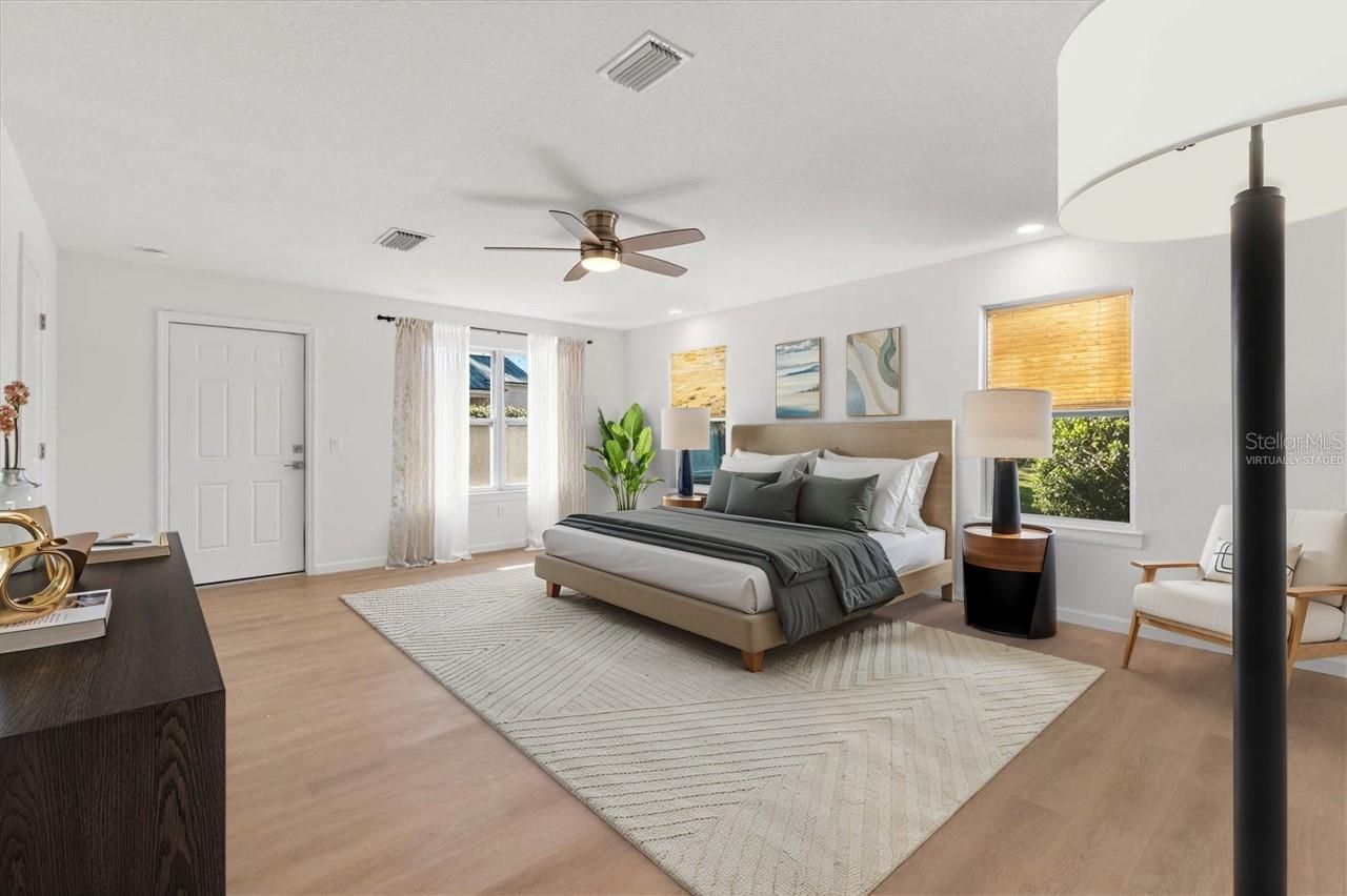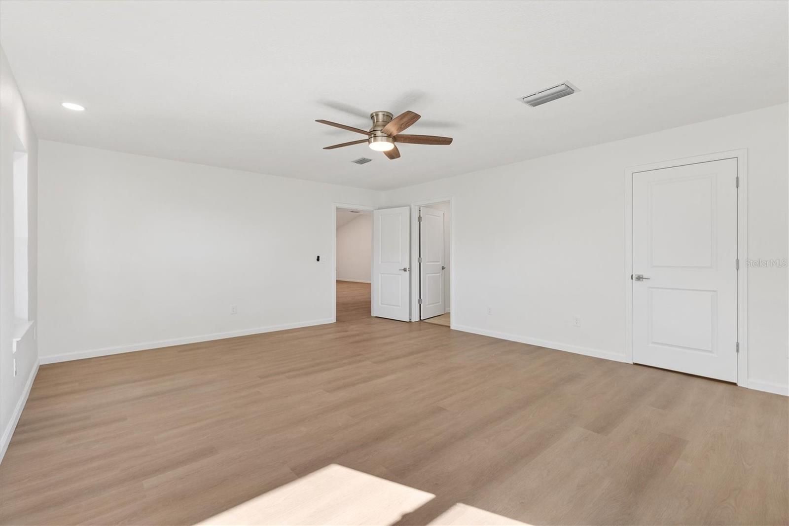 - Cathedral Ceiling(s), Ceiling Fan(s), Open Floorplan, Main Level Primary, Solid Surface Counters, Stone Counters, Walk-In Closet(s)