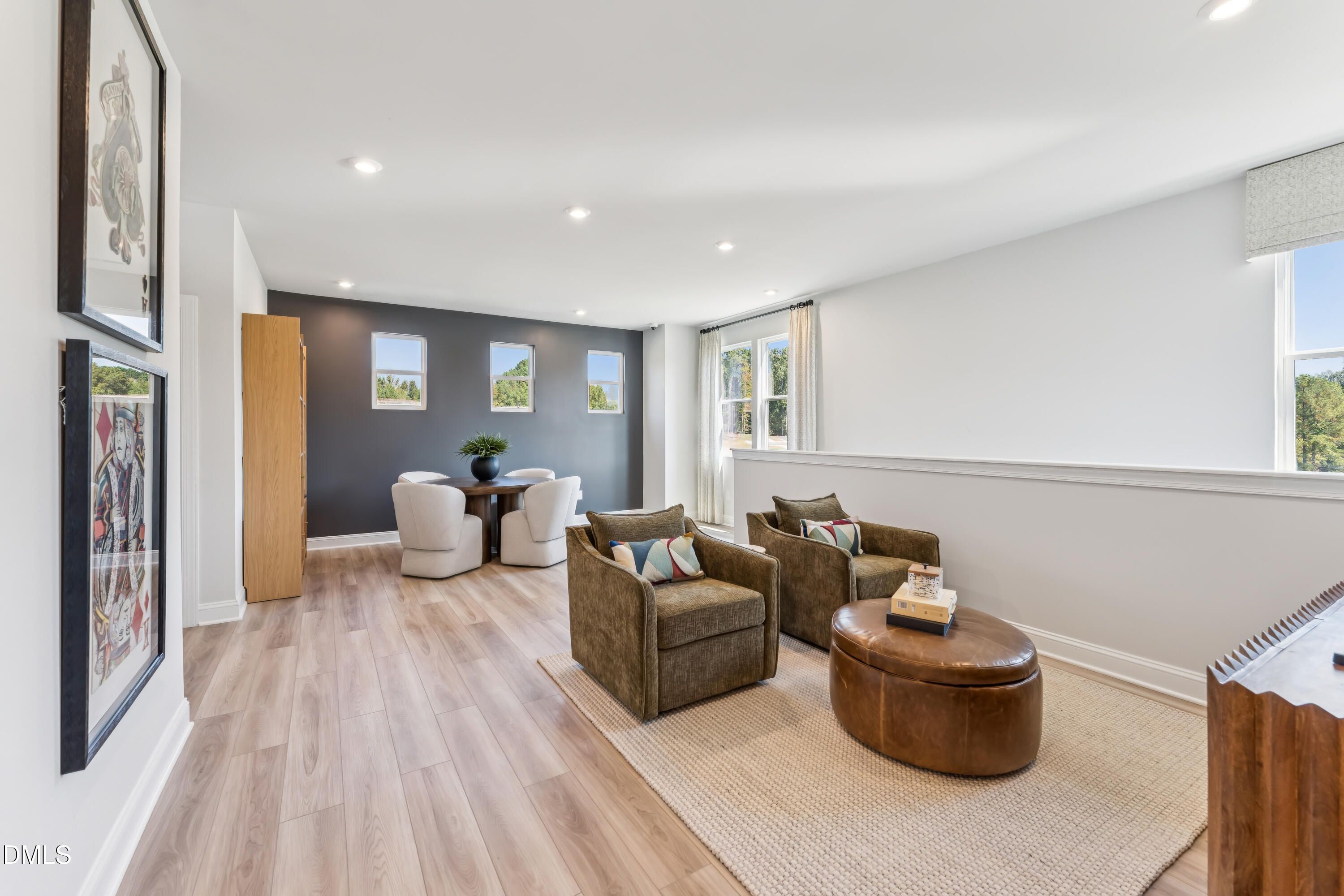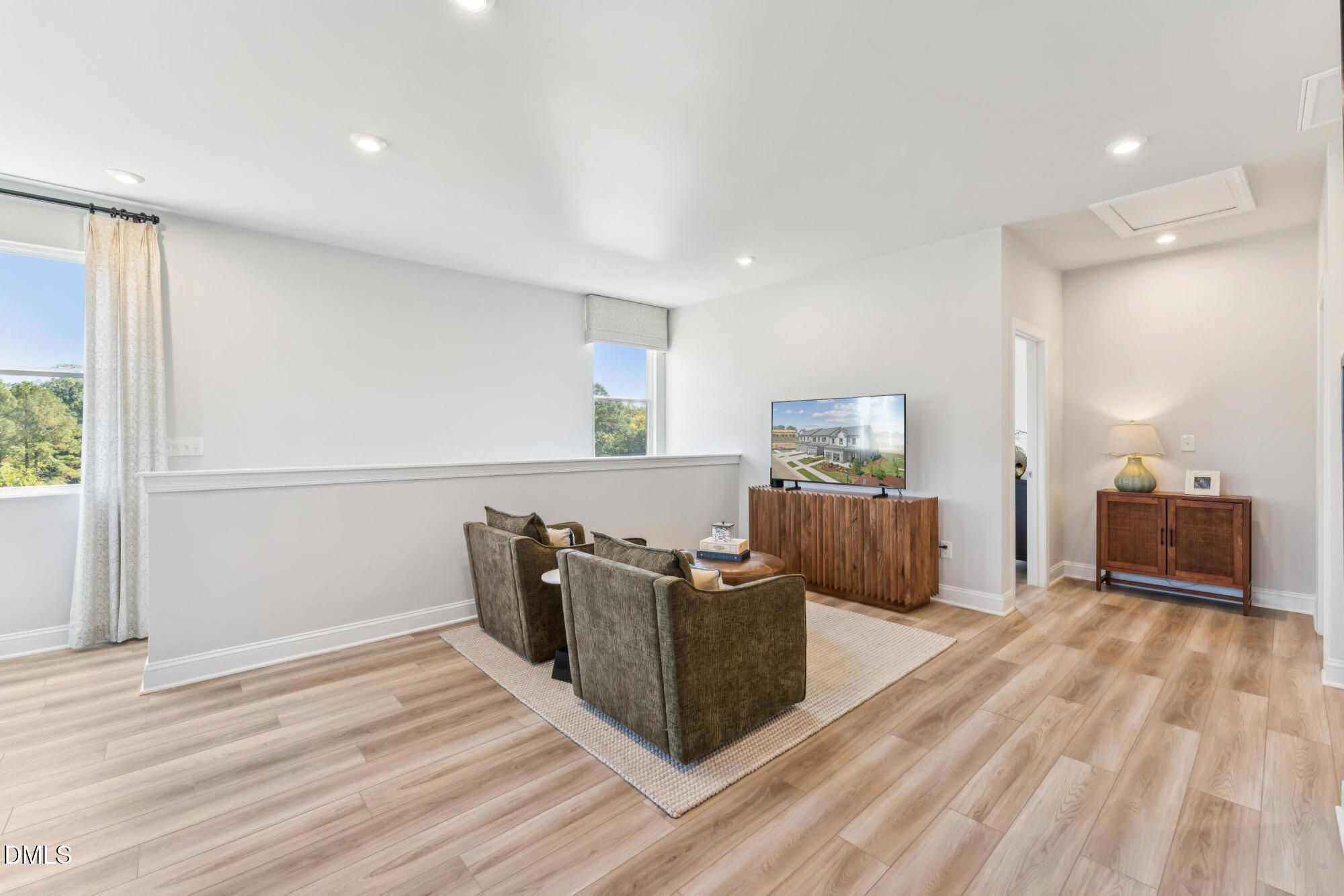 New Stanley Martin Home in Brookside, Apex's only new construction 55+ community. Welcome to The Eva, a beautifully designed active adult end-unit townhome offering approximately 2,221 square feet, 3 bedrooms, 2.5 baths, and the low maintenance lifestyle so many buyers are looking for. This is the perfect opportunity to upgrade your lifestyle and simplify your day to day living with no lawn work, no exterior maintenance, and the freedom to truly enjoy your home and surroundings. Inside, this thoughtfully designed floorplan features a main level primary suite, an open concept layout, a chef-inspired kitchen with a large island, spacious family and dining areas, and a rear covered porch ideal for quiet mornings or relaxing evenings. Upstairs, you'll find two additional bedrooms and a versatile loft that works perfectly for guests, hobbies, a home office, or extra living space. A two car garage adds even more convenience. Brookside offers peaceful, quiet living in a beautiful Apex setting. The community neighbors a horse farm and features a large green space with a covered pergola, fire pits, and seating areas that create an inviting place to gather with neighbors or unwind outdoors. It is a rare combination of scenic surroundings, easy living, and a true sense of community. The location is just as impressive. Brookside is minutes from Beaver Creek shopping, dining, and entertainment, only 6 minutes from charming Downtown Apex, and close to greenways, parks, and pickleball. With convenient access to Hwy 64, 540, and RDU Airport, you can enjoy a peaceful retreat without giving up connectivity. If you have been searching for low maintenance 55+ living in Apex, Brookside stands in a category of its own. Schedule your private tour today. Photos are for representative purposes only and are not of the actual home.
