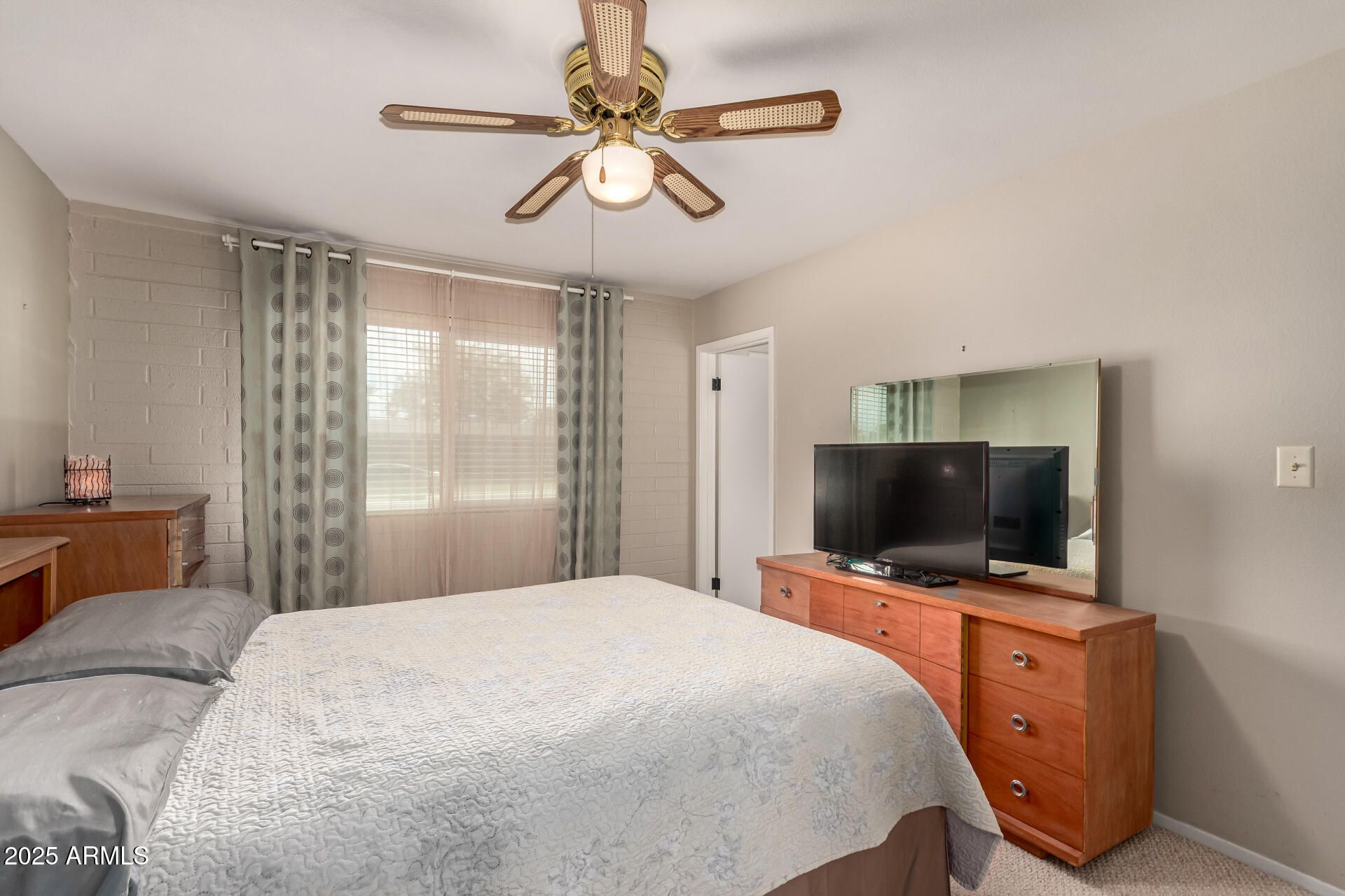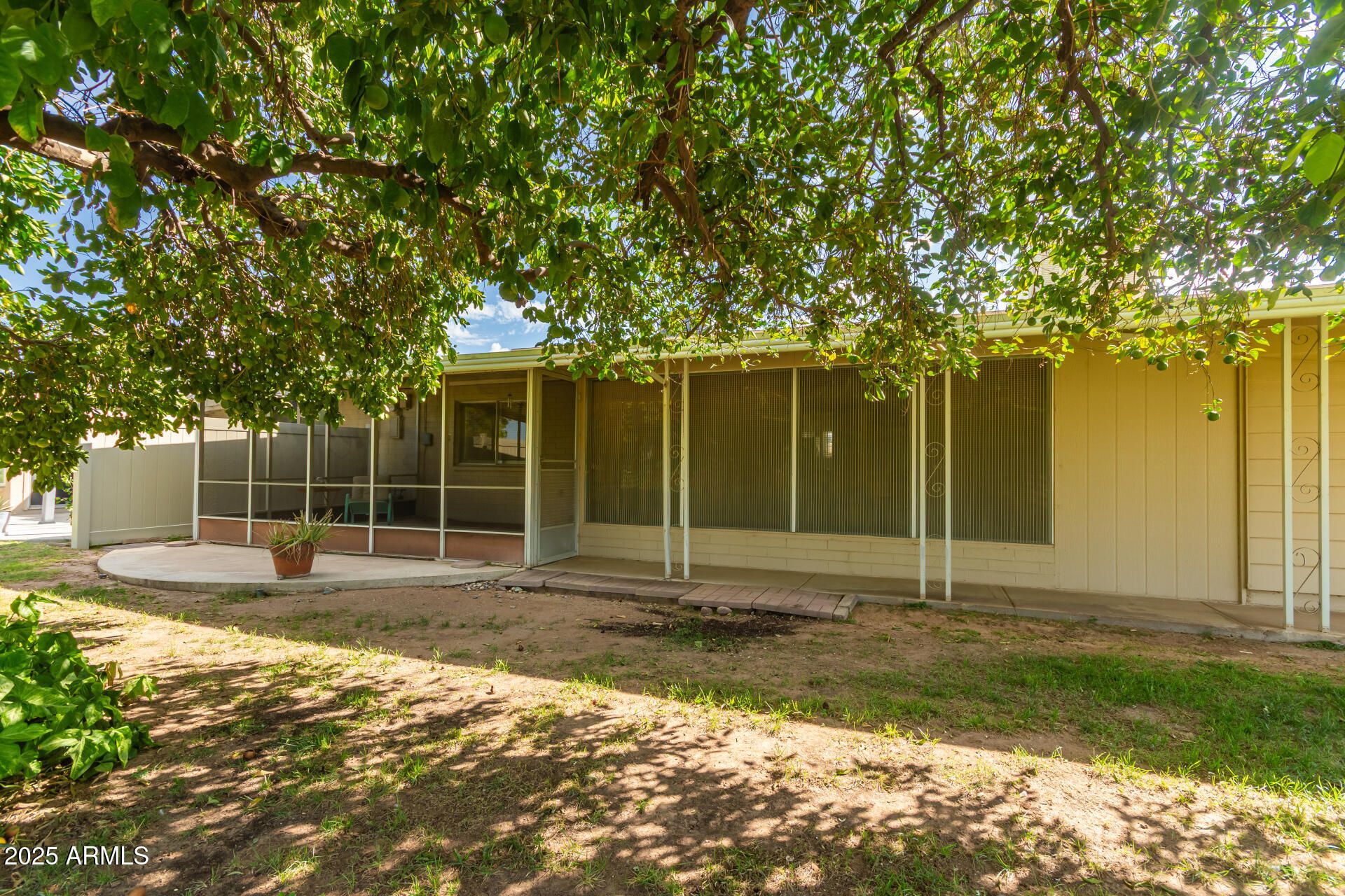 Welcome to lovely Sun City living on a Golf Course! This well-maintained 2-bedroom, 2 bath home, offers 1,266 sq ft of comfortable living space in a quiet, age-55+ community. Freshly painted inside you'll find a bright, open layout that's easy to adapt to your style. The kitchen flows into the living areas, making entertaining a breeze. The primary suite includes its own bath for privacy & convenience. Step into the AZ Room & side covered patio for great views. Outside, enjoy the fruit trees & relaxing community surroundings. You'll appreciate the low-maintenance lifestyle paired with all the amenities Sun City has to offer - recreation centers, golf courses, social clubs & worship. Just 10 minutes away from Cardinal Stadium State Farm Stadium, great restaurants and resorts. Near all the best entertainment and shopping, and much more. You must see to truly enjoy the home & community.
