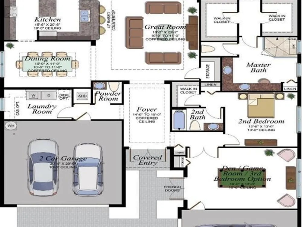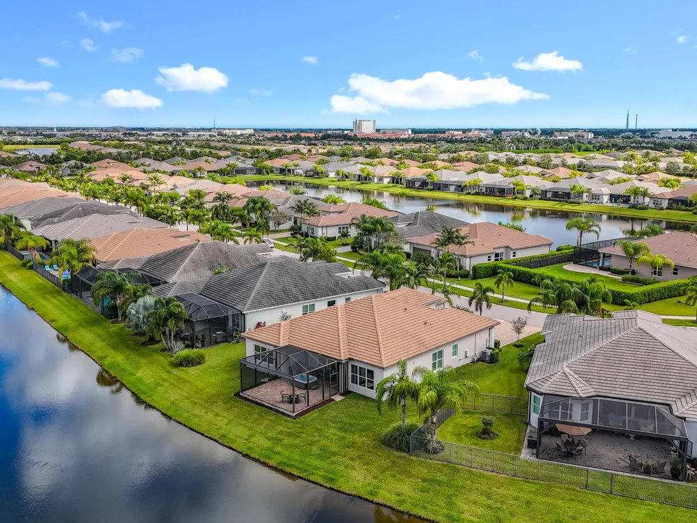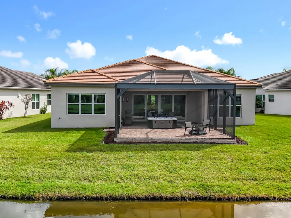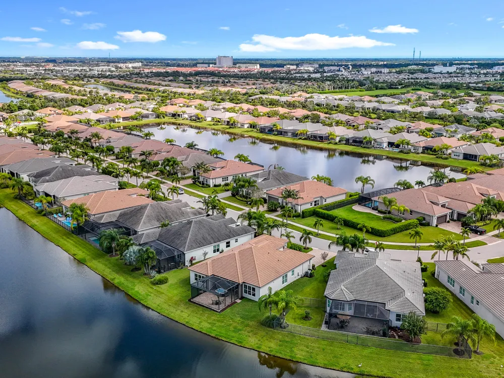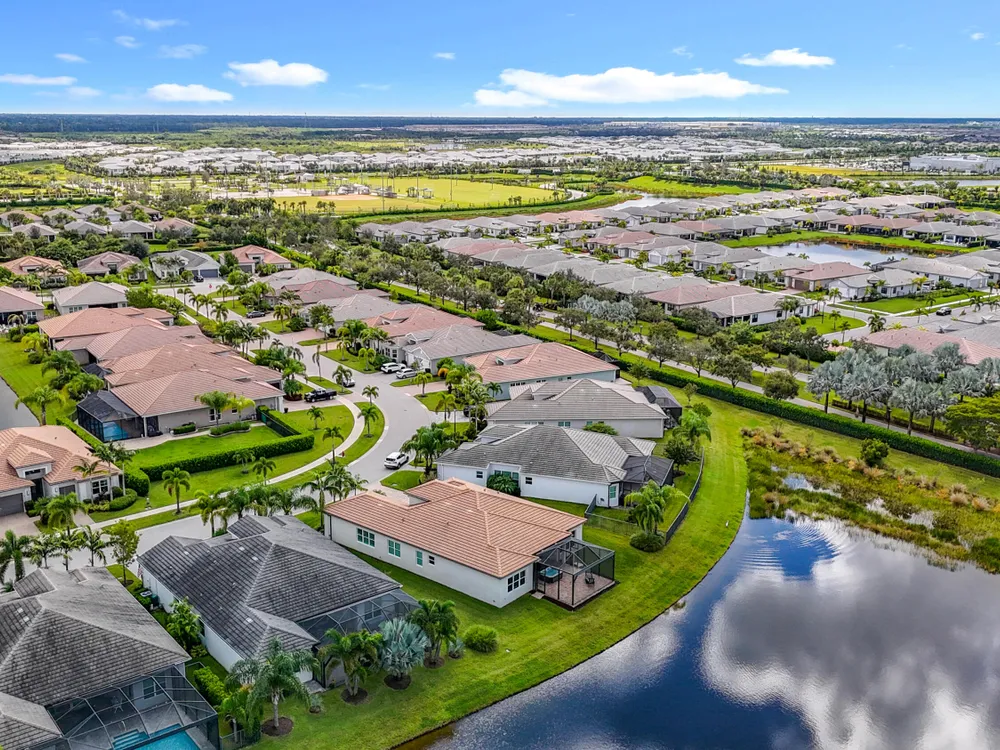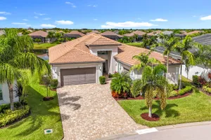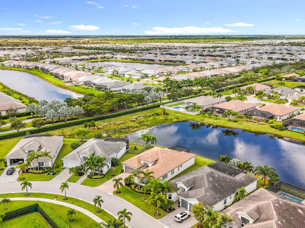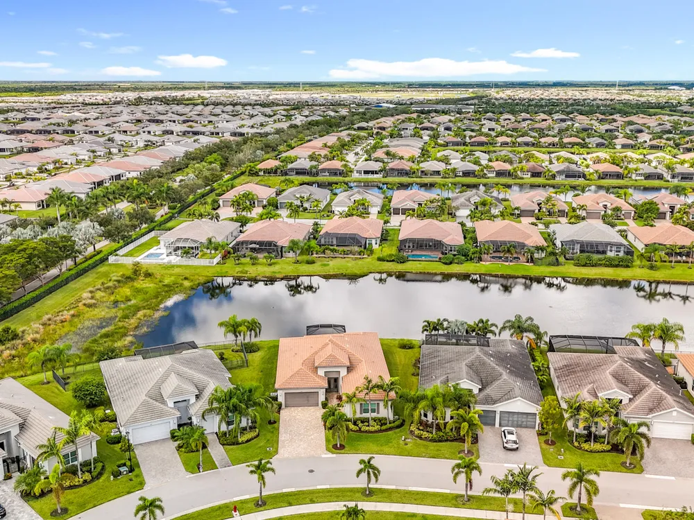 Lake Views Popular Caroline Model 2580 SF open floor plan features 2 bedrooms 2-1/2 bath den/game room/3rd bedroom 3 car garage many upgrades include cabinets quartz counter tops polished tile custom window treatments seamless glass shower enclosure in Master B Cat 5 window/doors monitored security system tile roof 8 ft garage doors extended paver driveway outdoor water oasis includes extended screen lanai kitchen & grill rough-in Valencia Cay located in Riverland a vibrant retirement community known for top tier amenities including resort pools, restaurants, River fresh Cafe, fitness center pickleball Arts & Culture Ctr City Parks The Town Center Publix grocery store recently opened The 35-acre ctr when complete will feature shops & rest