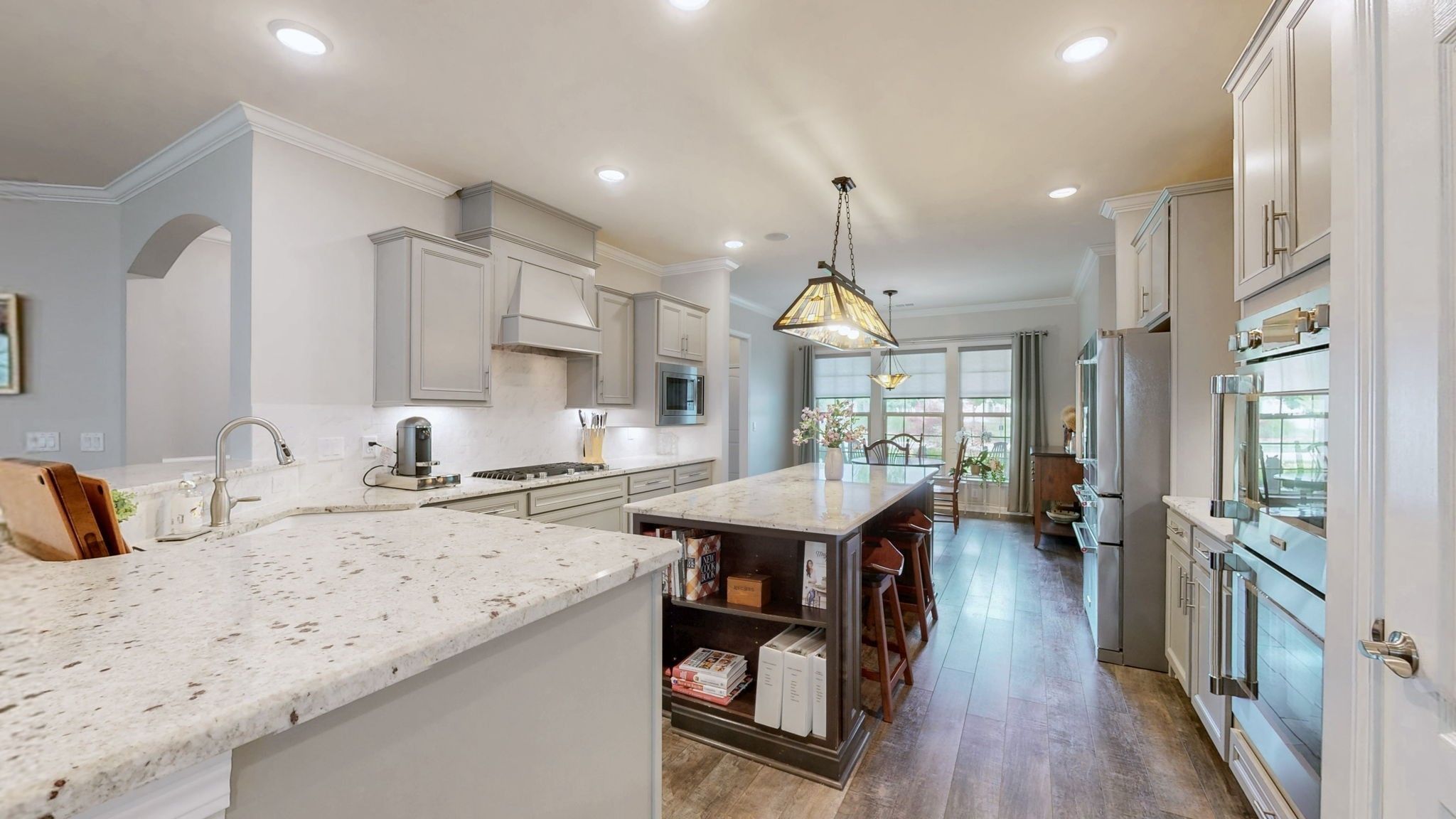 - Double Oven, Built-In Gas Range, Dishwasher, Disposal, Microwave, Refrigerator
