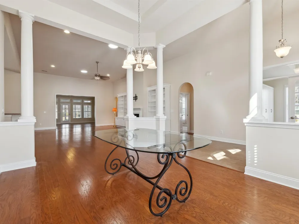 Welcome to 1106 Dowling St located in the Berkshire Forest community of Carolina Forest. Your new home boasts potentially 5 bedrooms, 4.5 bathrooms, over 3400 heated square feet and is situated on a 0.25 acre pond view lot. As you enter through the foyer, the 12 foot tall, expansive living area with built ins and fireplace is filled with an abundance of natural light. The formal dining room is the perfect place to share those special meals prepared from the very spacious and storage a plenty filled kitchen with double ovens. 2 primary suites are situated on the main floor as well as another secondary bedroom and an office/flex space that could be the 4th bedroom downstairs. The heated and cooled sun room leads you to the three season screened patio that starts your outdoor oasis. Upstairs above the garage is your bonus room with attached bathroom that could be your 5th bedroom or media/flex space. The 2 car oversized garage has the optional extension to fit even the extended vehicles. Amenities in this community includes 2 large community swimming pools, fitness center, lighted tennis courts and basketball courts, Community meeting rooms with kitchens, large screened porch with tables and seating overlooking the pool, splash pad for the kids, children’s playground, and a large fresh water lake. Do not let this opportunity pass you by, make your appointment to view this spacious magnificent home today.