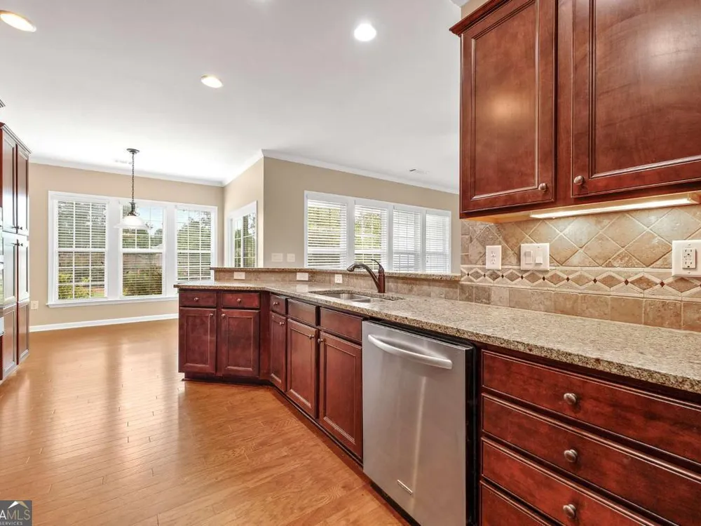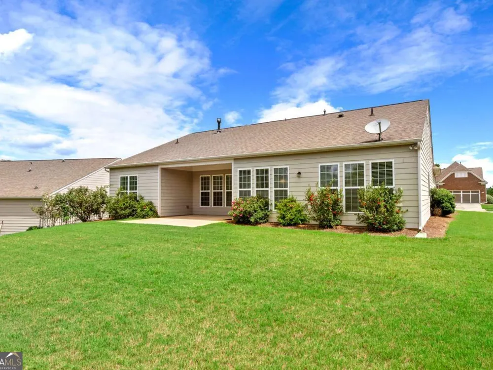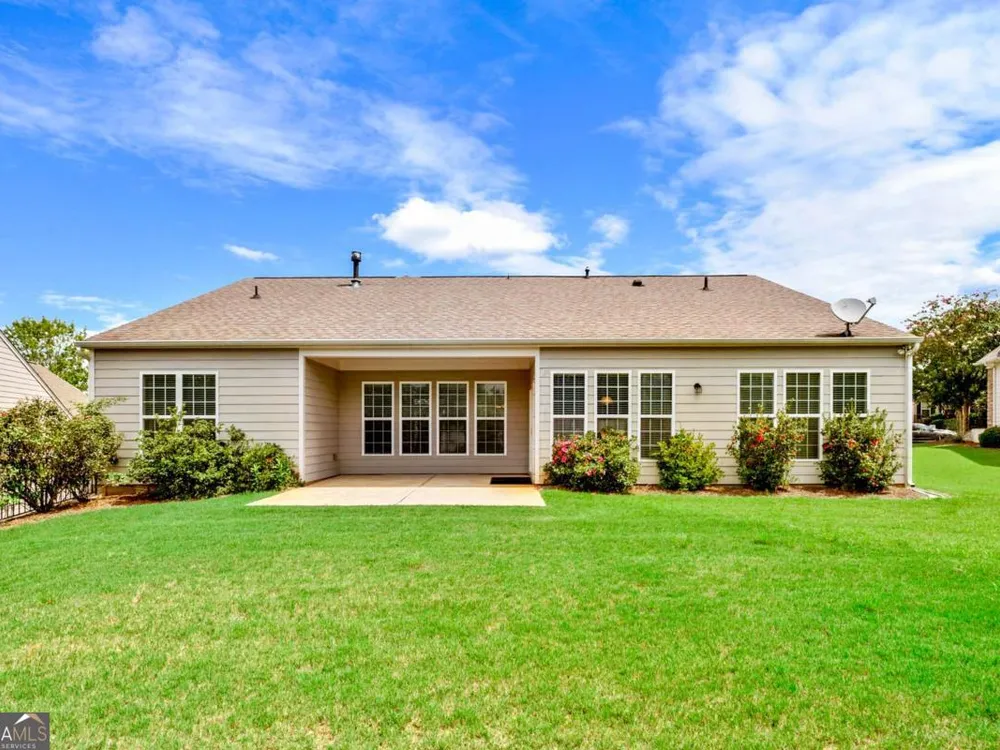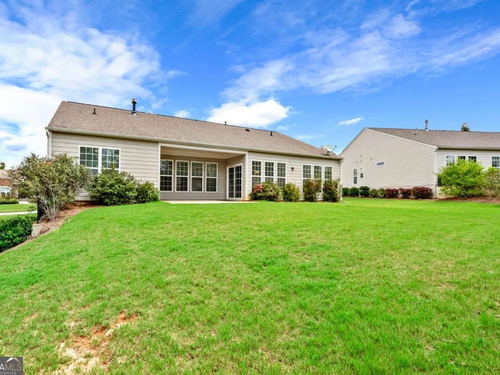 Welcome to your new home in Sun City Peachtree - a fun 55+ neighborhood where life feels like a vacation! This one-level home has an open floor plan that's perfect for relaxing or entertaining friends. The big kitchen has stainless steel appliances, granite counters, and lots of cabinets. Sliding doors lead to a covered back porch and a sunny patio - a great spot to enjoy morning coffee or host a cookout. The primary bedroom has a pretty tray ceiling, a ceiling fan, and a huge walk-in closet. The private bathroom has two sinks, a soaking tub, a separate shower, and a private toilet area. Your guests will love the cozy second bedroom with a full bathroom right next to it. There's also a flex room near the front door that could be a third bedroom, office, or hobby space - you decide! Big windows fill the home with natural light. Living here means you'll have access to amazing amenities: fitness center, indoor & outdoor pools, tennis, pickleball, and bocce ball courts, softball fields, walking paths, dog park, and clubhouse with library, movie theater, pool tables, over 80 clubs you can join covering pretty much every interest, and more! The HOA takes care of your lawn and trash, plus keeps all the shared spaces - like pools, courts, and clubhouse - in great shape. Golf carts are welcome, and there's even a golf club you can join. The owner priced this home so you can make it your own. It's ready for you to add your personal touches and enjoy everything this active, friendly community offers! No blind offers or letters of intent.