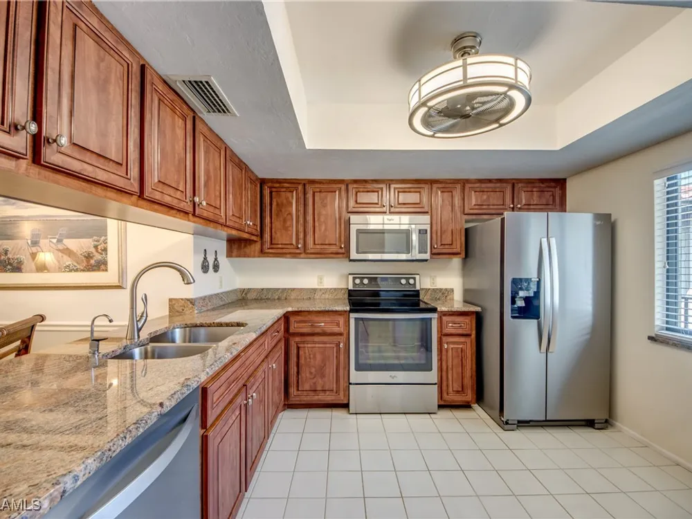 Don't miss your rare opportunity to grab this nice, spacious, 3rd floor condominium, which features an open floor plan, beautiful kitchen cabinets and more. The building is situated on a tranquil landscaped setting with lake view. There is also an assigned covered parking space for the owner as well as additional guest parking. It is located in the inviting, tropical, and highly desirable Cinnamon Cove resort community located in SW Fort Myers in proximity to Fort Myers Beach and Sanibel for convenient access to those wonderful beaches. Plus, Cinnamon Cove features a beautiful clubhouse with an expansive pool, hot tub, pickleball, tennis, shuffleboard, and multiple satellite pools conveniently situated throughout the community. There are many groups and activities throughout the year for your enjoyment.