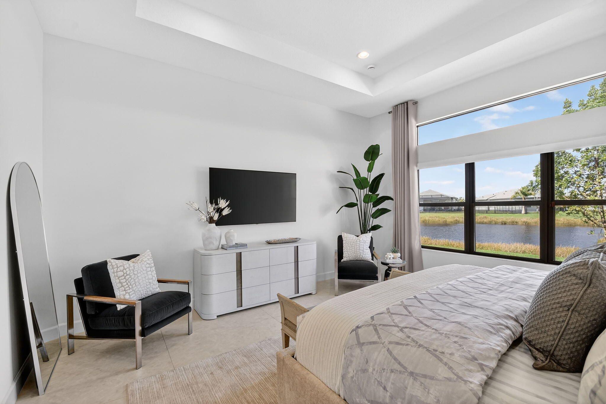 This exquisite lakefront home with a prime cul-de-sac location, offering gorgeous sunsets & privacy galore. This bright, move-in-ready 2025 Jade in Valencia Grand features an open, spacious floor plan w/3 BR plus a den/office, 3.5 BA, and an expansive great room ideal for entertaining. The gourmet kitchen w/quartz countertops, tiled backsplash, upg cabinets, gas cooking & double oven. The primary suite boasts a coffered ceiling, two large outfitted walk-in closets, & a spa-like primary BA featuring a soaking tub & lg shower. Add'l features include designer 24x48 porcelain tile flooring, 11-foot ceilings, a utility room with sink & cabinetry, remote window treatments, a full-house Generac generator, epoxy-finished 3-car garage--and so much more. Every element has been meticulously selected to make this residence truly one of a kind. Valencia Grand embraces a resort-style lifestyle. Residents enjoy access to a sophisticated clubhouse featuring a full-service restaurant and bar, multiple pools, indoor and outdoor pickleball and tennis courts, bocce, a state-of-the-art fitness center, spa, salon, yoga garden, entertainment venues with live shows and events, and much more. This exceptional property is ready for immediate occupancy, allowing you to begin enjoying the finest Florida living today.