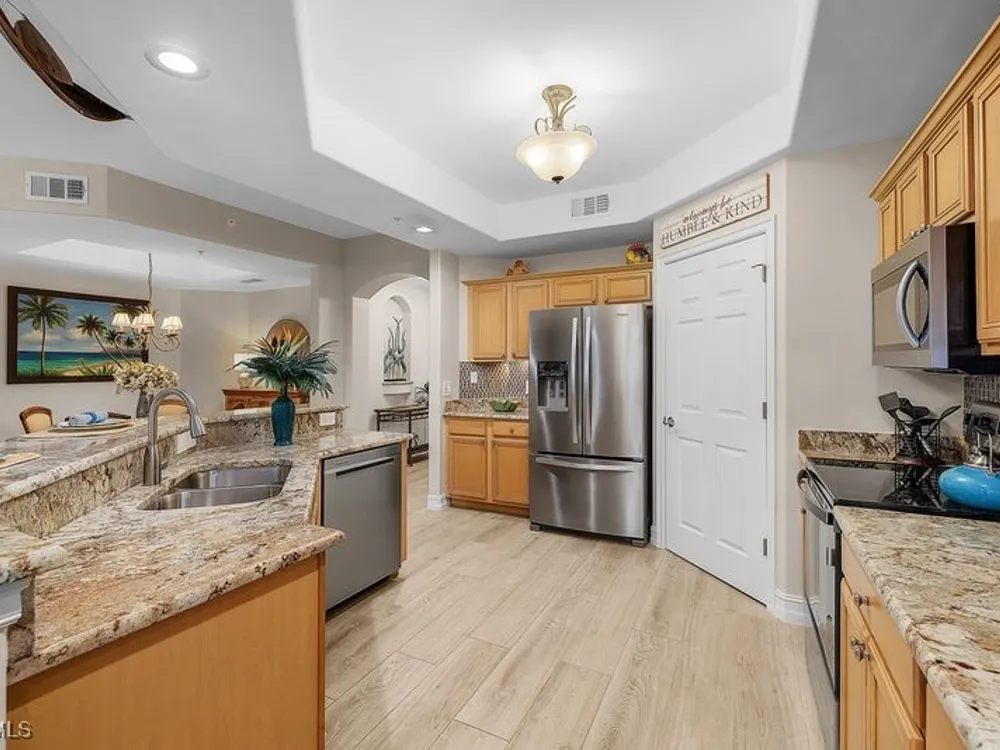 Prestigious Gulf Harbour Yacht & Country Club. Quality Turn-key Furnished. Country Club is in process of renovation, see pictures and attachment. Updated 1st floor Mariposa Viceroy model with 3 Bedrooms and 2 Baths. Great Room floor plan with Open Kitchen that features large Center Island with Breakfast Bar, Wood Cabinets, Granite Counters, Stainless Appliances, Glass Backsplash, Pantry, Tray Ceiling and Dinette. Great Room opens to Wrap-around Lanai and is adjacent to Formal Dining also with Tray Ceiling. Entire Condo has Ceramic 9" x 48" Plank Tile Flooring incl. Lanai. Master Bedroom Walks Out to Lanai and Master Bath features Comfort Height Wood Cabinetry, Granite Counters, Frameless Shower Enclosure, Ceramic Surround, Upgraded Sinks and Mirror, Comfort Height Toilet and Big Walk-in Closet with Built-in Shelving. Guest Bath has Comfort Height Cabinetry and Toilet, Granite Counters, Custom Sink and Mirror. Entry Foyer Tray Ceiling with Niche, Arched Doorways, Internet Controlled Thermostat and Security System, Whole House Culligan Water Softener, Appliances and Washer & Dryer 2021, Water Heater 2008, AC 2014. Some amenities herein available but not offered, If desired Country Club Club membership purchase required for club amenities, square footage approximate or from Lee County. Country Club Memberships available for purchase but not mandatory.
