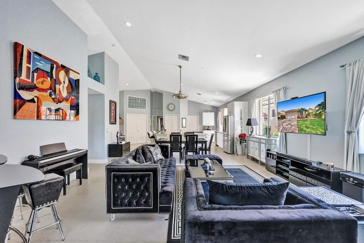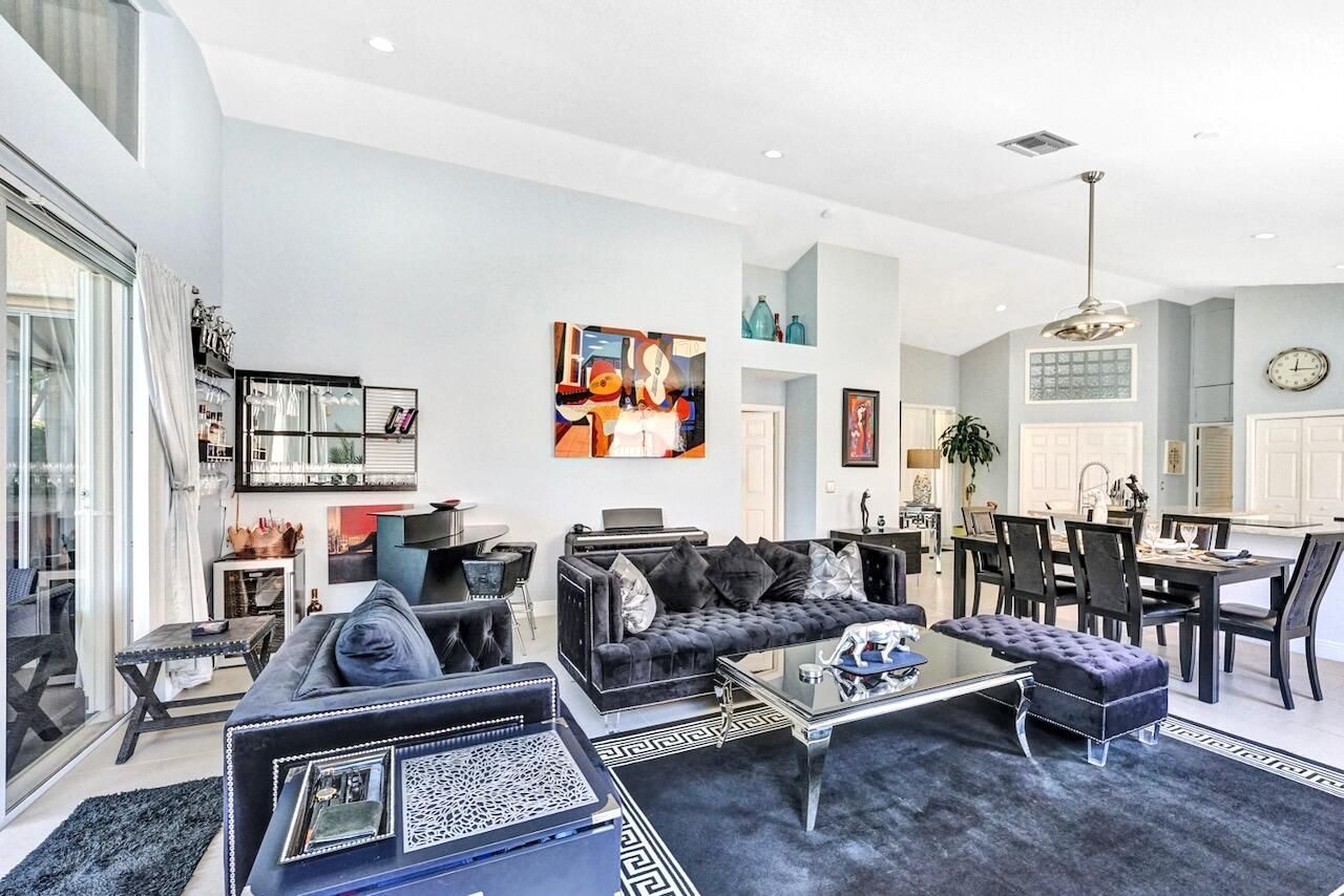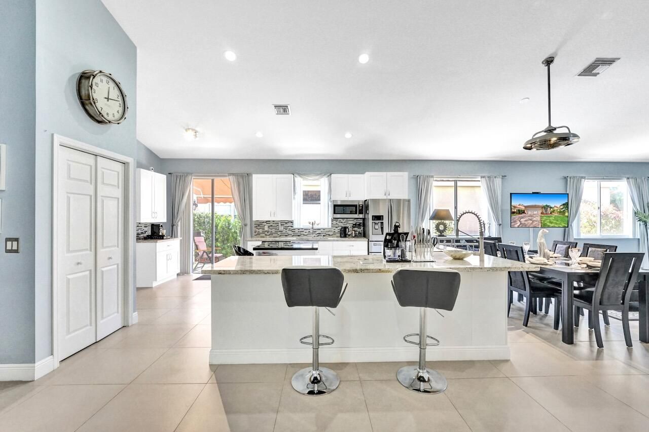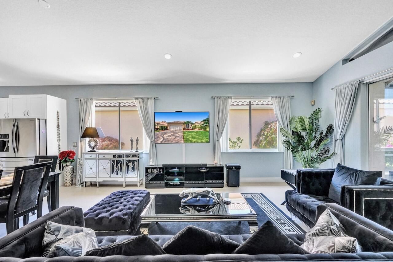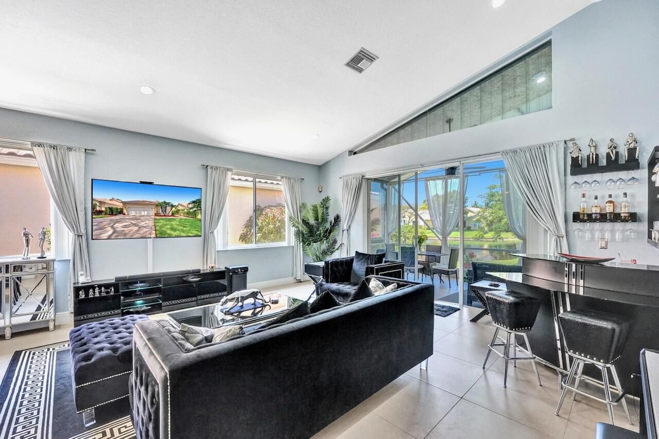 This stunning 3-bedroom, 2-bath home in Indian Spring is truly a showstopper! Completely renovated from top to bottom, this bright and spacious residence features a beautiful open floor plan with 24'' tile flooring, elegant lighting, and thoughtful upgrades throughout. Enjoy serene lake and garden views from your private outdoor living spaces. The spacious kitchen showcases white wood cabinetry, newer stainless steel appliances, granite countertops, and a movable island with ample storage. Both bathrooms have been fully updated (primary bathroom has been updated since these photos), and the enclosed third bedroom offers added privacy and extra storage, with additional hallway storage as well. New carpet has been installed in all bedrooms, and window treatments adorn every room. Additional upgrades include refinished garage floors, pull-down attic stairs, new light plates, a whole house reverse osmosis system and a freshly painted interior & exterior. Major systems have been updated with an A/C installed in 2016, water heater in 2019, garage door opener in 2017, and full accordion shutters added in 2018. The outdoor living space is exceptional, featuring one of the few solid-roof patios in Indian Spring with new 24" tile flooring, lighting, and screens. The garden area includes travertine pavers, astro turf, a water fountain, retractable awning, pergola-style gate and newer fencing creating a private, resort-like retreat. Indian Spring is a non-mandatory membership community, with club membership options available. This gorgeous home is a rare find and an absolute must-see! Property is currently tenant occupied for $3000 per month until May 31, 2026. Listing contains photos prior to tenant taking occupancy- since these photos, the interior and exterior paint has been updated and the primary bathroom has been completely remodeled. INFORMATION HEREIN NOT GUARANTEED AND SUBJECT TO ERRORS & OMISSIONS. ALL MEASUREMENTS APPROXIMATE.