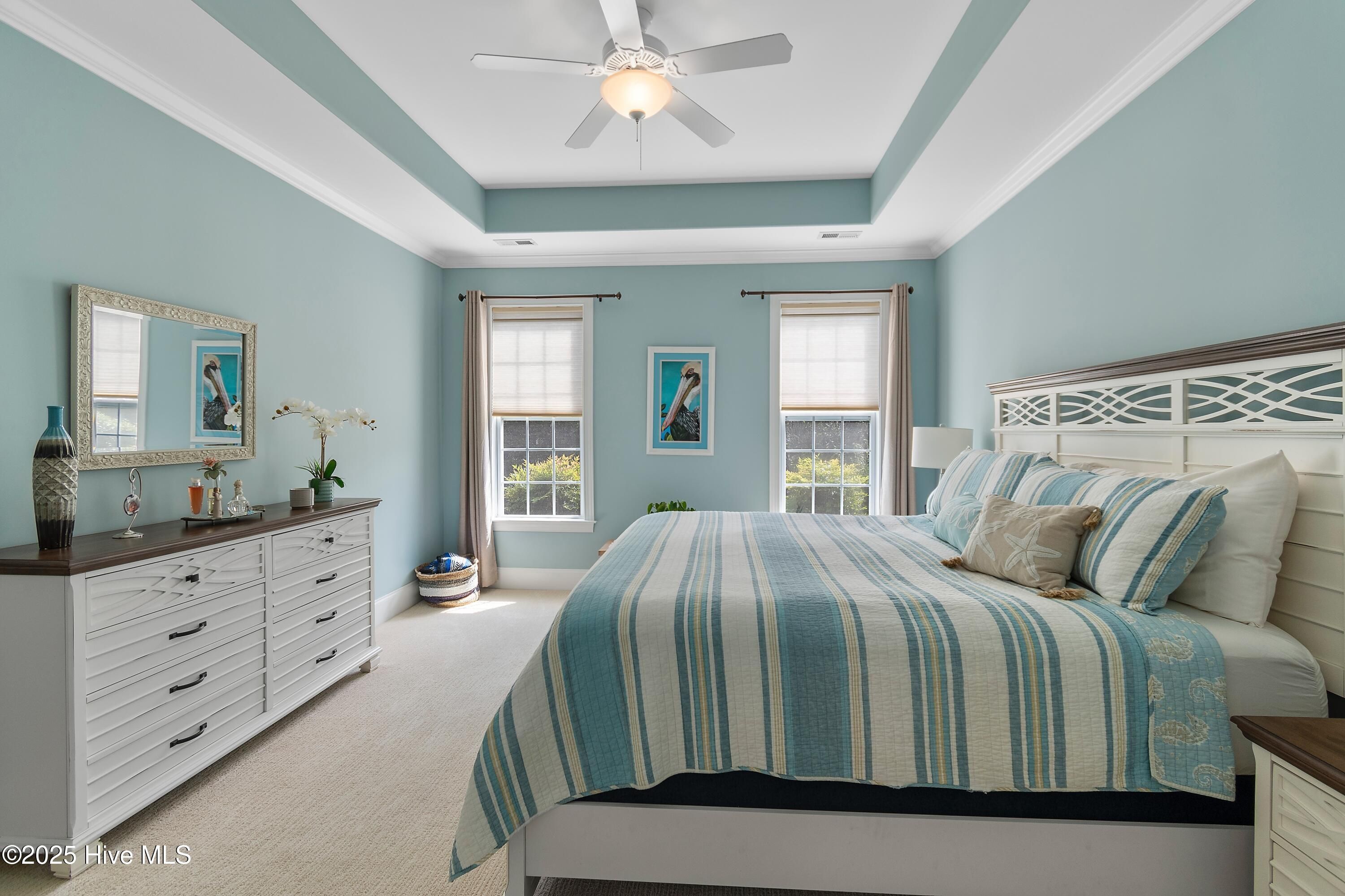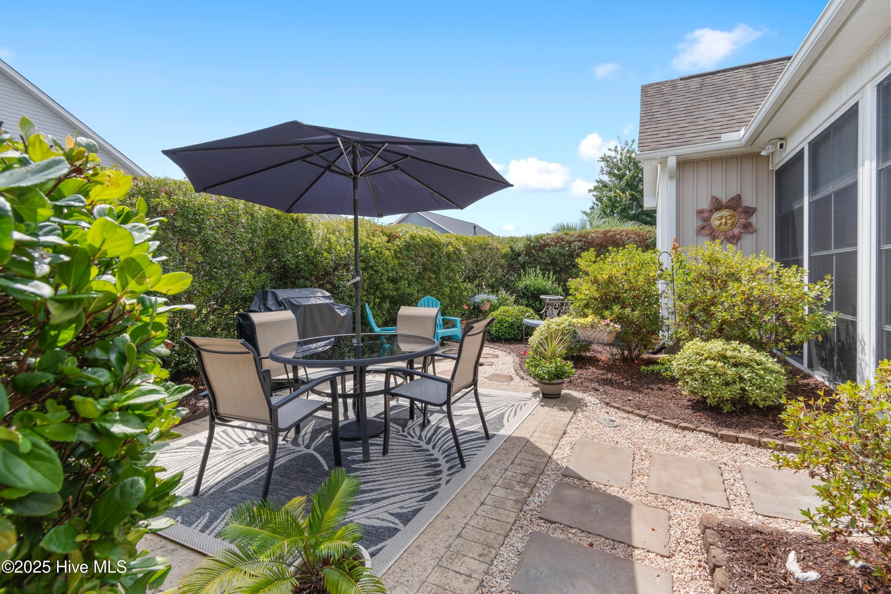 If you have been waiting for well cared for, one-story home with a terrific floor plan in the active and conveniently located community of Sunset Ridge, then you are in luck! The spacious kitchen with 42 inch cabinetry, gas stove, large island and pantry offers plenty of storage and workspace. This arrangement of space is ideal for entertaining, as it is open to both the dining and living areas. Soaring 11 foot ceilings add to the airy feel of this home as well. Engineered hardwood flooring graces the living area of this home, 18 inch ceramic tile in the kitchen, and there is upgraded carpet in the bedrooms. The great room boasts a fireplace and surround sound speaker system. The primary suite is your private retreat at the end of the day with a coffered ceiling, walk-in shower, garden tub, and a significant closet. Perhaps the most amazing feature of this home is the massive, 12' x 27' three-season room with ceramic tile flooring, multiple wall outlets, cable and EZ Breeze windows. Imagine yourself enjoying your morning coffee or an adult beverage here while admiring your beautifully landscaped yard and patio. Minutes from beaches and surrounded by golf, the location of this home could not be any more convenient. Extremely near grocery stores, restaurants, healthcare, shopping and multiple types of recreational activities, it is impossible to be bored here. Sunset Ridge residents enjoy an active and social lifestyle with many organized groups and activities. With lawn maintenance and groundskeeping provided as part of your homeowners association, this home makes for an easy and simple lifestyle, freeing up your time to enjoy your retreat on the coast.