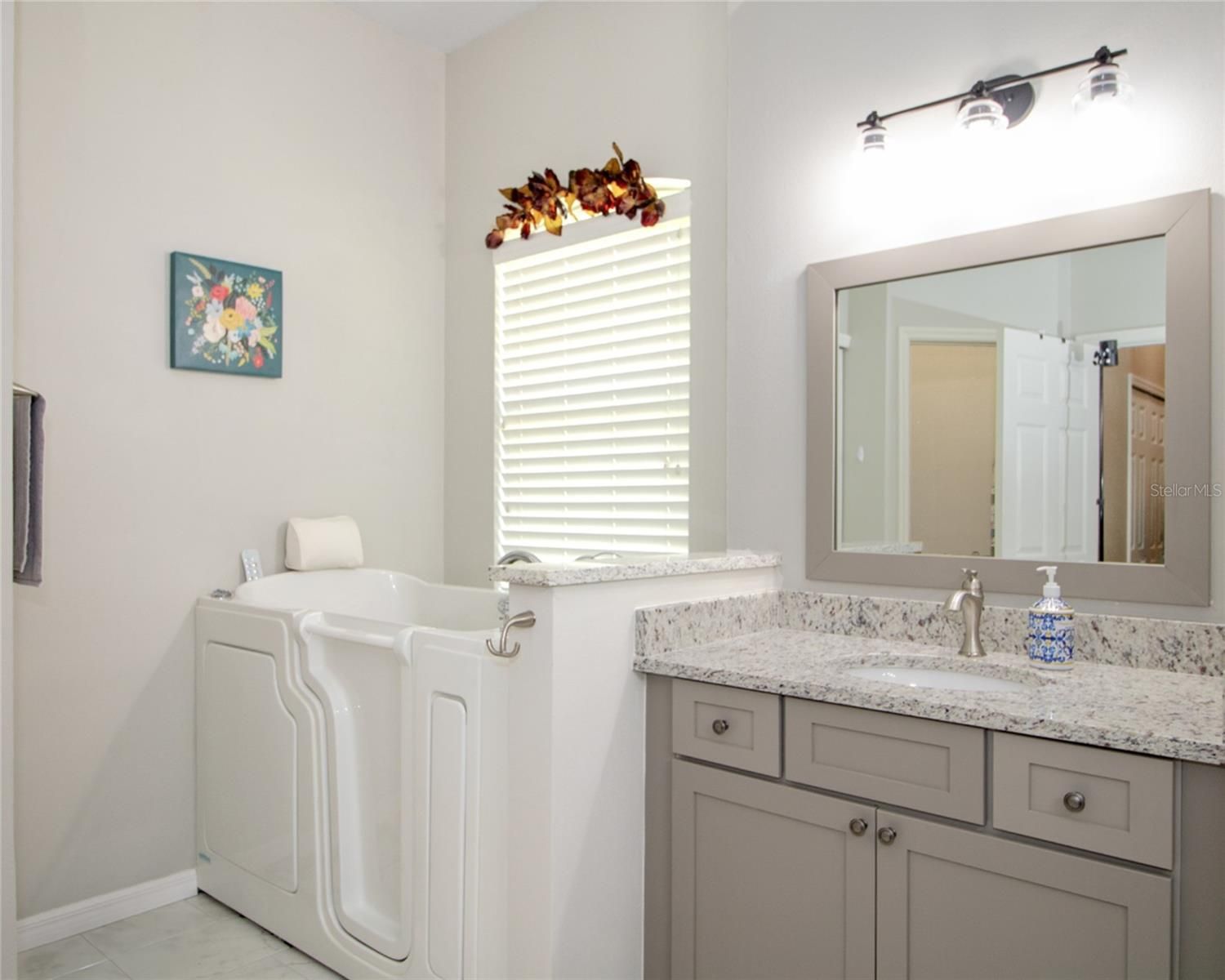 - Accessibility Features, Built-in Features, Ceiling Fan(s), Crown Molding, High Ceilings, Kitchen/Family Room Combo, L-Shaped Dining Room, Open Floorplan, Main Level Primary, Split Bedrooms, Stone Counters, Walk-In Closet(s)