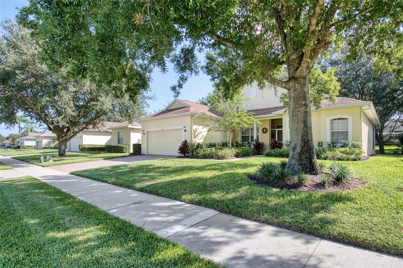 Gated golf community with 769 single family homes built by Levitt & Son's between 2000-20005. Collier floor plan, very open, 1881 SF, Gorgeous view of mature trees in backyard. Carpet only in 2 bedrooms. Approach this home past front paver sidewalk and driveway. The storm windows in lanai keep it cleaner and it is carpeted. There is 1 set of patio siders off the living room to stormed in lanai. Kitchen has 42” wood cabinets, pull-outs, newer appliances, single sink, granite counter-tops, stove, closet pantry, and eating space in the kitchen. Den has a jack and jill bathroom in between to rooms. Huge Master bedroom has 2 lg walk-in closets. The master bath has lg separate shower, private commode, walk-in tub and double vanities. 2rd bedroom can be for those lovely grandchildren when they visit or your friends from up north that are trying to escape from the cold. 2 car garage has extra storage, tankless water heart, gas hot water heater. BONUS: a Generac generator outside house in case that hurricane or power outage hits you. Other extras include: new landscaping, 10’ ceilings. Inside washer, dryer & sink, 2 new comfort height toilets, garage floor has been painted, exterior of home has been recently painted, storm windows in lanai, all under roof, all window treatments stay and fans and fixtures. Backyard view is very serene and peaceful, Resort style 28,000 SF clubhouse has 8 clay lit tennis courts, 7 new pickleball courts, shuffleboard, bocce, heated indoor-outdoor pools/sauna, gazebo, ballroom/stage & dance floor, kitchen for catering, billiard room, office, 2 card rooms, arts & crafts room/kiln, lobby, 19th Hole/bar & lg screen TV, library & too many clubs & activities to mention. Full time HOA representative and activities director on property. Location is pristine, 4 mi. off turnpike, 1/2 hr. to theme parks or Orlando airport, 1 hr. to either coast, many lakes, NTC, bike trails & hospital. Many lakes in Clermont for fishing & it has become a main attraction for Triathlons because of its hills, lakes & perfect weather. Best kept secret in Florida, safe, friendly (dogs too), golf cart friendly, and affordable. Call today for a showing.