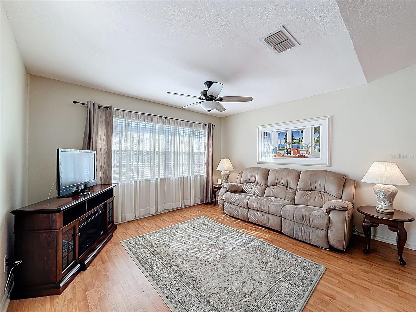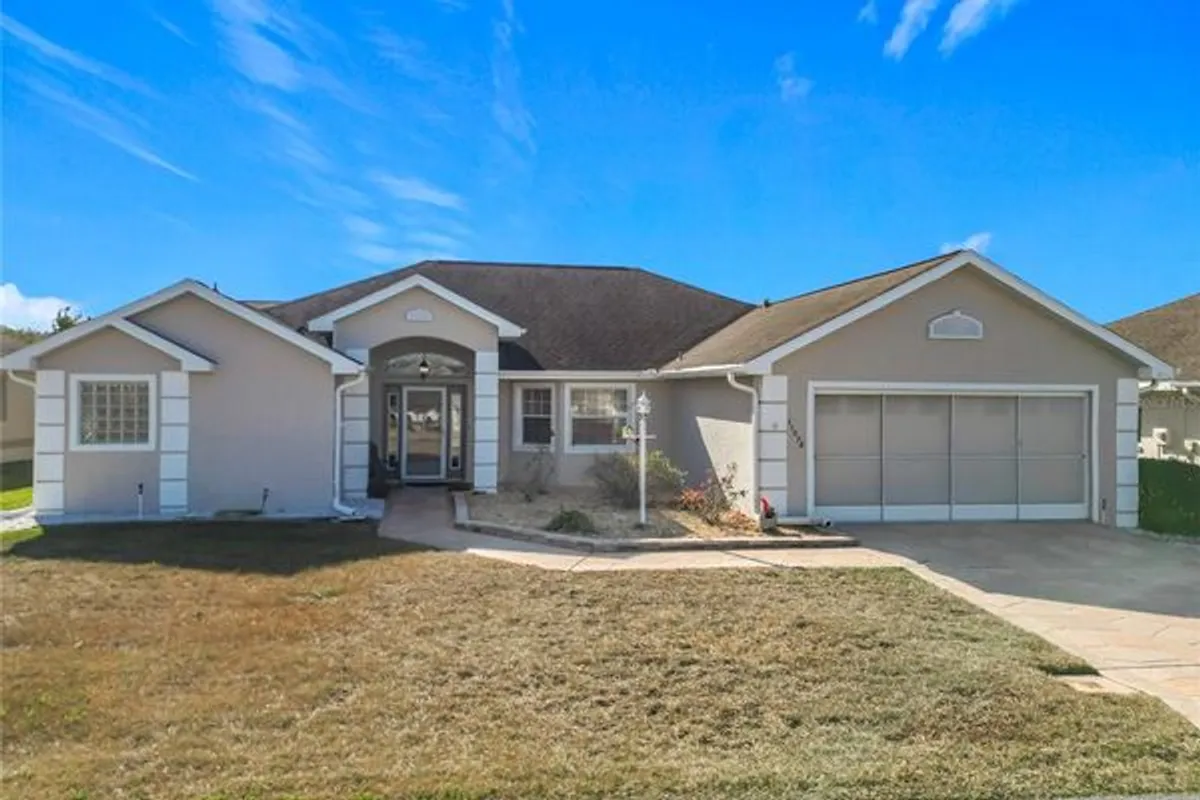Discover this immaculate, well-maintained home in the premier Stonecrest 55+ gated golf community. Situated adjacent to The Villages, this spacious 1,972-sq.-ft. 3BR/2BA residence features an open-concept layout with vaulted ceilings, creating an inviting space perfect for entertaining. The spacious kitchen flows seamlessly into the dining and family areas, ensuring you are always part of the conversation. This split-bedroom floor plan offers a quiet retreat for guests, while the large primary suite features dual closets, an en-suite bathroom equipped with dual sinks, a soothing soaking tub, and a separate stand-up shower. The layout offers an easy indoor-outdoor flow, with sliding glass doors from both the living room and the primary bedroom leading to a large, window-enclosed lanai. Most furniture is available for purchase making it move-in ready! This community offers private golf cart access to Walmart, Aldi, Lowe’s, and local dining. Living in Stonecrest offers a resort-style experience with access to an incredible array of amenities. Stay active with 12 pickleball courts, shuffleboard, a dedicated softball field, bocce courts, tennis courts, and cornhole. The community is home to the Broad Stripes Golf Club and restaurant/bar, featuring a championship 18-hole course. With over 100 active social clubs and a full-time activities director, there is always something to do. Enjoy four swimming pools (including one heated indoor saltwater pool), a state-of-the-art fitness center, and a luxury clubhouse. With a low HOA fee, this property is located in one of Central Florida's most vibrant active-adult communities. Come check it out.