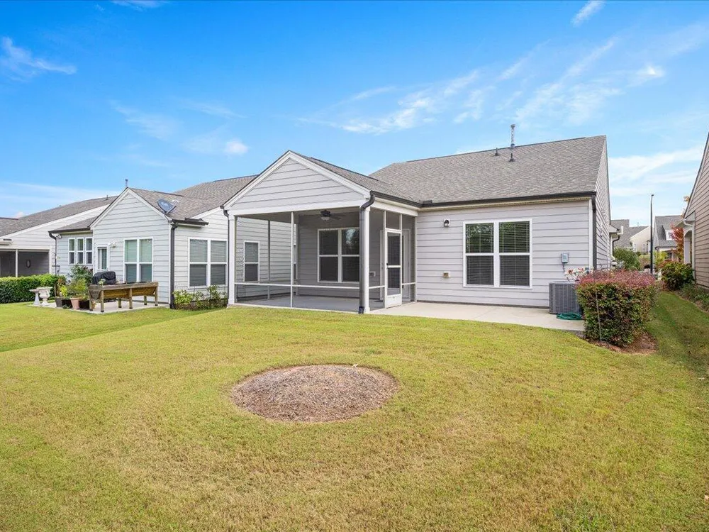 Welcome to low maintenance, high amenity living at Carolina Arbors! This smart floor plan delivers a 2-bedroom, 2-bath ranch-style home with screened porch in this award-winning 55+ community. 1108 Areca Way's eastward orientation delivers bright morning coffee from your tiled front porch or eat-in kitchen nook and stunning sunsets from your screened porch and large backyard in the afternoon! Inside, the main living area welcomes relaxed living and comfortable entertaining with a large kitchen with generously sized granite island complete with stainless steel appliances. You'll find hardwood flooring in the main living areas and plush carpet in each bedroom. This home is ready to welcome you with fresh paint throughout. It has been thoughtfully cared for and prepared, so you can move right in and enjoy resort-style amenities like swimming, tennis, bocce ball, fitness, walking trails, gardening, and a full calendar of activities at Piedmont Hall, a 37,000 sq. ft community hub. HOA covers lawn care, leaving you free to enjoy an active, low-maintenance lifestyle. Conveniently located minutes to shopping, dining, universities, RDU Airport, and premier healthcare. Begin your next chapter at 1108 Areca Way!