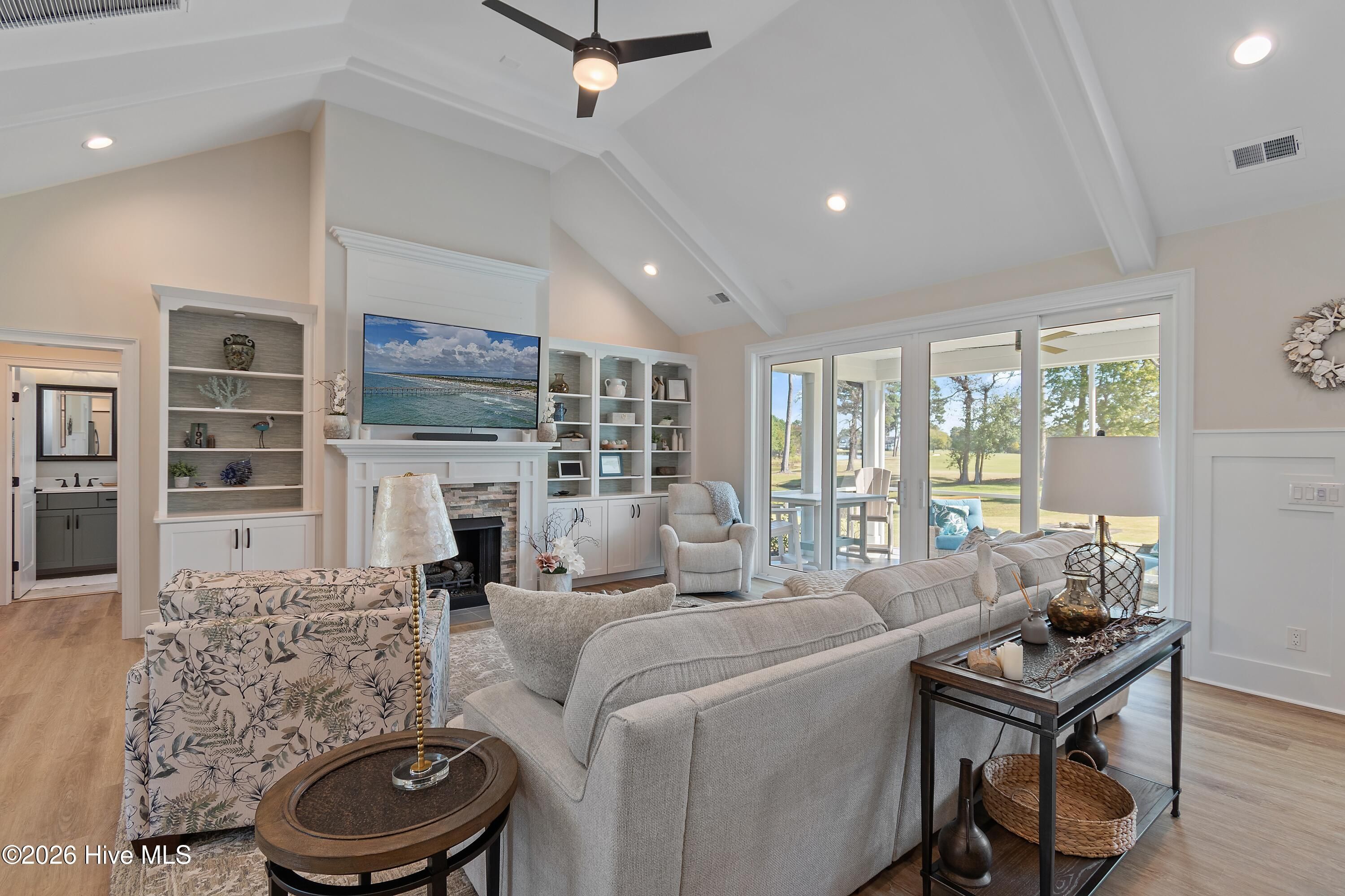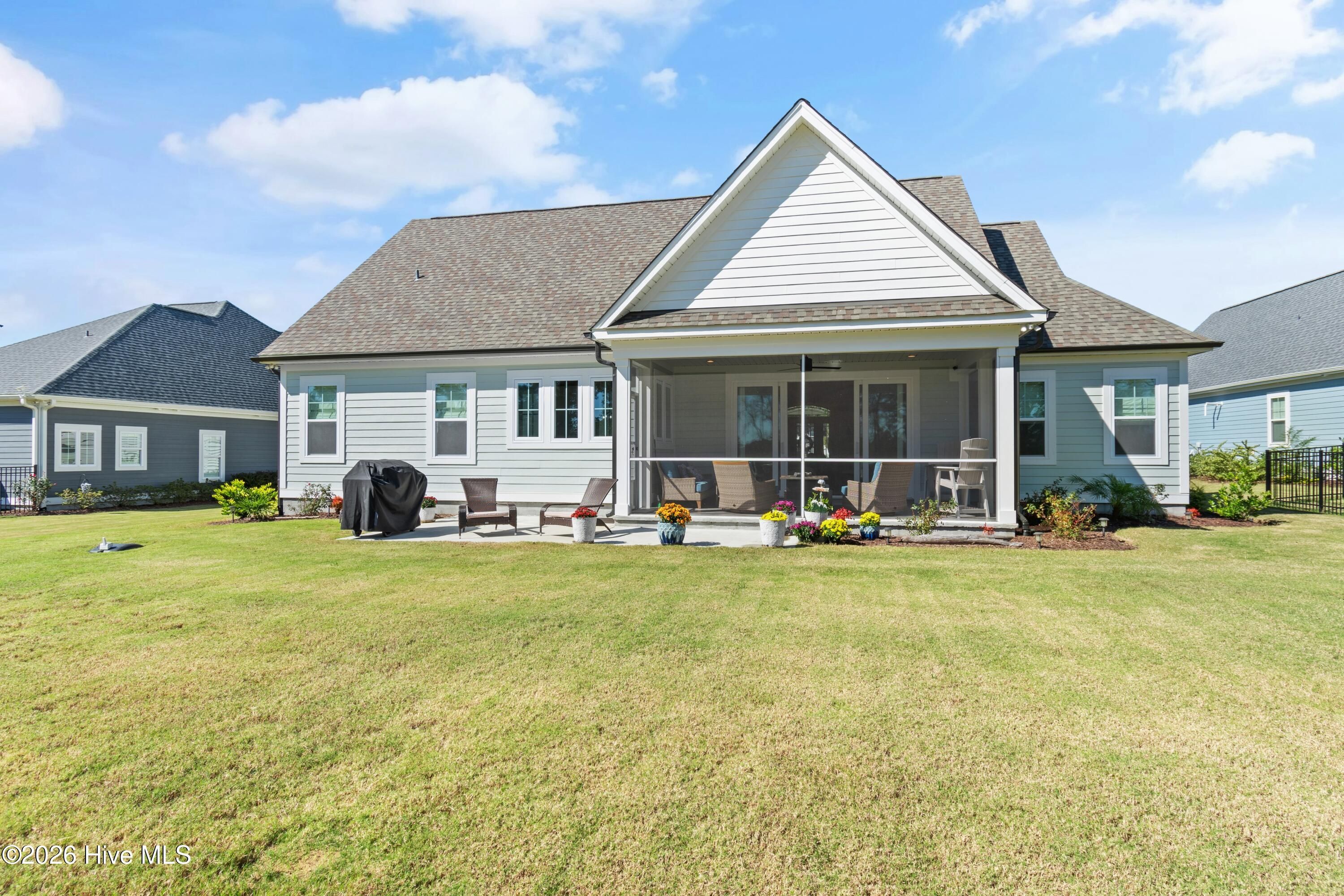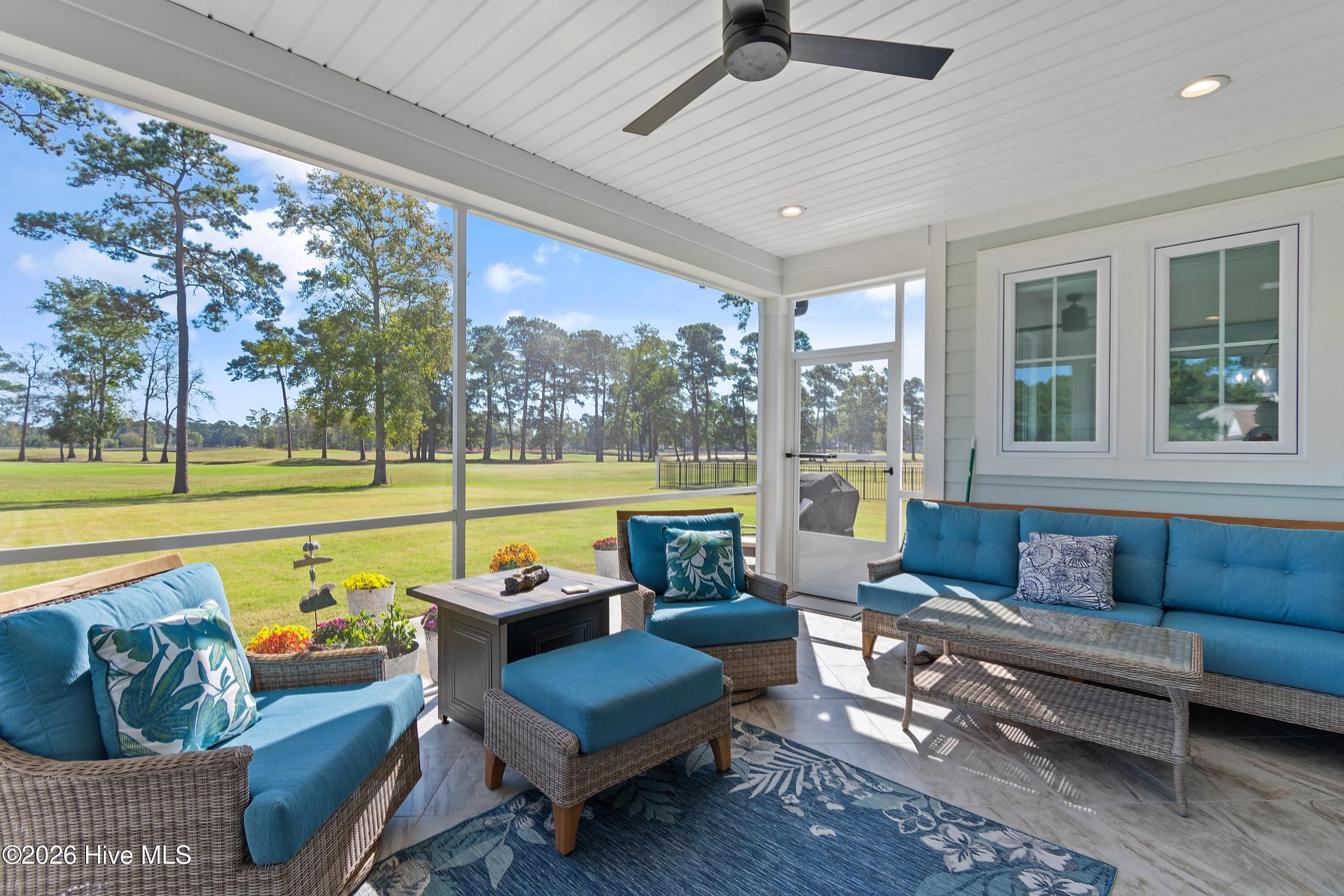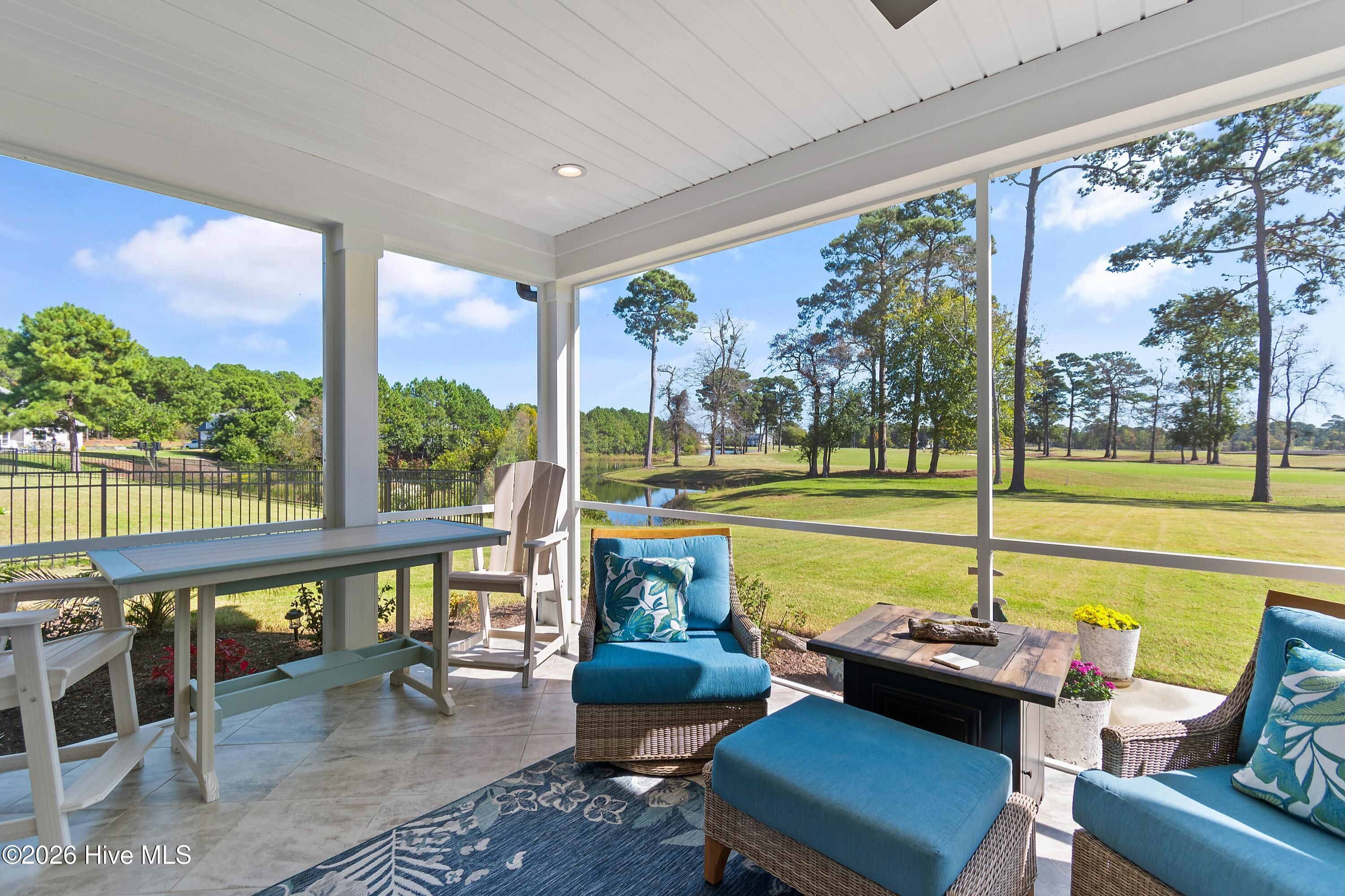 This open and airy home with golf and pond views is ready for a new set of owners! There is literally nothing that needs to be done to this pristine home. The welcoming entry boasts a front door with windows, sidelights and arched transom window, letting in a great amount of natural light. LVP flooring adorns the entire first floor of the home, with tile in the bathrooms and laundry room. The spacious living room boasts built-ins on both sides of the fireplace, faux wood beams on the ceilings and tall 4-panel sliders leading out to the massive, tiled screened porch. If you love to cook or entertain, the kitchen offers plenty of work and storage space with its extended island, plentiful cabinetry and large pantry. Additional features in the kitchen include a farmhouse apron sink, wall oven with convection microwave, gas cooktop, french door refrigerator and vented hood. The dining area adjacent to the kitchen is well sized and convenient. Guests and owners can maintain their privacy with this functional split floor plan. The primary suite is your retreat at the end of the day with a beautiful view, double-tray ceilings with LED rope lighting and a spa-like ensuite. Dual vanities, a generous tiled shower, freestanding tub and water closet with pocket door contribute to the luxurious feel of this space. The primary closet contains a custom closet system with drawers, hanging space and shelving as well. The laundry room is amazing, having been enlarged and rearranged to create a pleasant and functional space, containing a barn door entry, drop zone and storage cubbies. Whether it be a guest suite, exercise room or recreation space, the bonus room with full bathroom can be used however you like. The enlarged garage boasts epoxy flooring, a pedestrian door, storage nook, the tankless water heater and is pre-wired for an electric car charger. Imagine yourself enjoying time on the huge screened porch and extended patio, enjoying the golf and pond views. This home site is exceptionally deep, enabling it to be fenced if desired, which is very rare to find on a golf course lot. You cannot be bored here with the plethora of available activities available both within and beyond the community. Sea Trail is amenity-rich with two owners' amenity centers, two outdoor pools, a fitness room, exercise room, tennis/pickleball courts, a private parking lot at Sunset Beach and plenty of organized activities. If you are a golfer, Sea Trail contains three 18-hole golf courses, and there are several other options within a short drive. The pristine sands of Sunset Beach are a five minute drive, and the seafood and shopping areas of Calabash and Ocean Isle Beach are a stone's throw away. Schedule your showing today, because this home will not last!