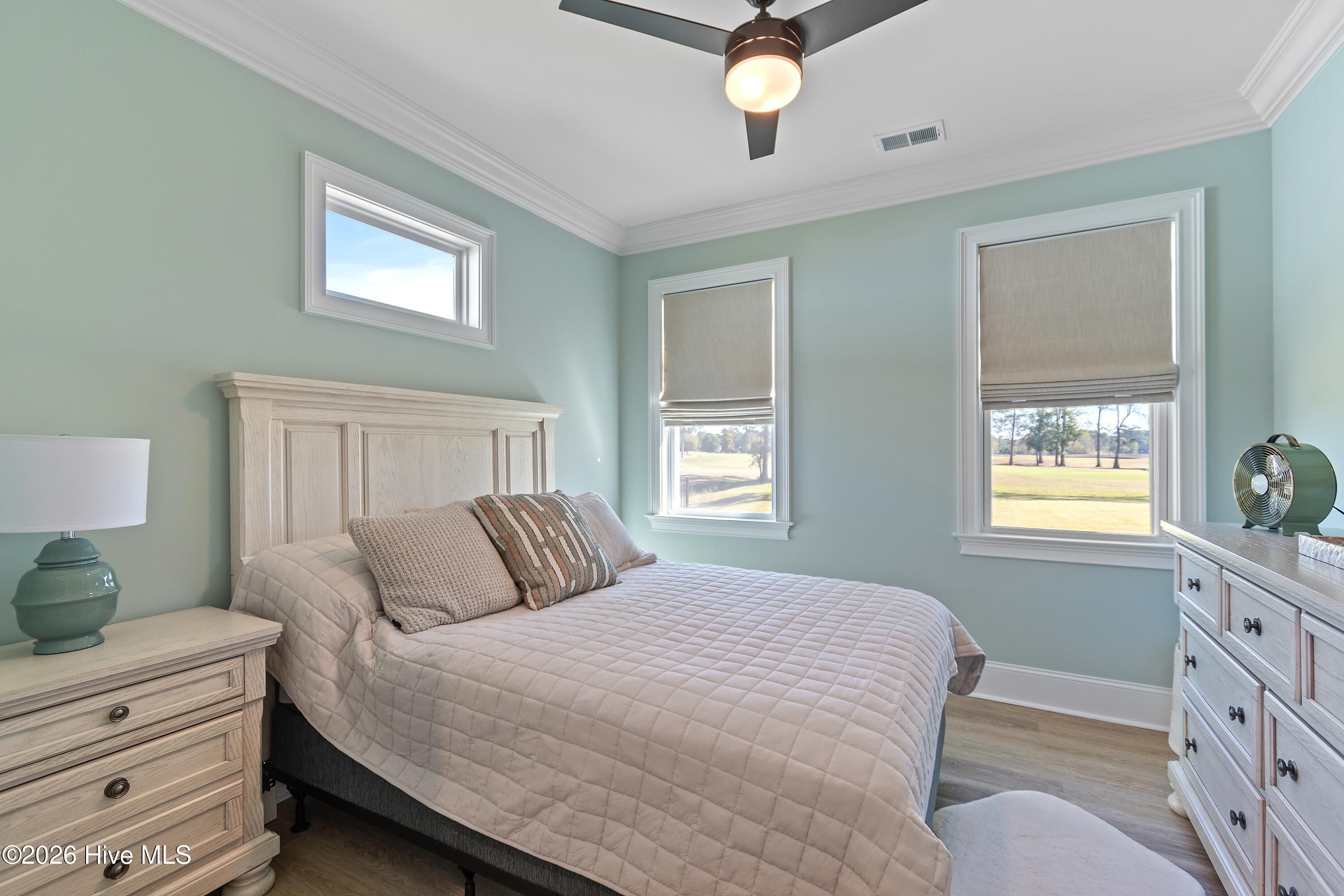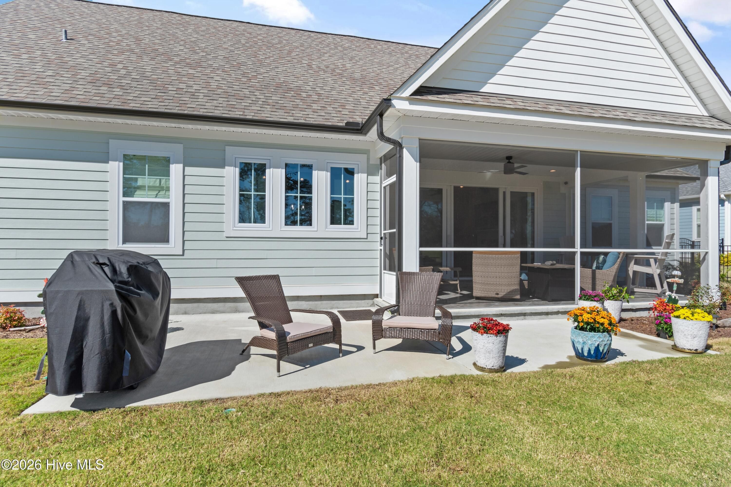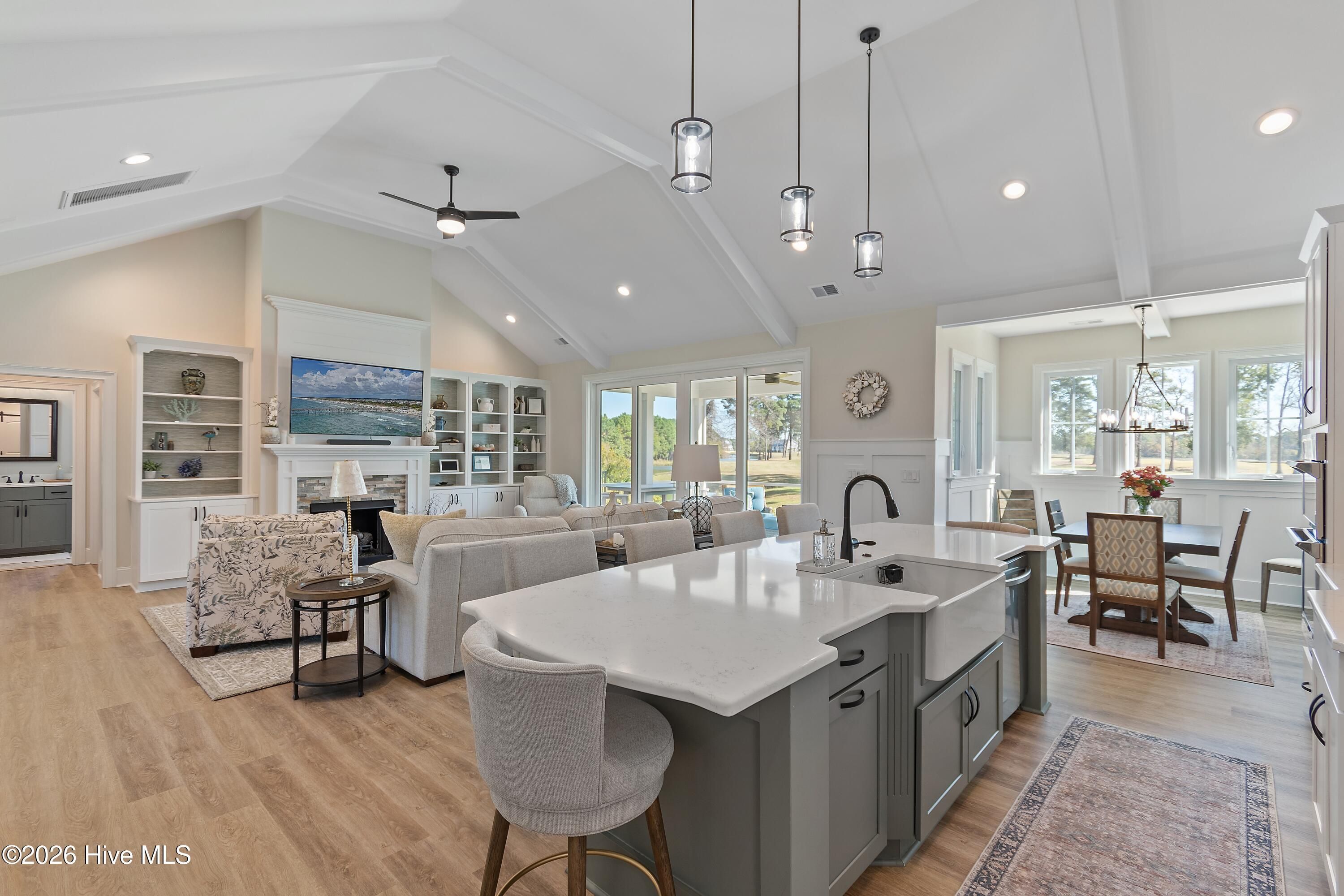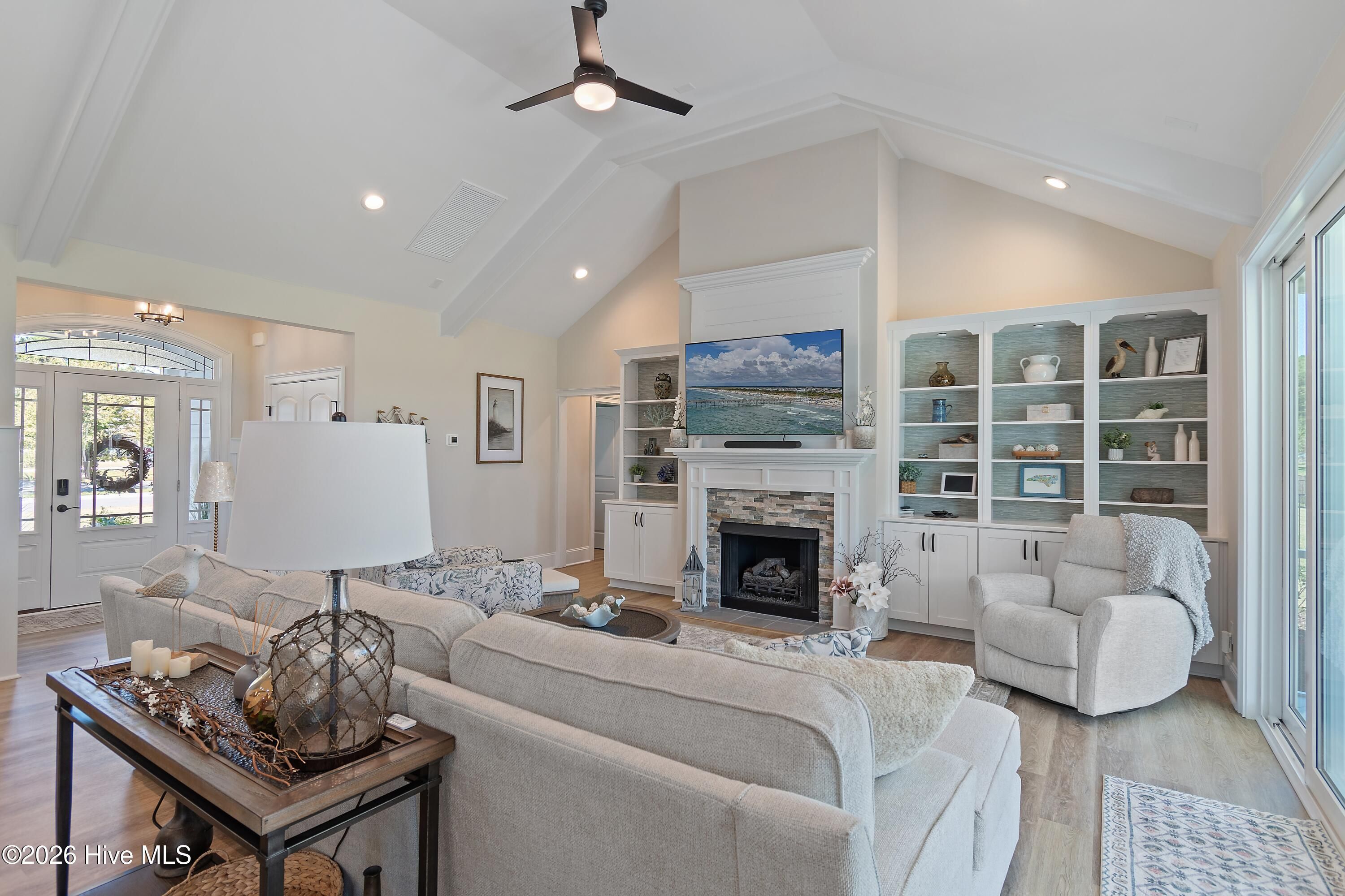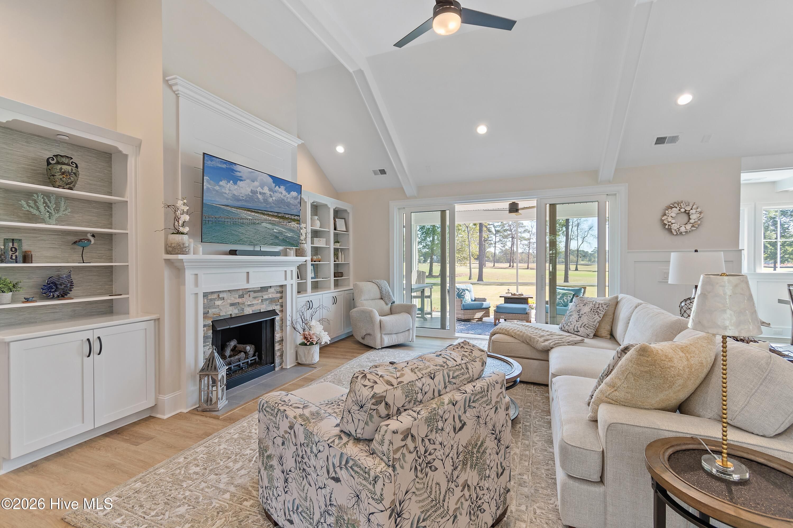 This open and airy home with golf and pond views is ready for a new set of owners! There is literally nothing that needs to be done to this pristine home. The welcoming entry boasts a front door with windows, sidelights and arched transom window, letting in a great amount of natural light. LVP flooring adorns the entire first floor of the home, with tile in the bathrooms and laundry room. The spacious living room boasts built-ins on both sides of the fireplace, faux wood beams on the ceilings and tall 4-panel sliders leading out to the massive, tiled screened porch. If you love to cook or entertain, the kitchen offers plenty of work and storage space with its extended island, plentiful cabinetry and large pantry. Additional features in the kitchen include a farmhouse apron sink, wall oven with convection microwave, gas cooktop, french door refrigerator and vented hood. The dining area adjacent to the kitchen is well sized and convenient. Guests and owners can maintain their privacy with this functional split floor plan. The primary suite is your retreat at the end of the day with a beautiful view, double-tray ceilings with LED rope lighting and a spa-like ensuite. Dual vanities, a generous tiled shower, freestanding tub and water closet with pocket door contribute to the luxurious feel of this space. The primary closet contains a custom closet system with drawers, hanging space and shelving as well. The laundry room is amazing, having been enlarged and rearranged to create a pleasant and functional space, containing a barn door entry, drop zone and storage cubbies. Whether it be a guest suite, exercise room or recreation space, the bonus room with full bathroom can be used however you like. The enlarged garage boasts epoxy flooring, a pedestrian door, storage nook, the tankless water heater and is pre-wired for an electric car charger. Imagine yourself enjoying time on the huge screened porch and extended patio, enjoying the golf and pond views. This home site is exceptionally deep, enabling it to be fenced if desired, which is very rare to find on a golf course lot. You cannot be bored here with the plethora of available activities available both within and beyond the community. Sea Trail is amenity-rich with two owners' amenity centers, two outdoor pools, a fitness room, exercise room, tennis/pickleball courts, a private parking lot at Sunset Beach and plenty of organized activities. If you are a golfer, Sea Trail contains three 18-hole golf courses, and there are several other options within a short drive. The pristine sands of Sunset Beach are a five minute drive, and the seafood and shopping areas of Calabash and Ocean Isle Beach are a stone's throw away. Schedule your showing today, because this home will not last!