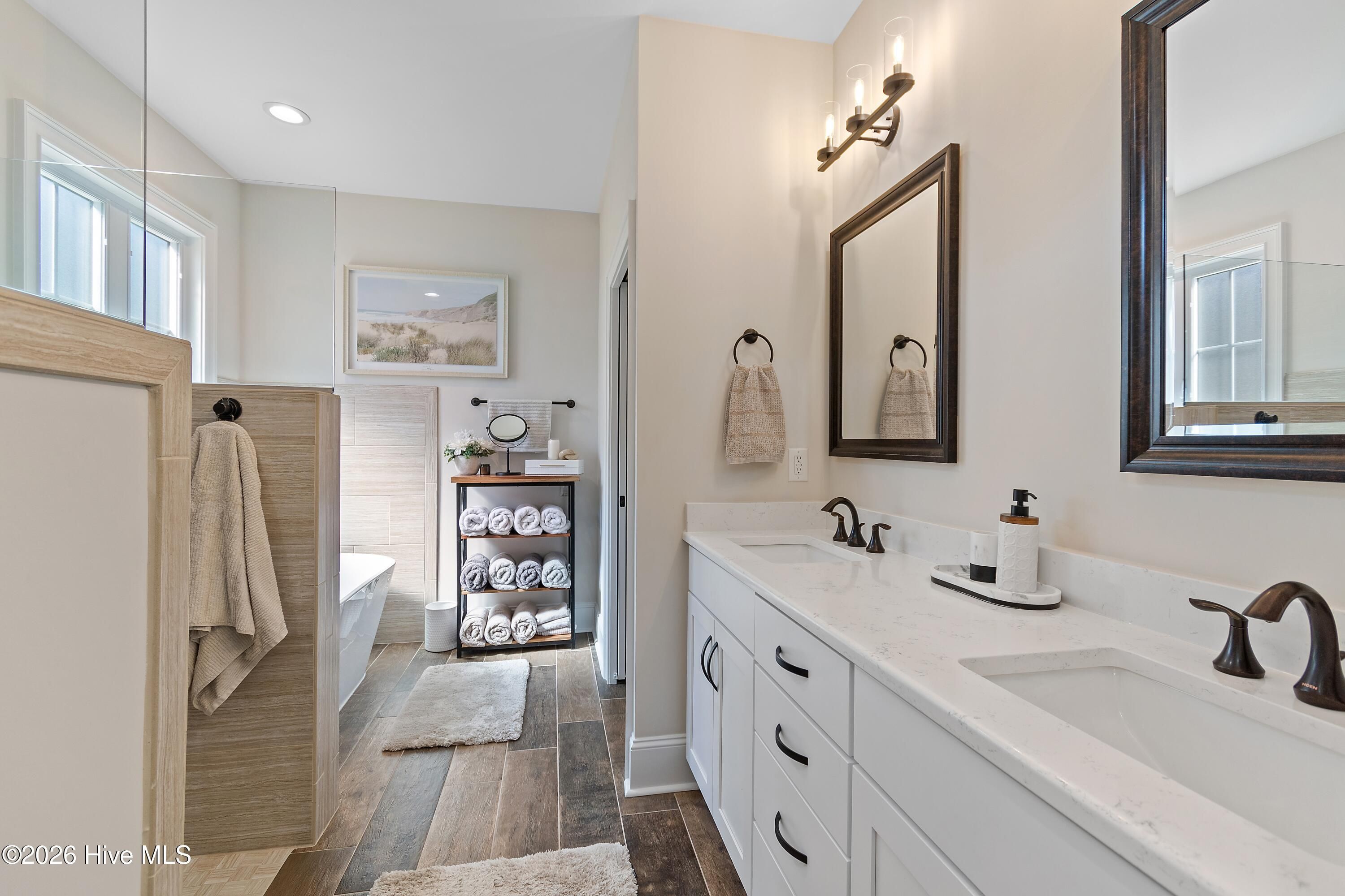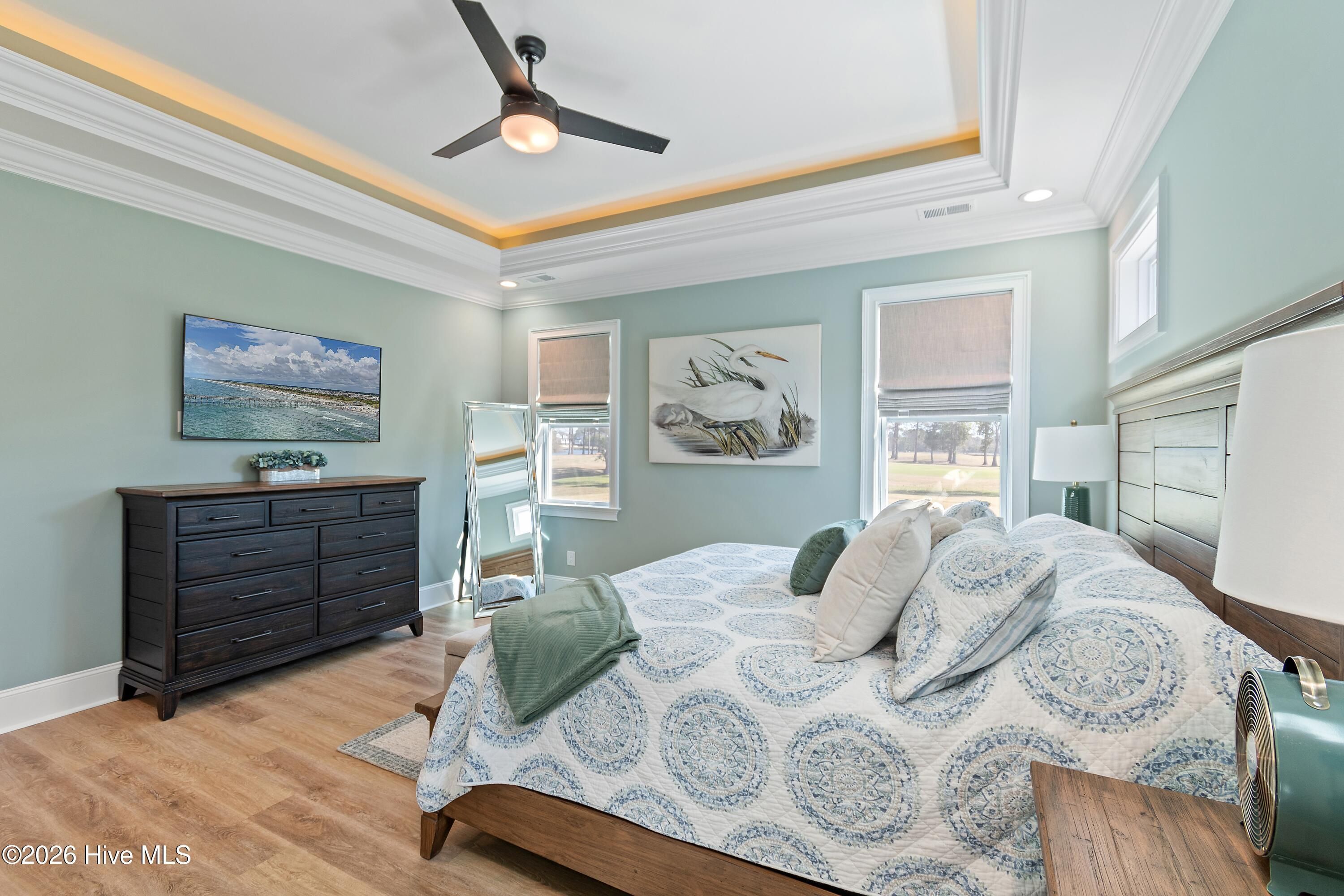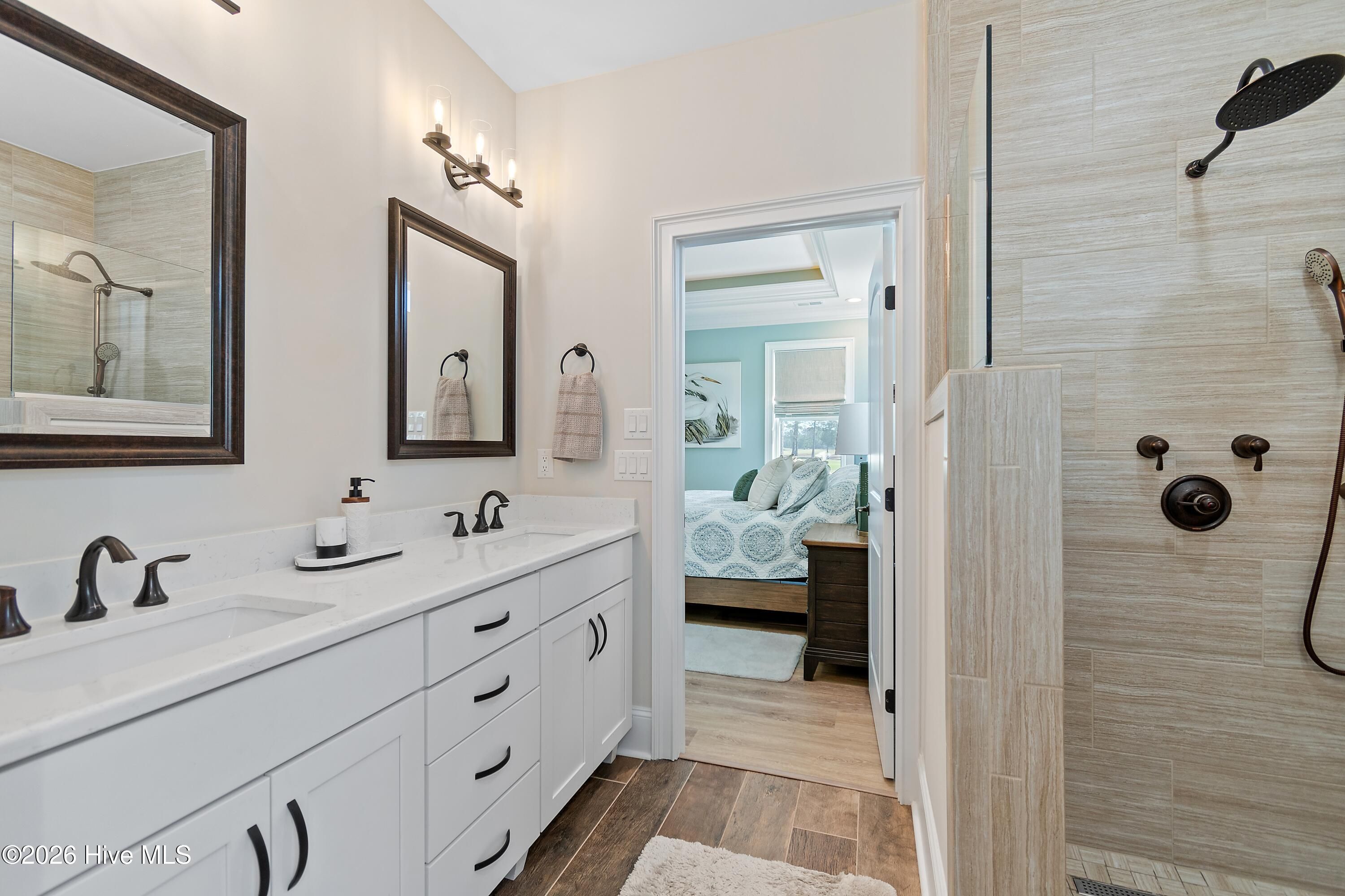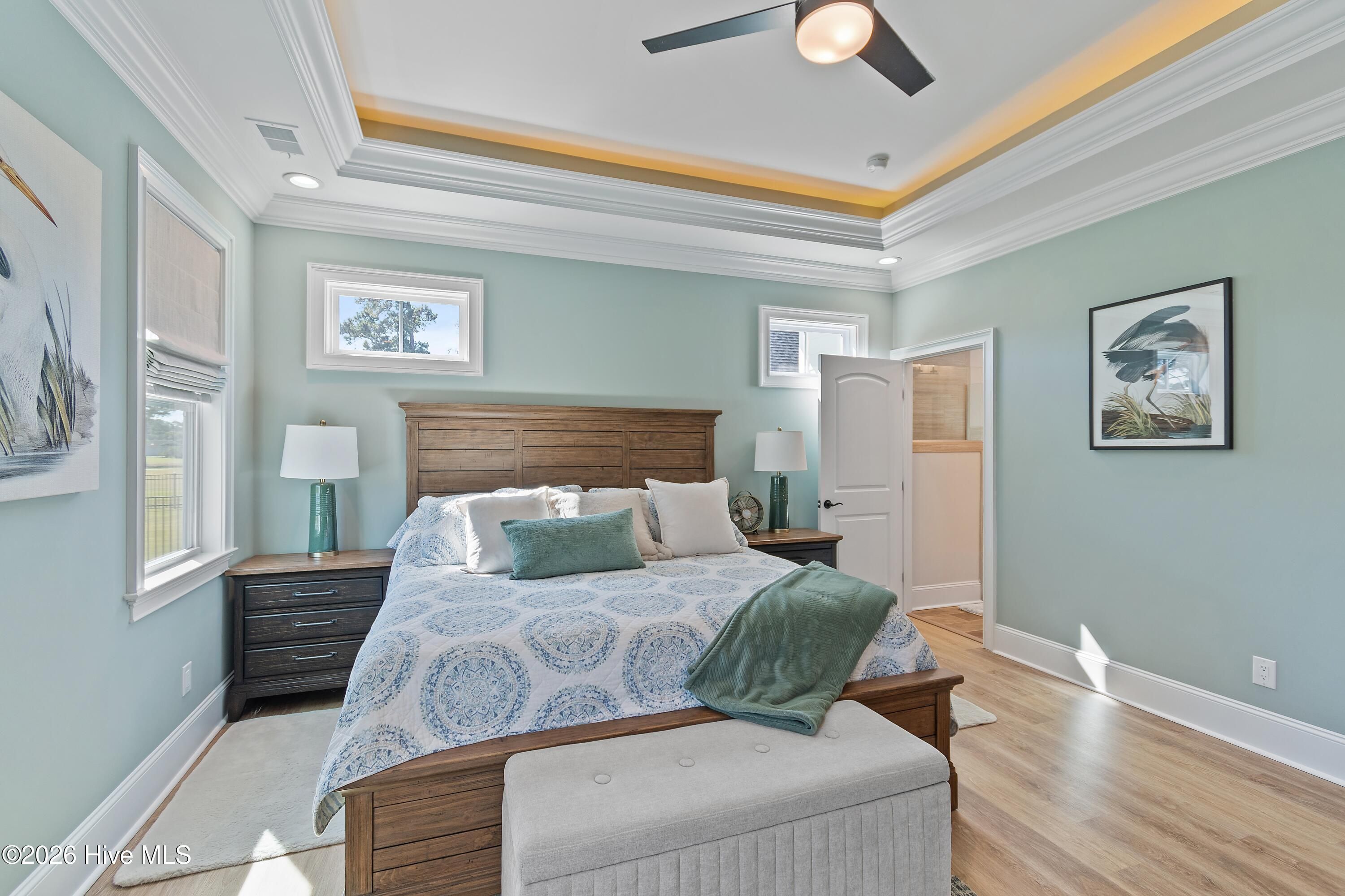 This open and airy home with golf and pond views is ready for a new set of owners! There is literally nothing that needs to be done to this pristine home. The welcoming entry boasts a front door with windows, sidelights and arched transom window, letting in a great amount of natural light. LVP flooring adorns the entire first floor of the home, with tile in the bathrooms and laundry room. The spacious living room boasts built-ins on both sides of the fireplace, faux wood beams on the ceilings and tall 4-panel sliders leading out to the massive, tiled screened porch. If you love to cook or entertain, the kitchen offers plenty of work and storage space with its extended island, plentiful cabinetry and large pantry. Additional features in the kitchen include a farmhouse apron sink, wall oven with convection microwave, gas cooktop, french door refrigerator and vented hood. The dining area adjacent to the kitchen is well sized and convenient. Guests and owners can maintain their privacy with this functional split floor plan. The primary suite is your retreat at the end of the day with a beautiful view, double-tray ceilings with LED rope lighting and a spa-like ensuite. Dual vanities, a generous tiled shower, freestanding tub and water closet with pocket door contribute to the luxurious feel of this space. The primary closet contains a custom closet system with drawers, hanging space and shelving as well. The laundry room is amazing, having been enlarged and rearranged to create a pleasant and functional space, containing a barn door entry, drop zone and storage cubbies. Whether it be a guest suite, exercise room or recreation space, the bonus room with full bathroom can be used however you like. The enlarged garage boasts epoxy flooring, a pedestrian door, storage nook, the tankless water heater and is pre-wired for an electric car charger. Imagine yourself enjoying time on the huge screened porch and extended patio, enjoying the golf and pond views. This home site is exceptionally deep, enabling it to be fenced if desired, which is very rare to find on a golf course lot. You cannot be bored here with the plethora of available activities available both within and beyond the community. Sea Trail is amenity-rich with two owners' amenity centers, two outdoor pools, a fitness room, exercise room, tennis/pickleball courts, a private parking lot at Sunset Beach and plenty of organized activities. If you are a golfer, Sea Trail contains three 18-hole golf courses, and there are several other options within a short drive. The pristine sands of Sunset Beach are a five minute drive, and the seafood and shopping areas of Calabash and Ocean Isle Beach are a stone's throw away. Schedule your showing today, because this home will not last!