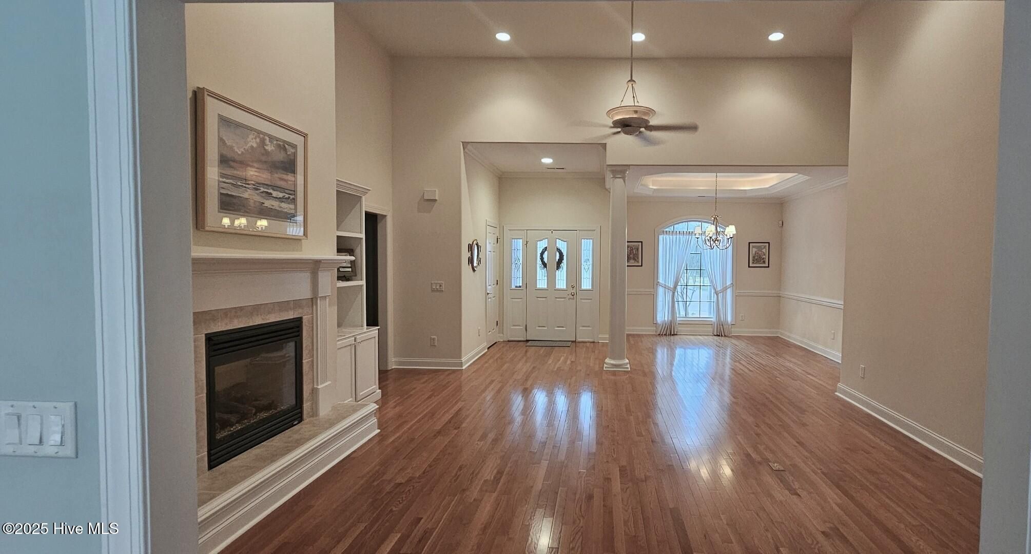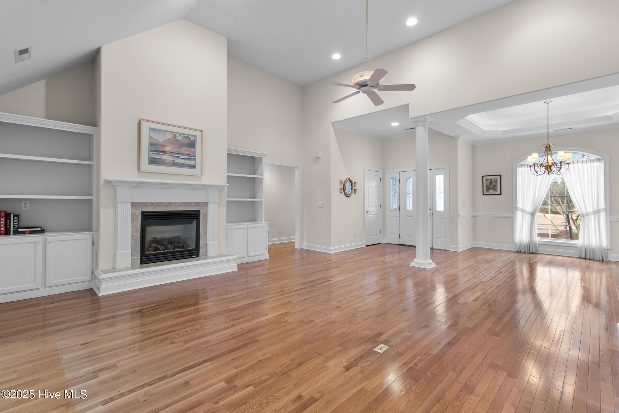 - Blinds/Shades, Gas Log, Whirlpool, Walk-In Closet(s), Walk-in Shower, Vaulted Ceiling(s), Tray Ceiling(s), Solid Surface, Pantry, Master Downstairs, High Ceilings, Ceiling Fan(s), Bookcases