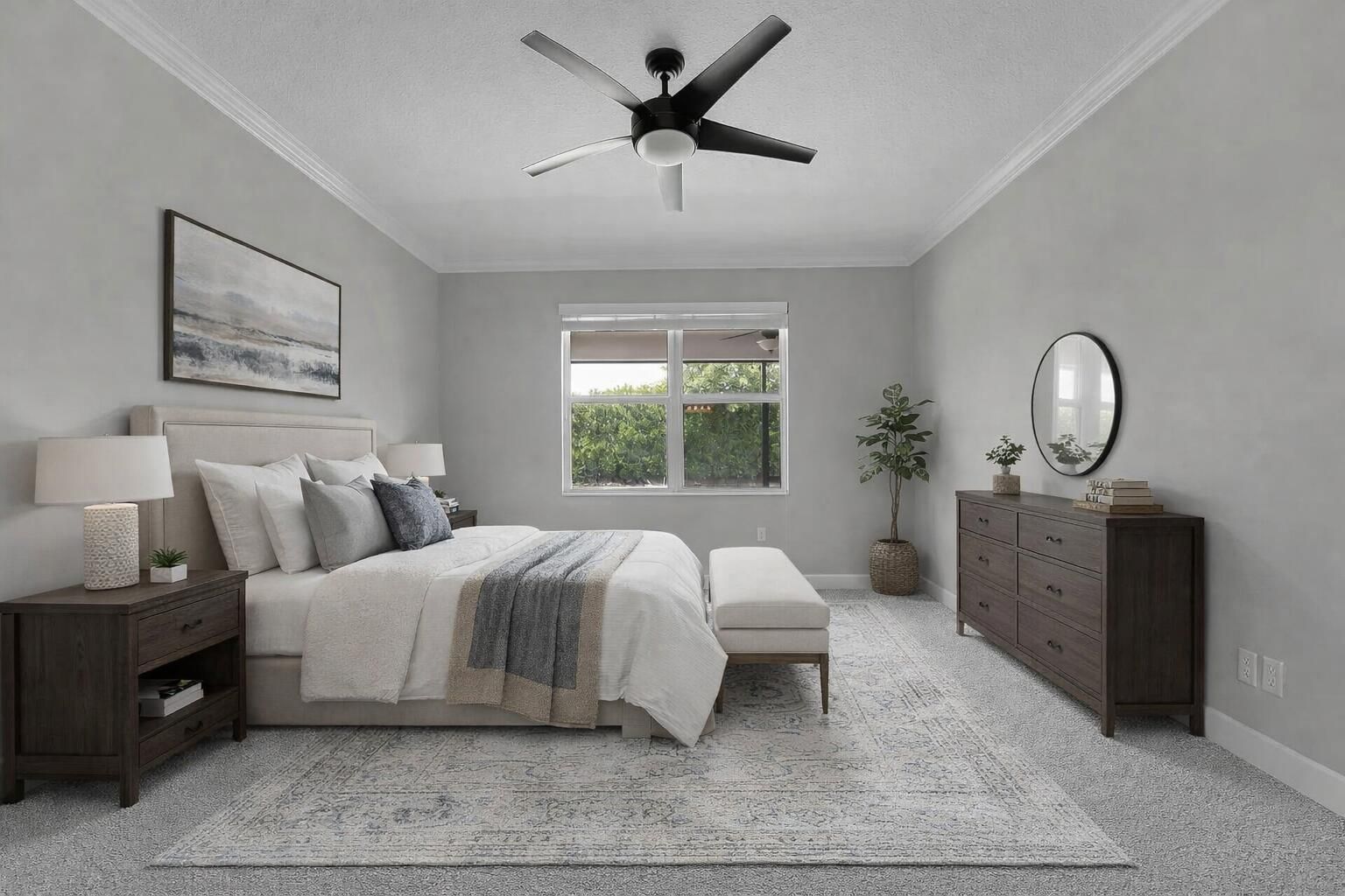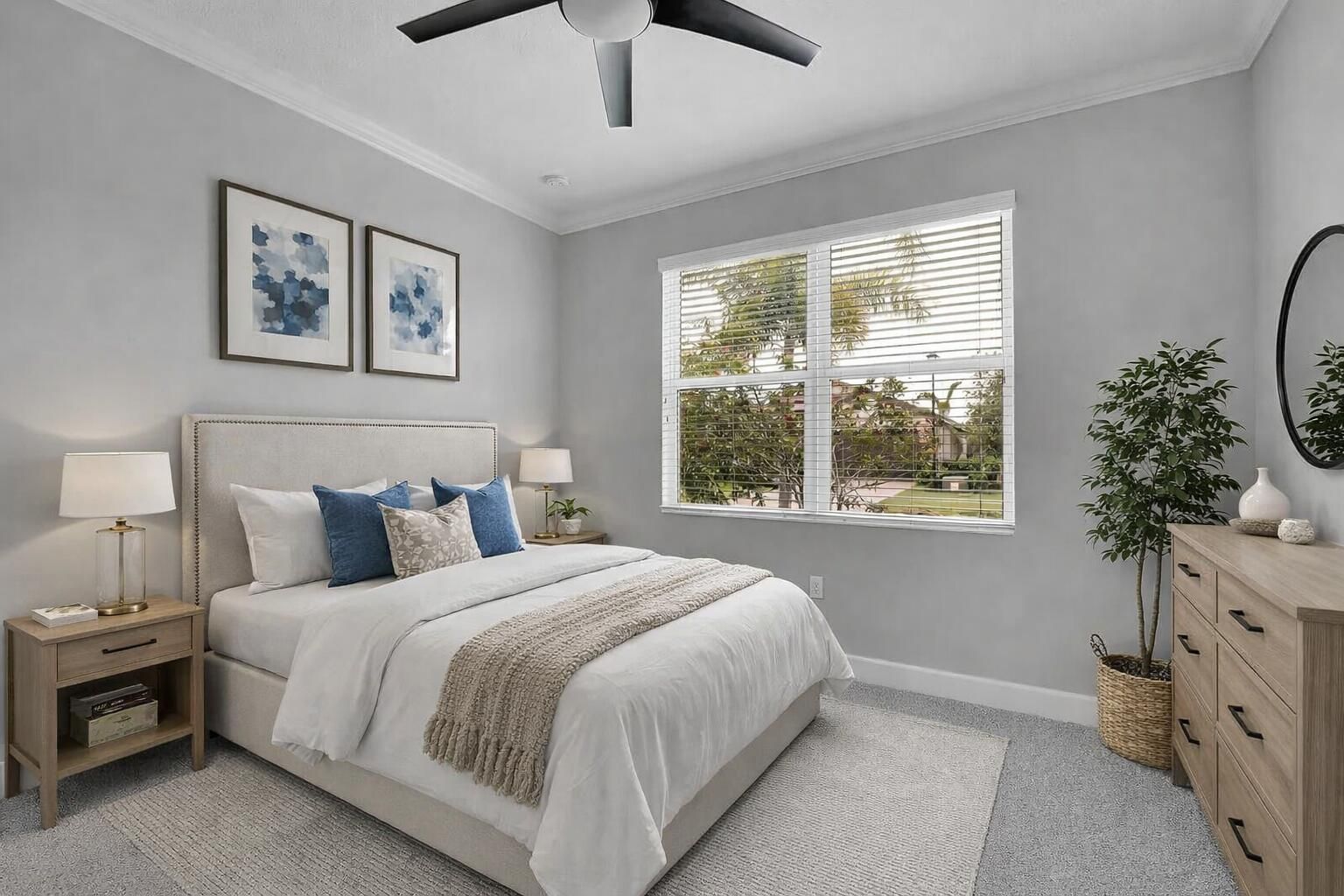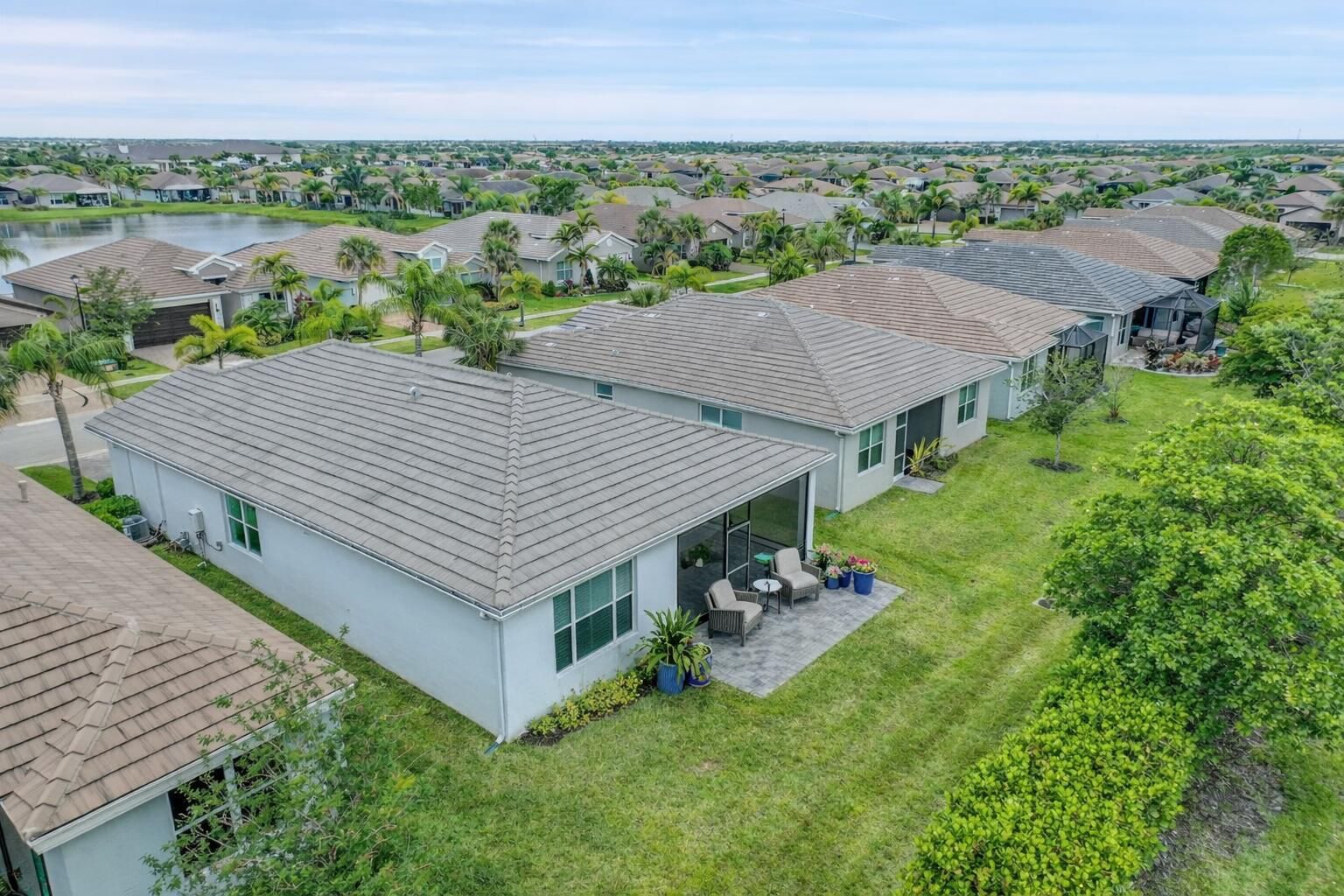 Move-In Ready Heron Model in Valencia Cay! Live the resort lifestyle in this beautifully maintained 2-bedroom + den, 2-bath Heron model located in the sought-after 55+ community of Valencia Cay. Designed for comfort and style, this home blends luxury finishes with low maintenance living, featuring new bedroom carpet, tile flooring in main areas, and crown molding throughout. The gourmet kitchen shines with upgraded stainless steel appliances and a natural gas stove, opening to a bright living area with plantation shutters, tray ceiling, and elegant details that make every day feel special. The primary suite includes pocket doors for privacy and a serene layout for ultimate relaxation. Unlike many homes in Valencia Cay, this one does not back up to a lake, offering rare privacy and peace ful surroundings. Enjoy quiet mornings or breezy evenings on the extended screened patio and lanai, no noise echoing from the lake, just tranquility. The phantom screen front door invites in the fresh air for perfect cross ventilation. Additional perks include: Impact windows, Tankless water heater, Sealed garage floor, Ceiling fans and window treatments included.Perfectly located near I-95, shopping, dining, medical centers, and Tradition, with the Valencia Cay clubhouse just minutes awayoffering resort-style pools, pickleball, fitness center, and endless activities. Turnkey and move-in ready everything's done for you. Act now, and you can still close before the end of the year to secure your Florida Homestead Exemption! Come see it today and experience the quiet comfort, privacy, and effortless living that make this Heron model a standout!