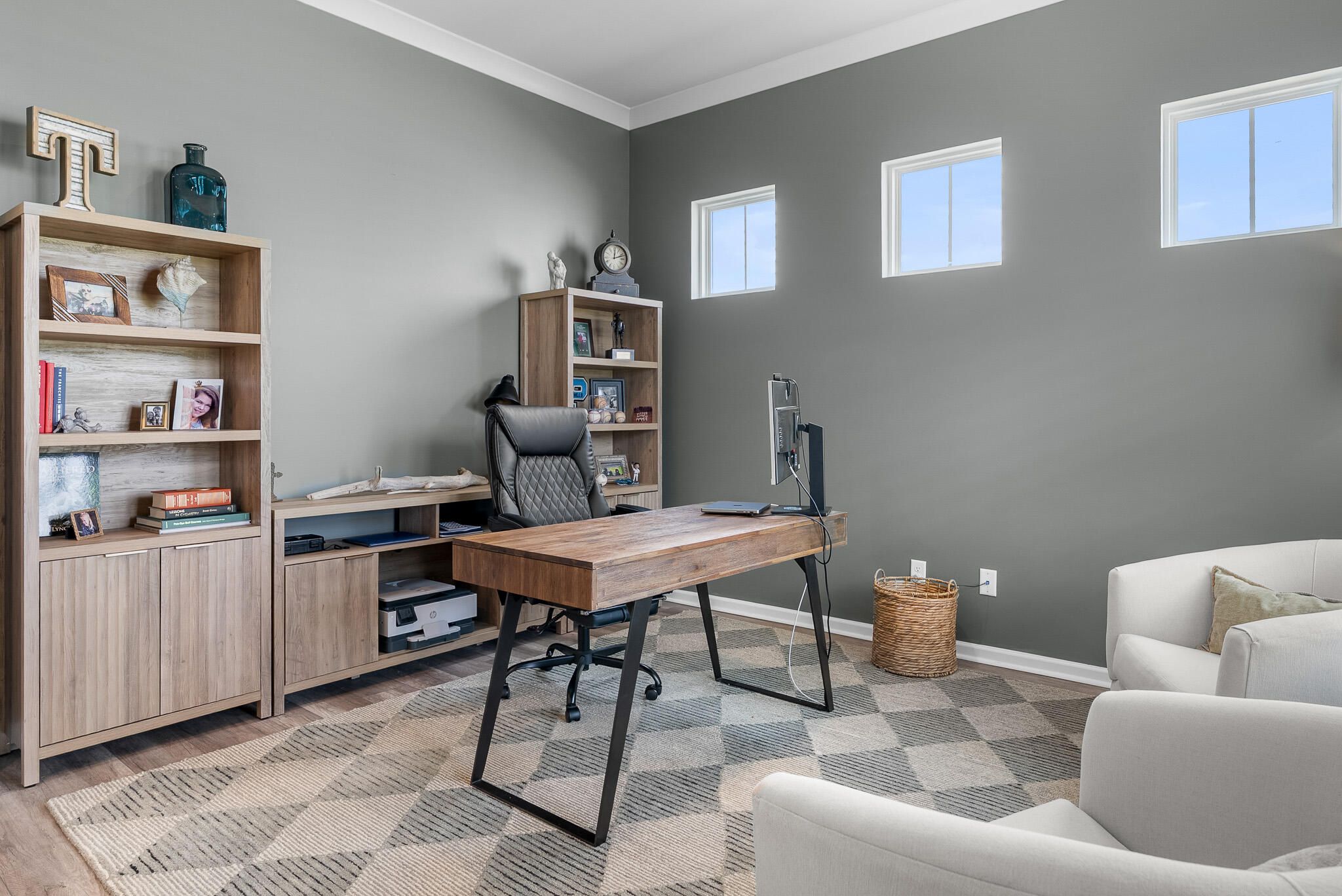 - Smooth Ceilings, High Ceilings, Kitchen Island, Walk-In Closet(s), Family Room, Living/Dining Room, Home Office