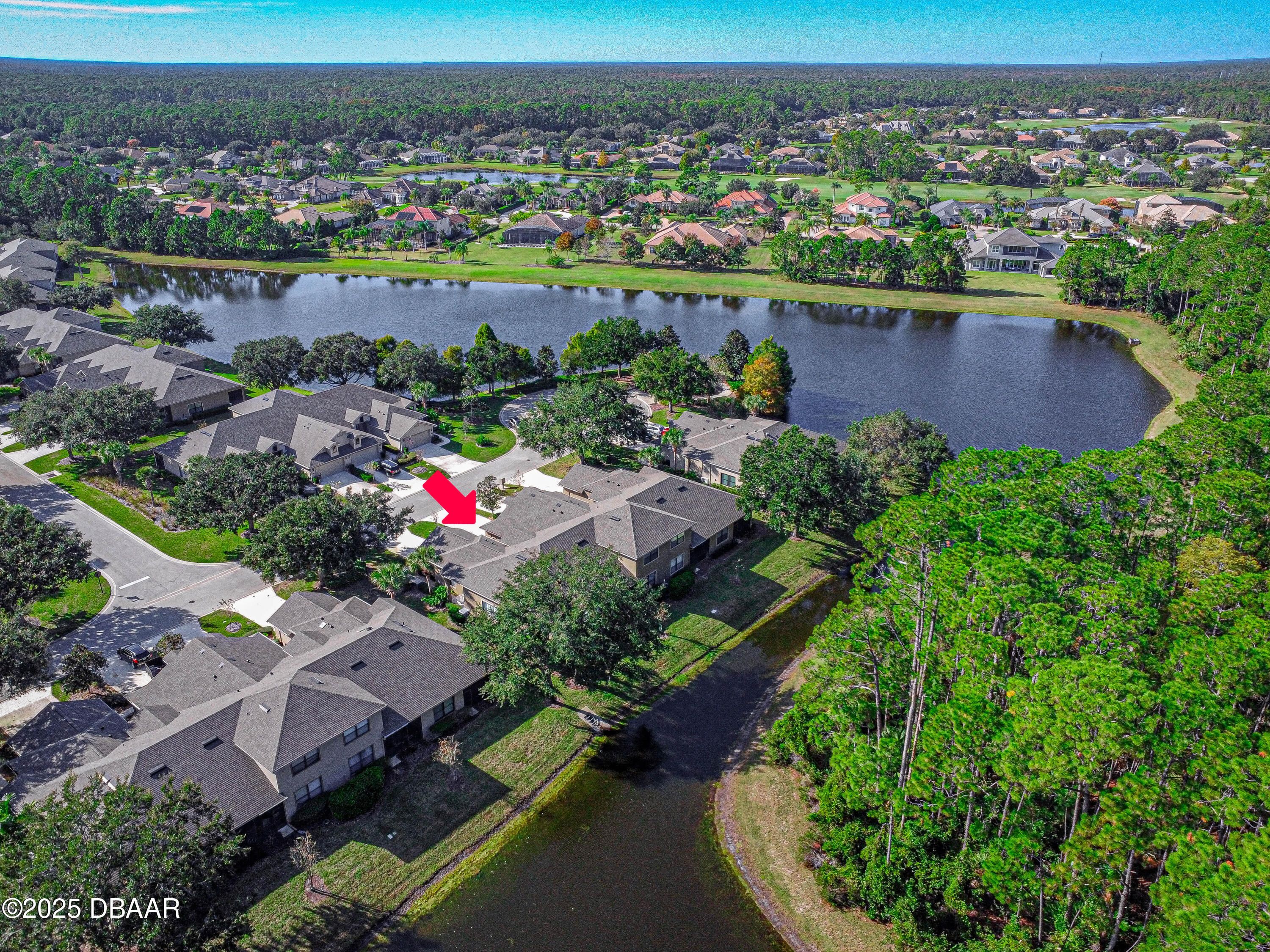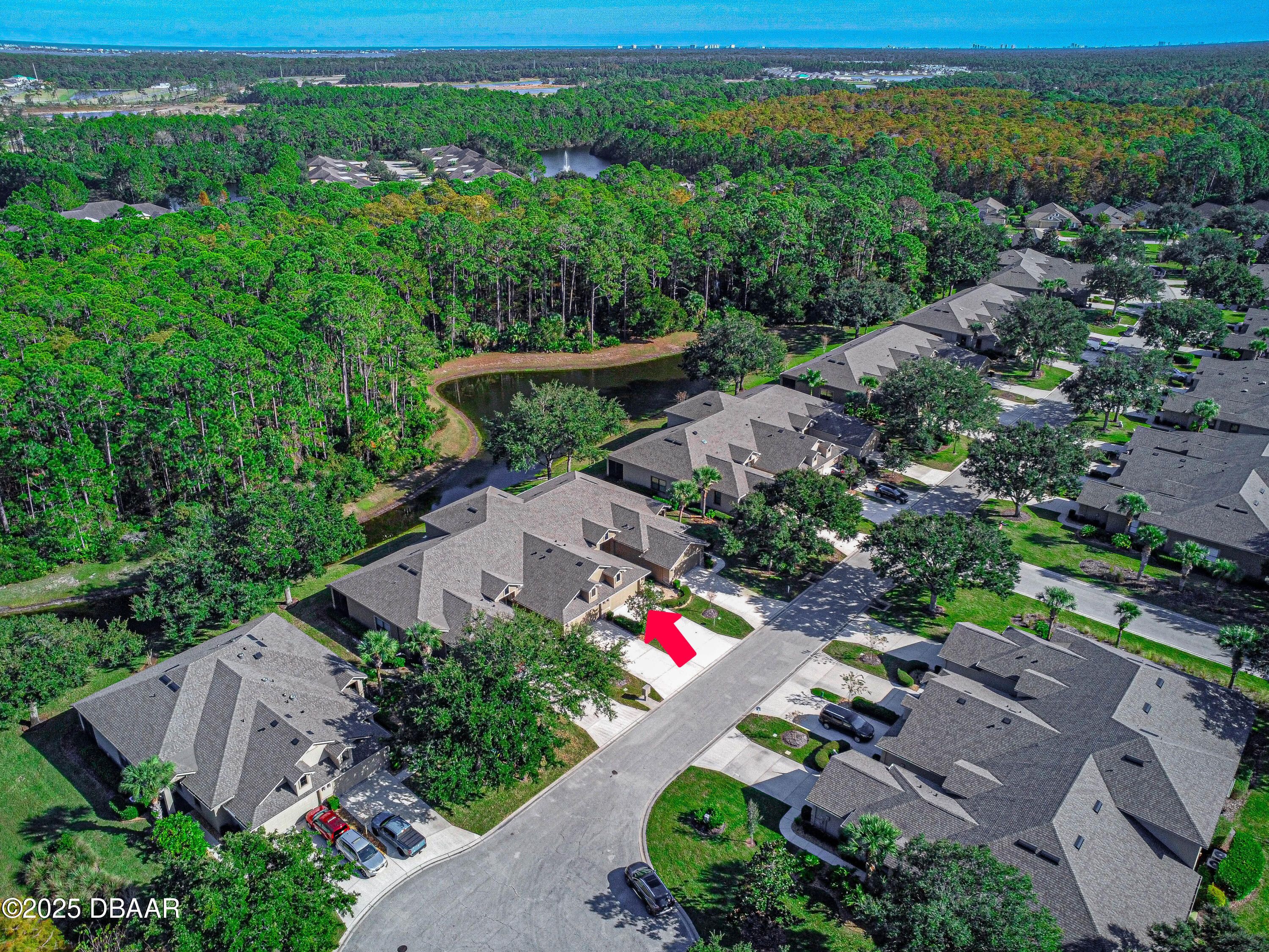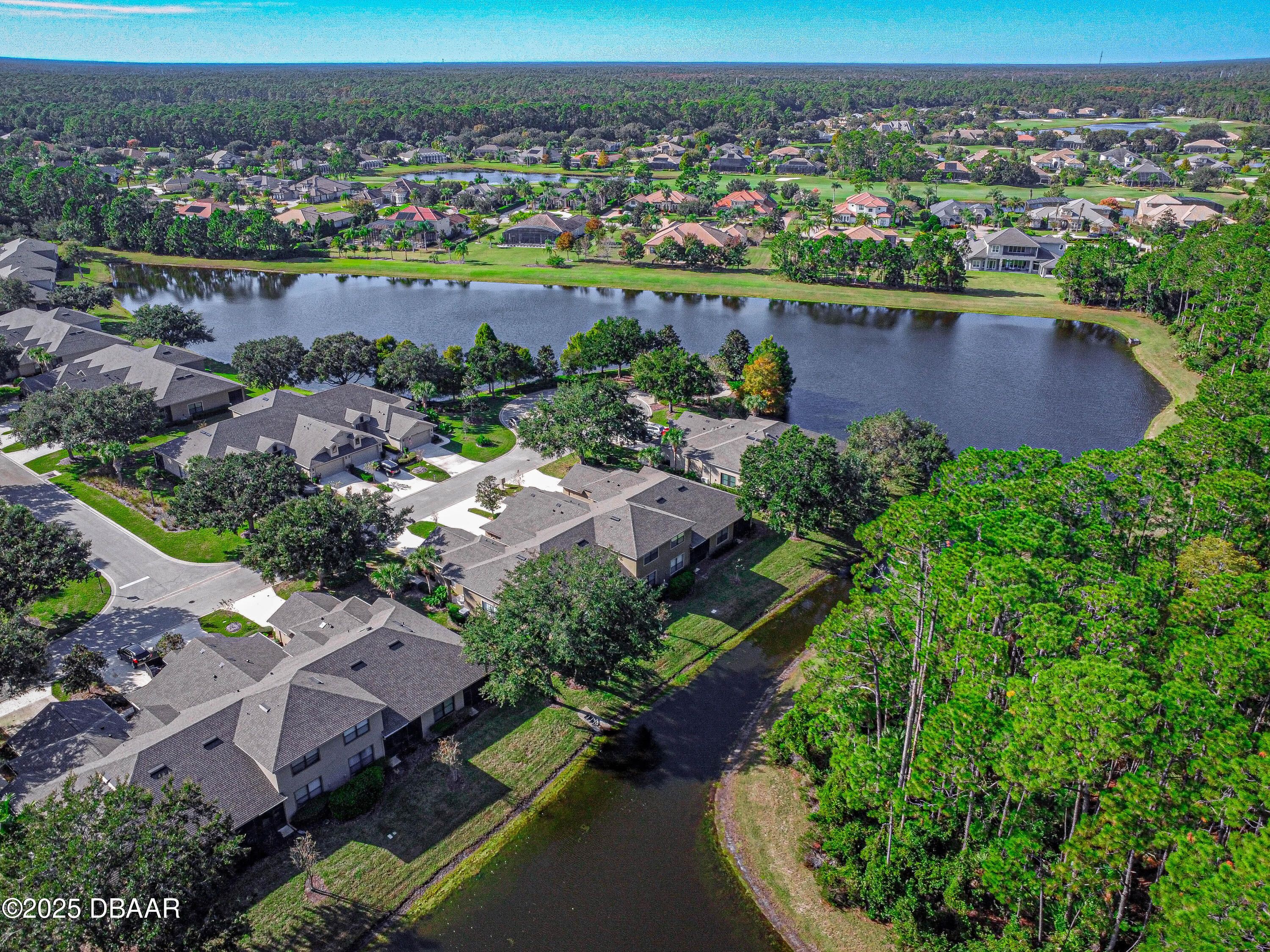 Welcome home to this 2 bedroom, 3 full bath townhome in Plantation Bay. You will feel right at home when you enter into the foyer overlooking the dining area, living room, patio, to the pond outside. This home also features a den/office that could substitute for a third sleeping area. Inside laundry room and large 2 car garage. The second bedroom is on the second floor with full bathroom. Enjoy the screened in patio overlooking the pond and peaceful nature. Schedule your viewing today. Plantation Bay is a golf cart-friendly community offering resort-style amenities, including two pools, a fitness center, spa, tennis, bocce, walking trails, and a lakeside gazebo. Enjoy 45 holes of championship golf, two on-site restaurants, a tiki bar, and a variety of social and golf memberships available.