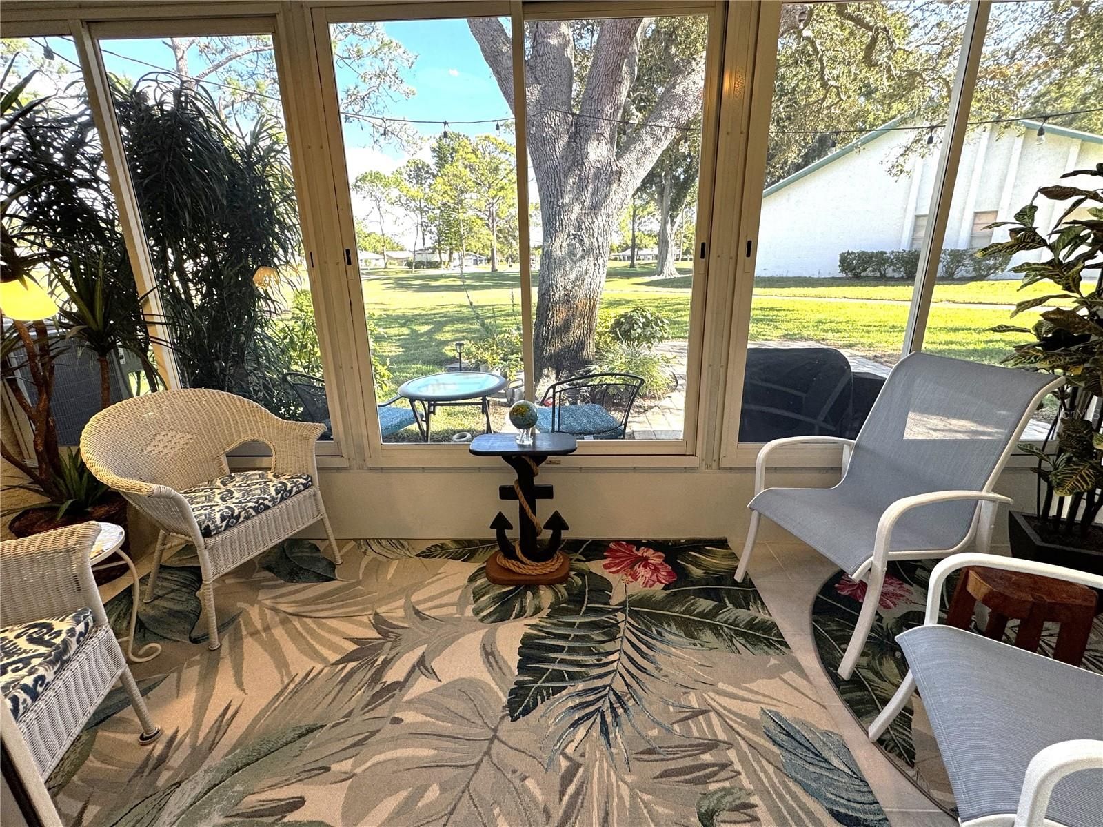 Sellers are motivated, bring your offers! This lovely 2 bedroom, 2 bathroom Highland Lakes Villa, located in a 55+ community, has been completely updated! You will love the Mediterranean architecture and beautiful golf course view. Beginning in 2015, custom mahogany cabinets, quartz countertops, under counter lighting, refrigerator, stove, disposal and dishwasher were updates in the kitchen. The master ensuite has custom closets, vanity, and walk-in tile shower. Your guests will feel right at home in the guest bedroom with bath facilities right outside their door. The laundry closet is adjacent to the master bedroom and includes a new LG washing machine installed in 2025. Impact resistant windows were installed throughout and include the sliding glass doors to the Florida room. Luxury vinyl plank and tile floors, new wood doors, and crown molding were added. Electronic door lock and Ring security system were installed in 2023. Outside, the garage floor, driveway, walkway and entry were all surface coated in 2024. The garage ceiling was skim coated, electrical outlets added, and an access ladder to the attic and shelving were installed in 2024. A new air conditioner and hot water tank were installed in 2024. There is also a water softener. Beautiful entryway landscaping was added in 2025 as well as new impact resistant front door. The furniture is negotiable. The Golf View Villa I HOA is 265.00 monthly. This includes lawn care, irrigation, exterior painting, trash removal, cable TV and internet. The master HOA is $164.00 monthly, which includes green fees for the three golf courses, boat rides on the community pontoon boats, pool access, tennis and pickleball courts and many other clubhouse activities. There is a secure storage lot for your RV or boat, along with access to the boat ramp. Don't wait, come see this beautiful villa today!