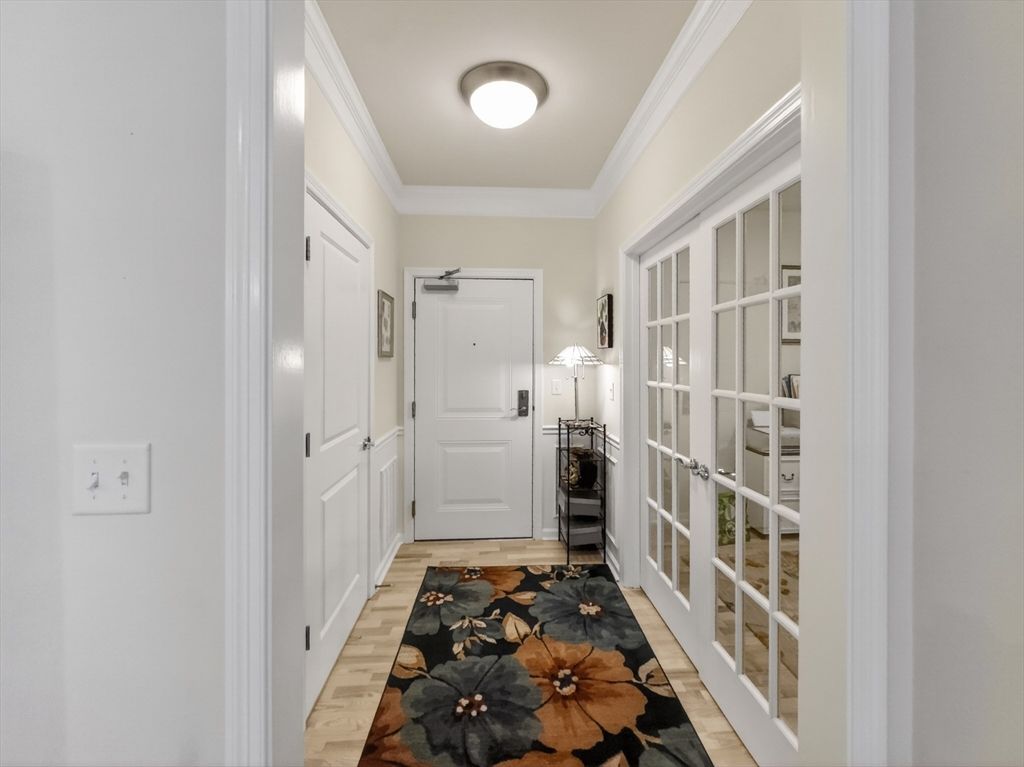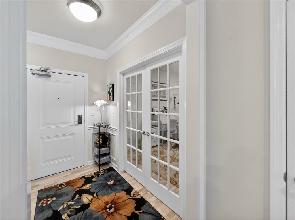 Better than new and beautifully upgraded, this first-floor unit in this 55+ community offers luxury and convenience. The upgraded kitchen features quality cabinetry, stone countertops, and brand-new LG stove and refrigerator. The spacious living room opens to a private balcony overlooking a serene man-made pond. The generous bedroom suite includes a walk-in closet and beautifully appointed bath. A large laundry room and versatile flex space with French doors provide ideal options for a home office, den, or guest room. Nine-foot ceilings, crown molding, and original upgrade package enhance the elegant feel. Enjoy a peaceful yet convenient location with on-site amenities including a heated pool, clubhouse, tennis and pickleball courts. Shopping, dining, and services are just minutes away. See the Feature Sheet for more, and don’t miss this exceptional opportunity.
